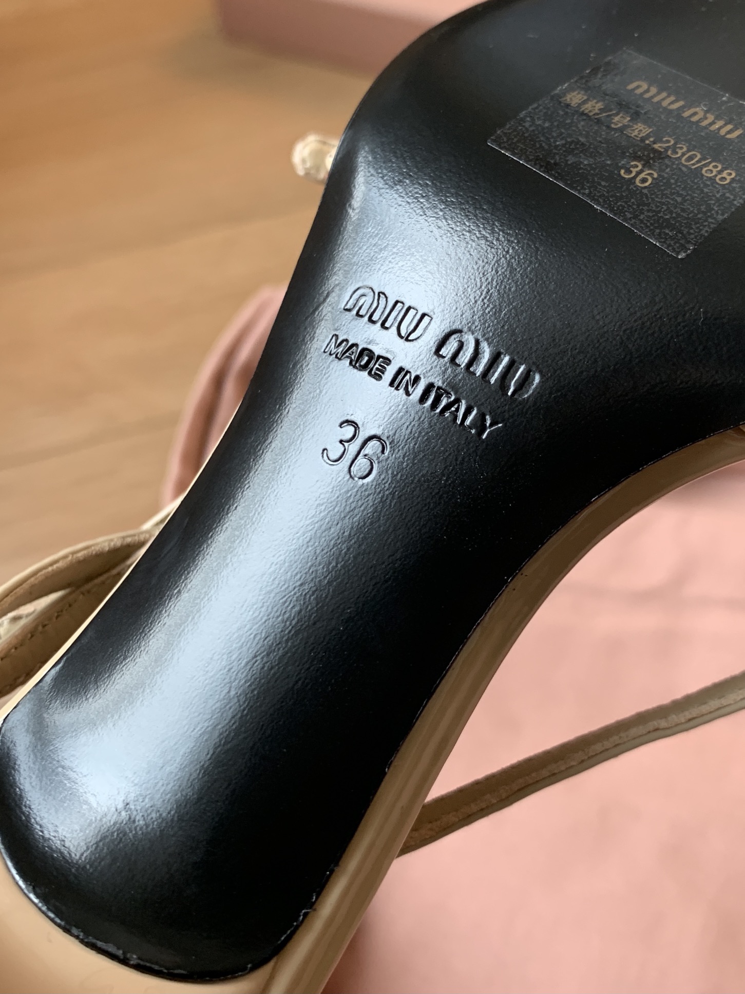 这款鞋子是AAAAA 1:1 质量 (非常棒). 使用了和原版一模一样的材料. 商标部分也保持了和缪缪/Miu Miu一样. 图片拍摄是实物鞋子拍摄, 您所收到的实物保证和我们图片一模一样.