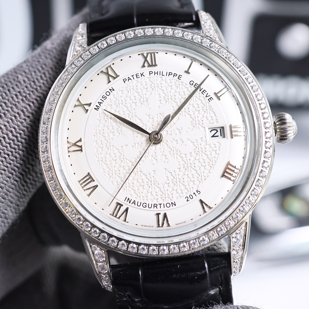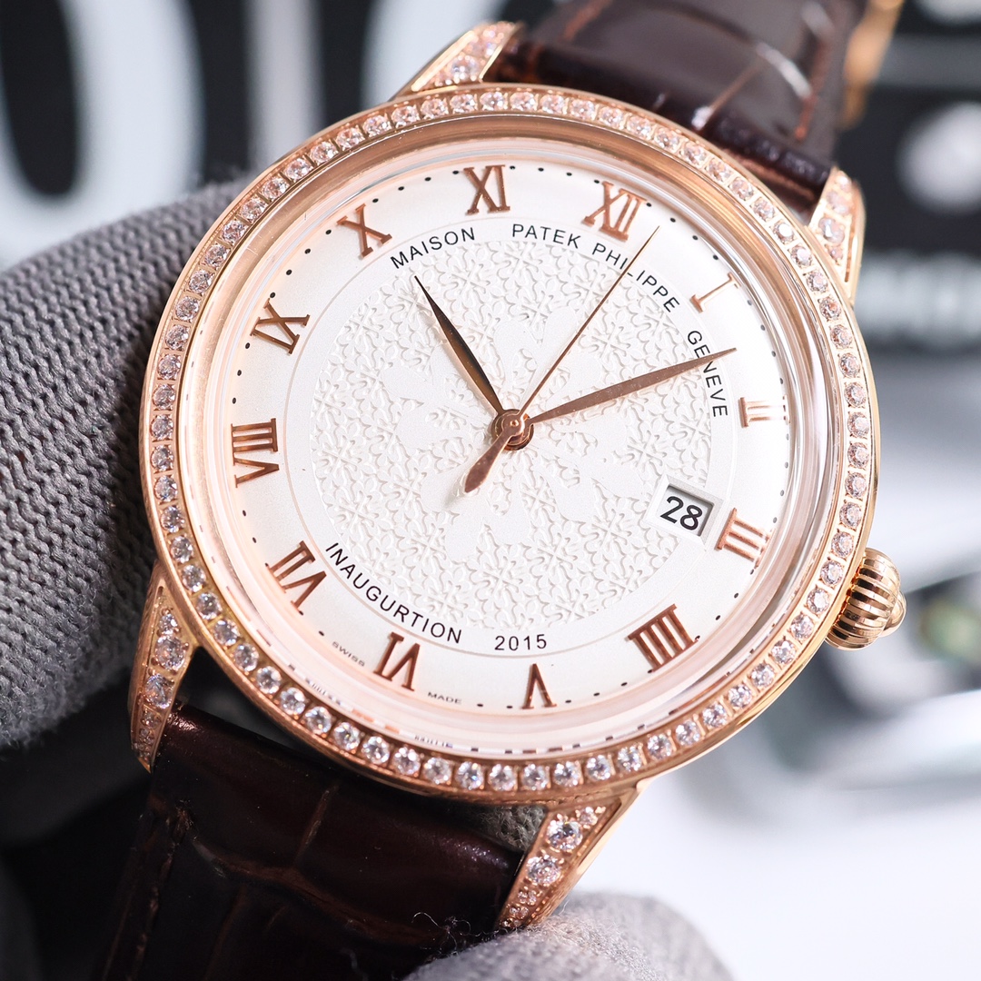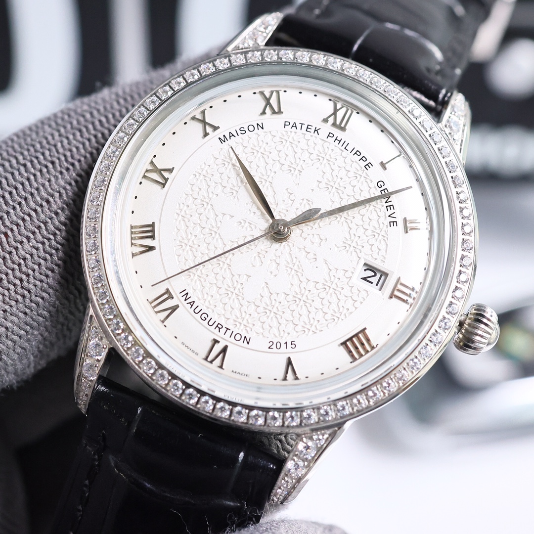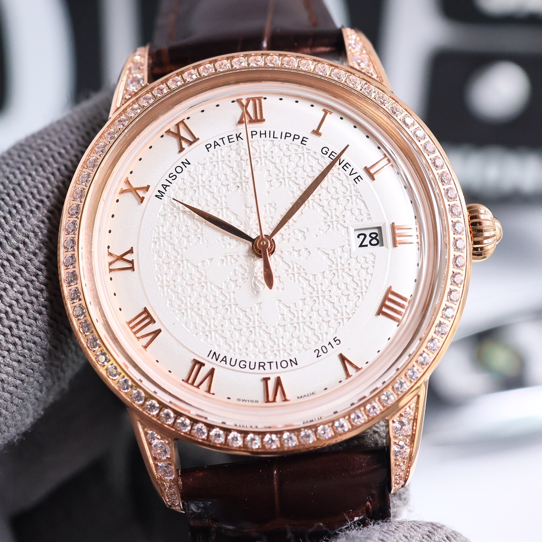 这款手表是AAAAA 1:1 质量 (非常棒). 使用了和原版一模一样的材料. 商标部分也保持了和百达翡丽/Patek Philippe一样. 图片拍摄是实物手表拍摄, 您所收到的实物保证和我们图片一模一样.