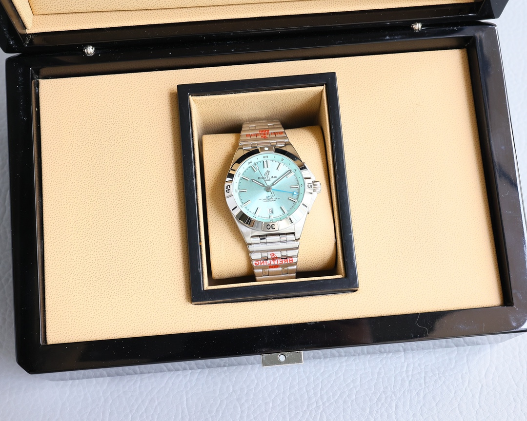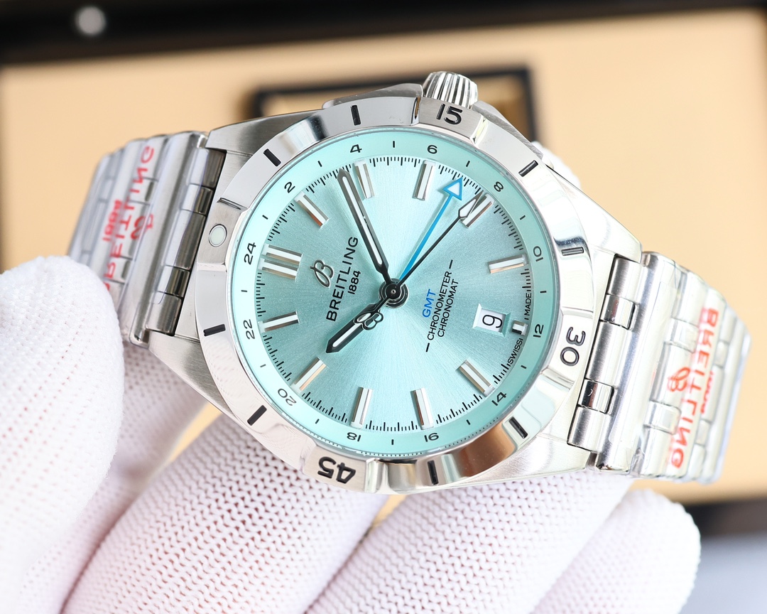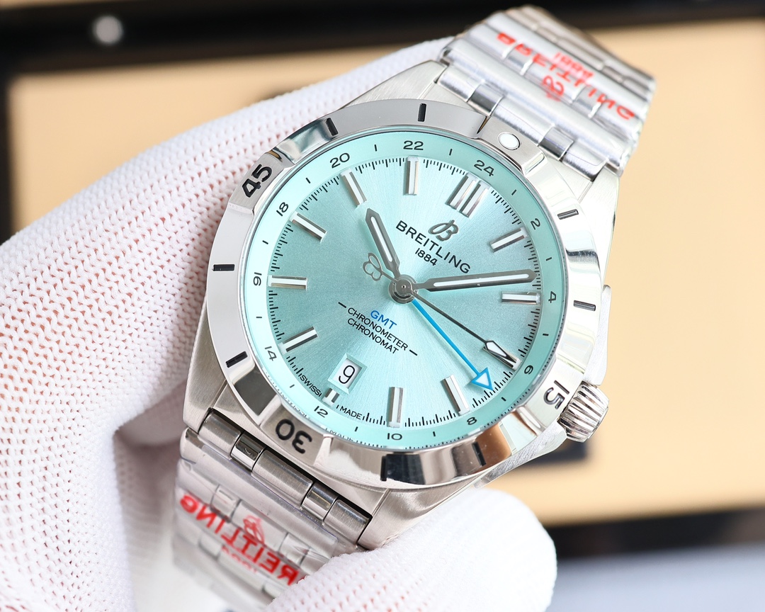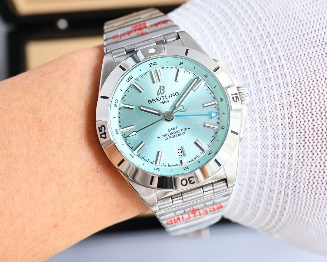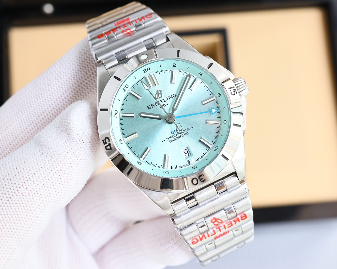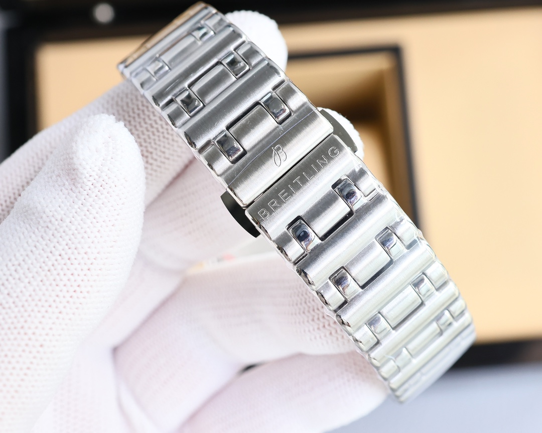 这款手表是AAAAA 1:1 质量 (非常棒). 使用了和原版一模一样的材料. 商标部分也保持了和Breitling一样. 图片拍摄是实物手表拍摄, 您所收到的实物保证和我们图片一模一样.