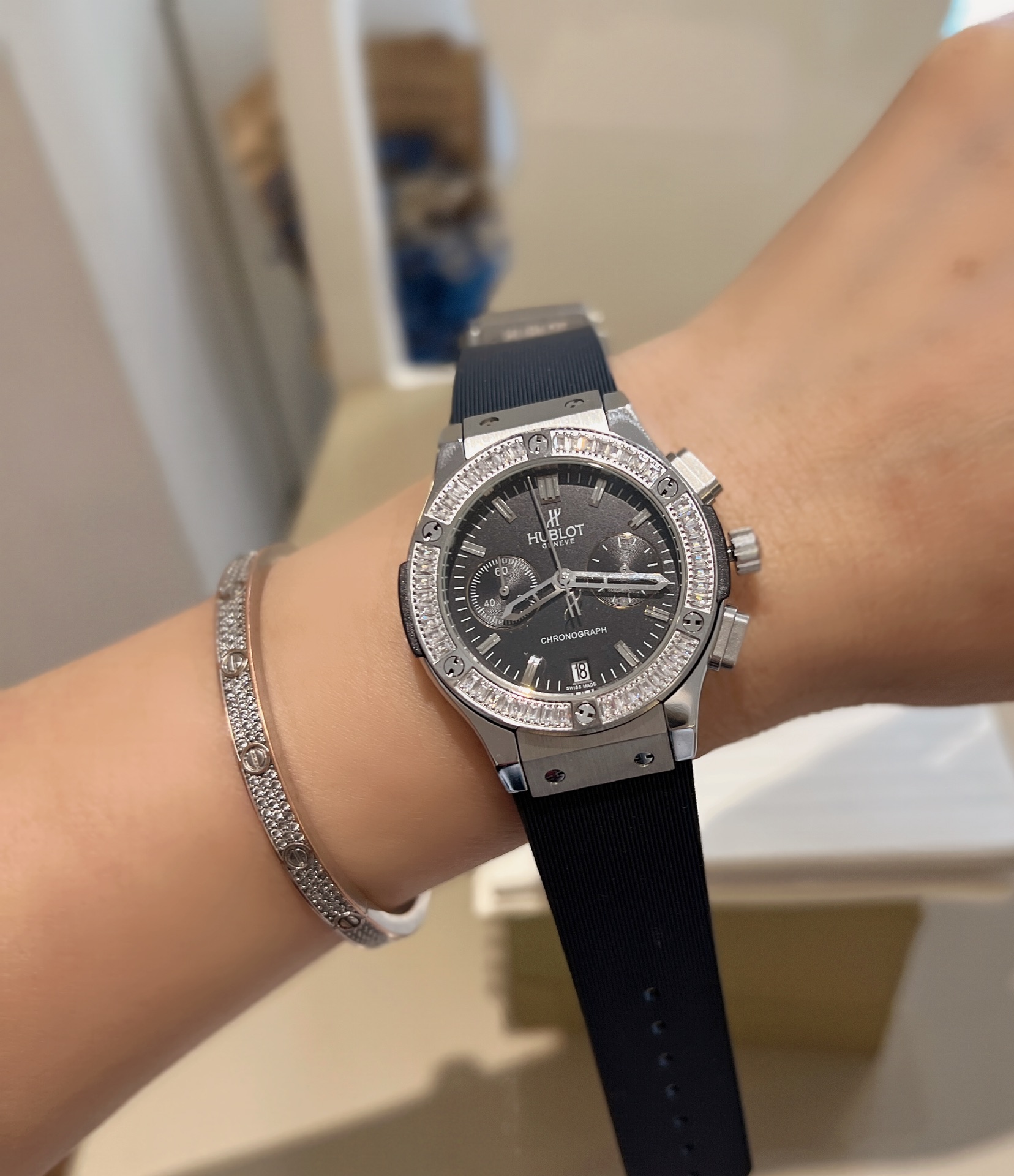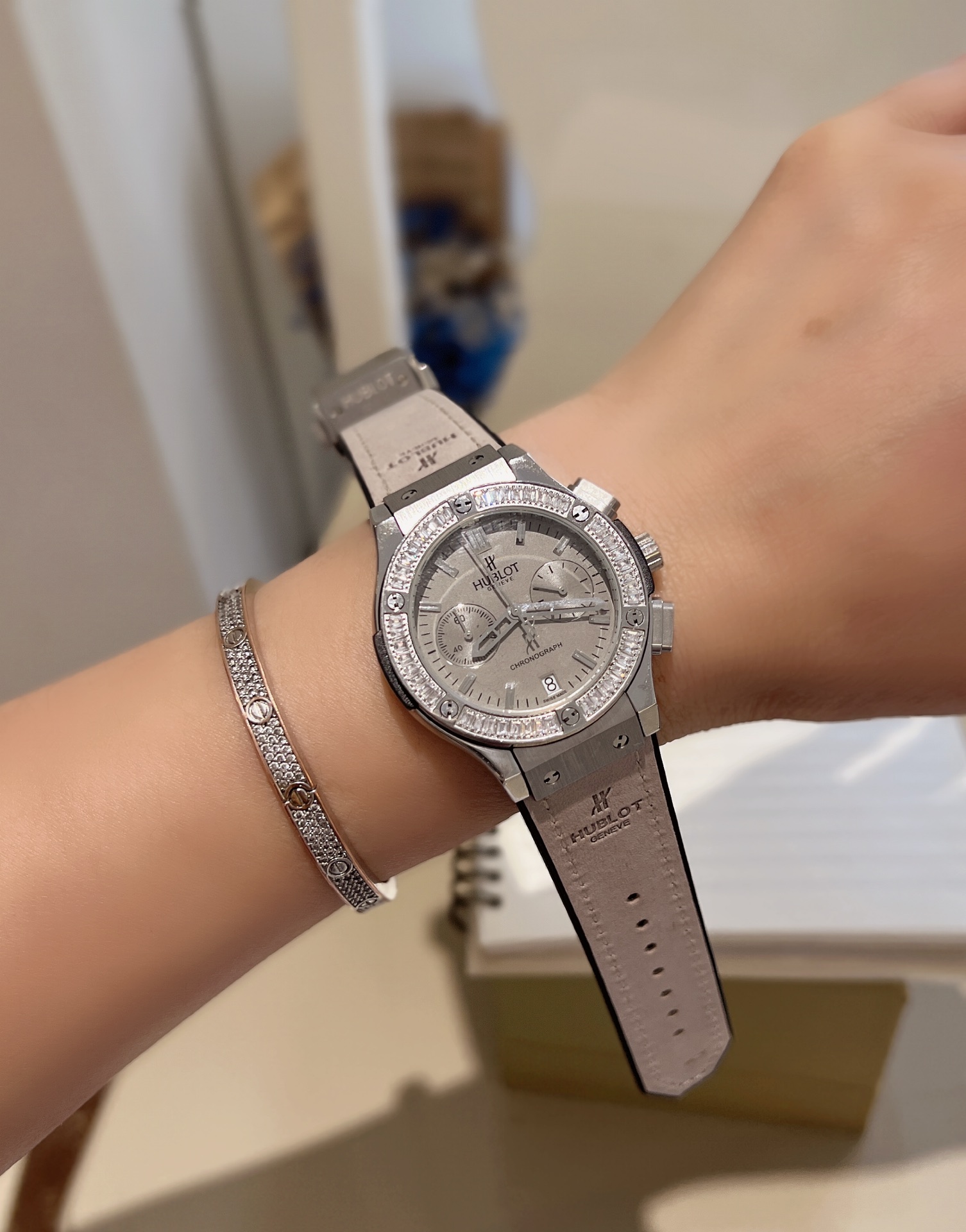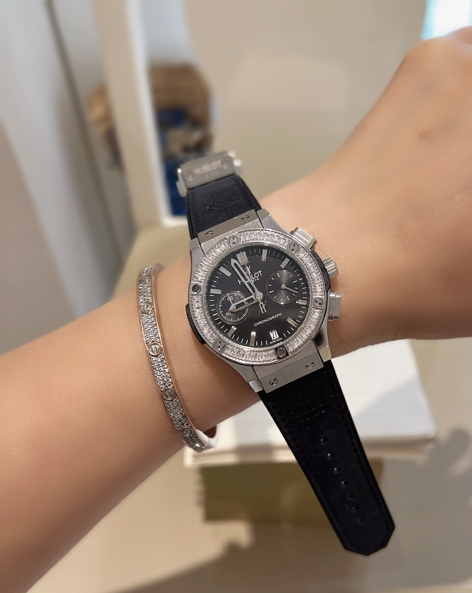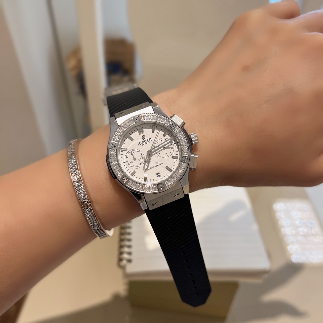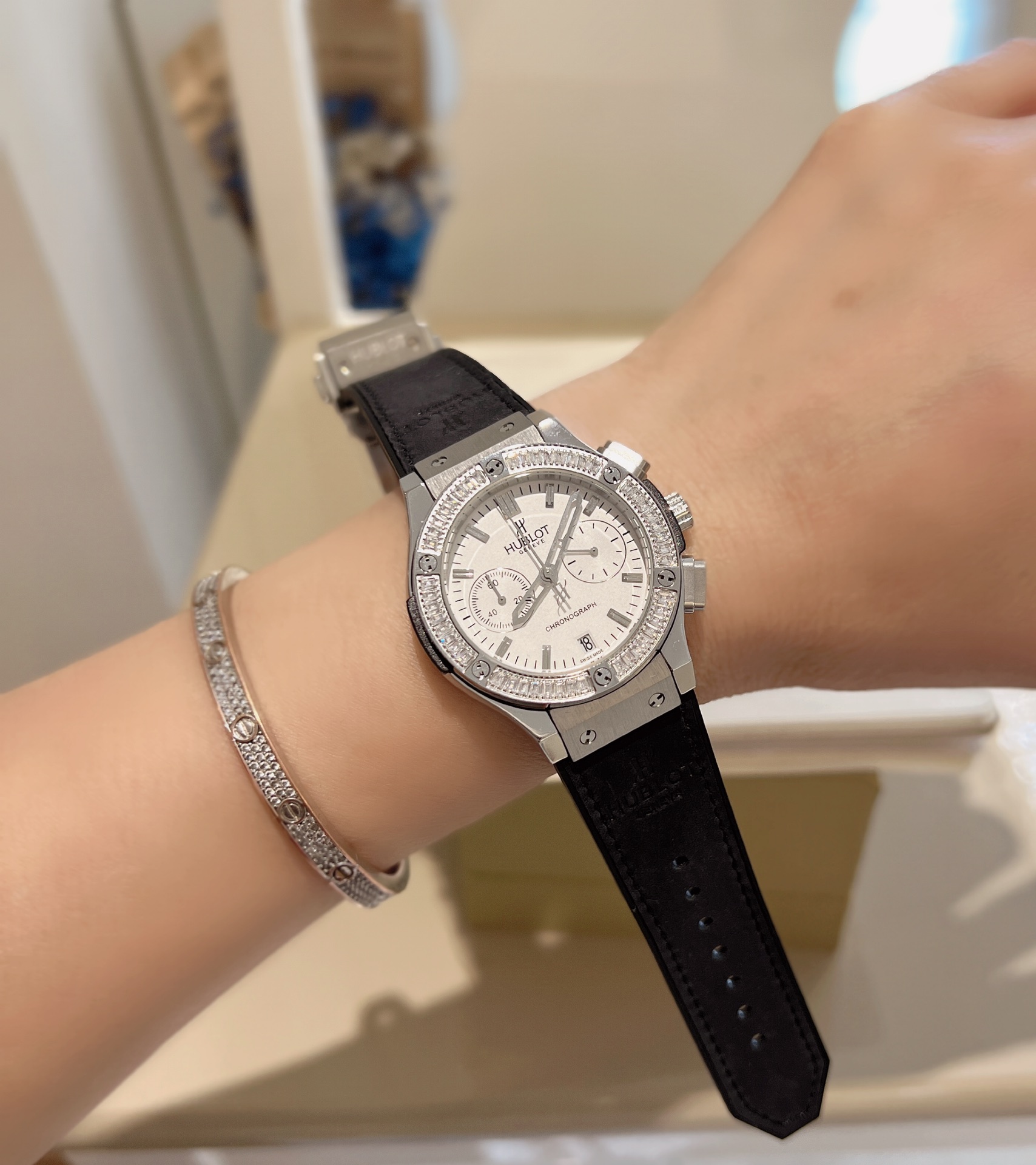 这款手表是AAAAA 1:1 质量 (非常棒). 使用了和原版一模一样的材料. 商标部分也保持了和Hublot一样. 图片拍摄是实物手表拍摄, 您所收到的实物保证和我们图片一模一样.
