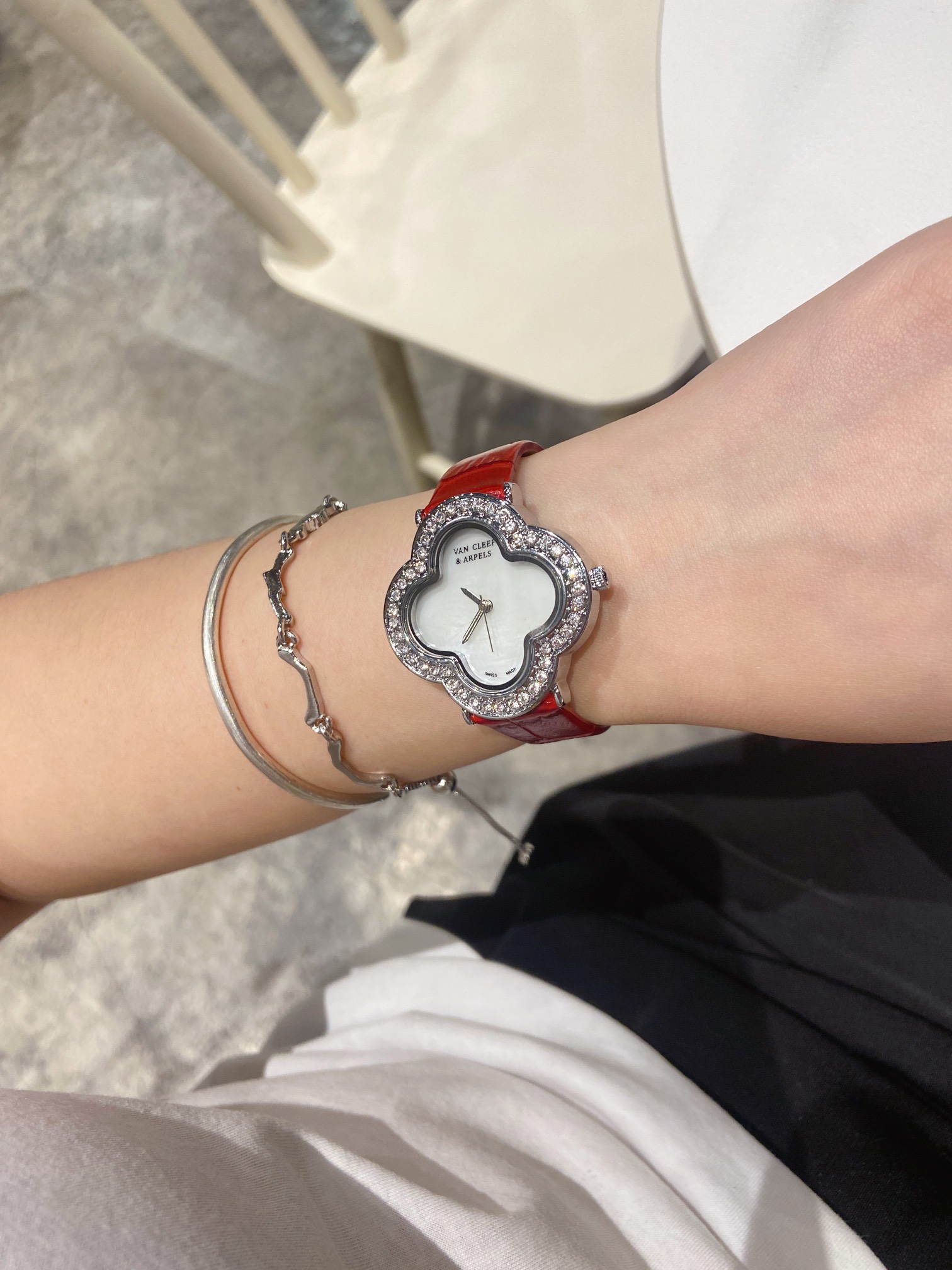 这款手表是AAAAA 1:1 质量 (非常棒). 使用了和原版一模一样的材料. 商标部分也保持了和梵克雅宝/Van Cleef & Arpels一样. 图片拍摄是实物手表拍摄, 您所收到的实物保证和我们图片一模一样.