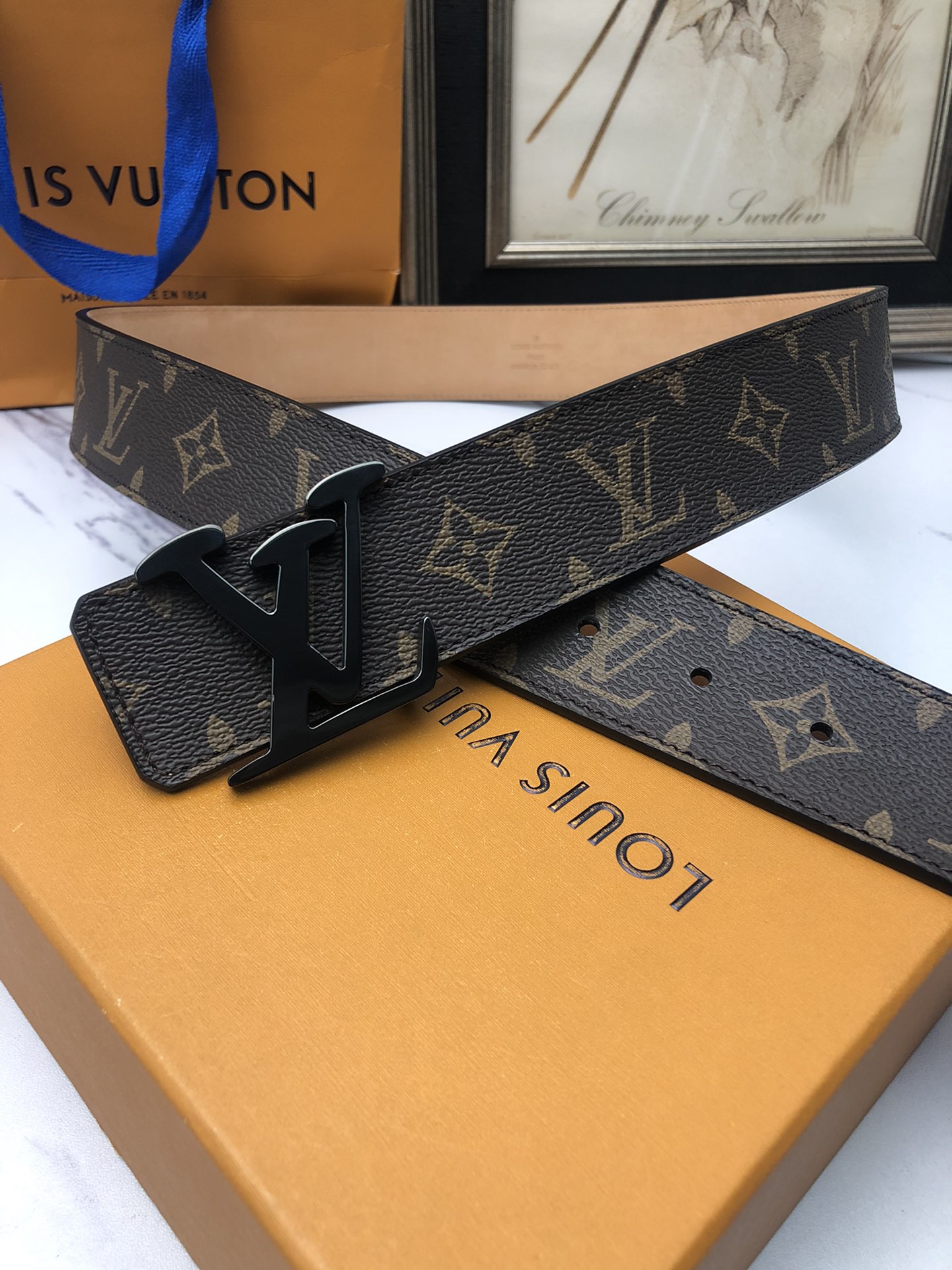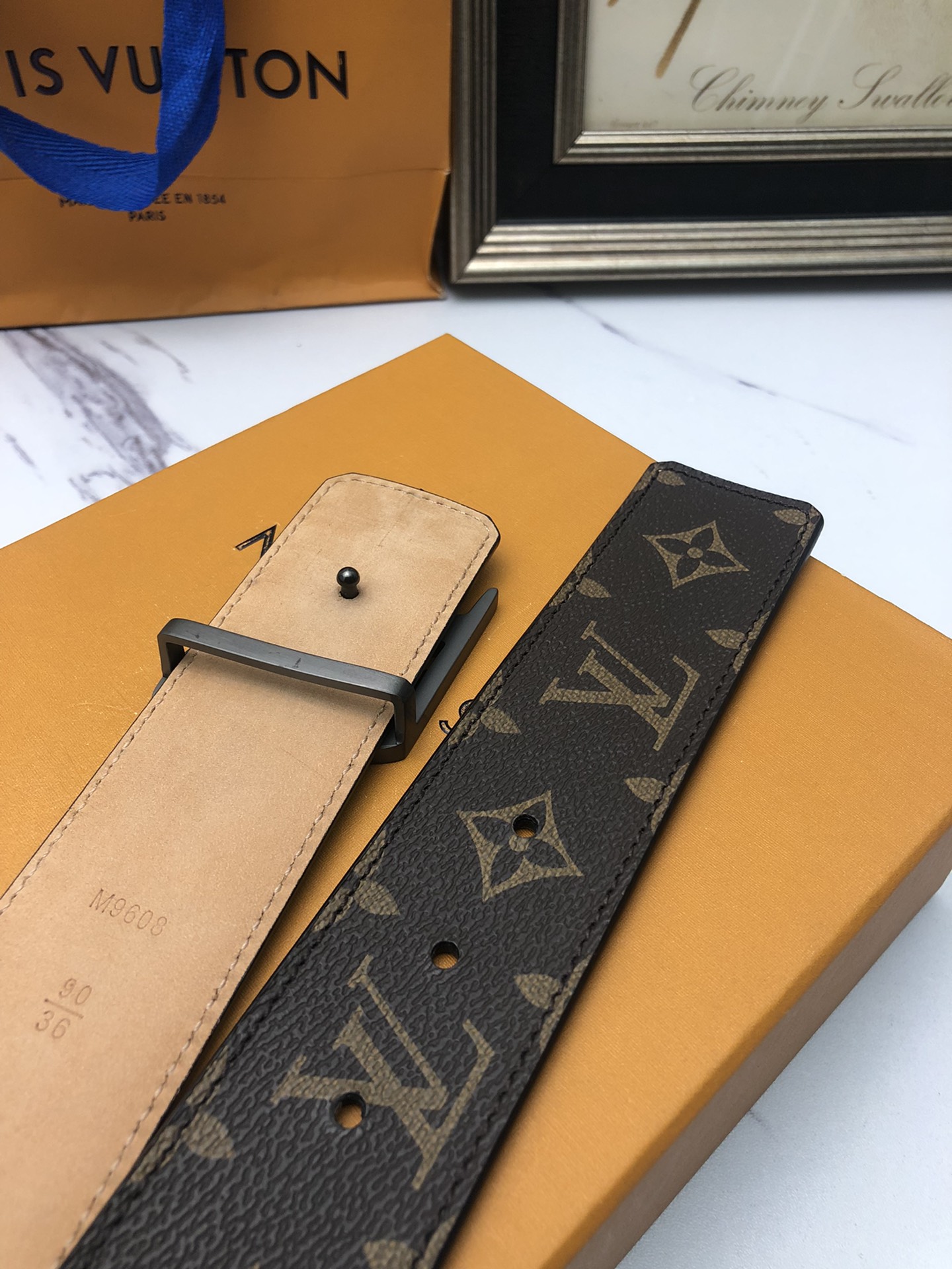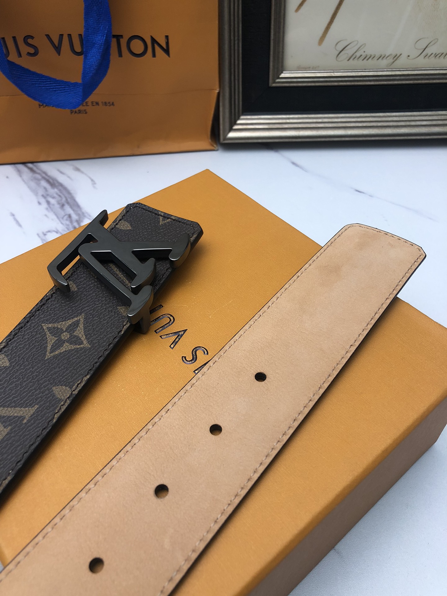 这款皮带是AAAAA 1:1 质量 (非常棒). 使用了和原版一模一样的材料. 商标部分也保持了和路易威登/Louis Vuitton一样. 图片拍摄是实物皮带拍摄, 您所收到的实物保证和我们图片一模一样.