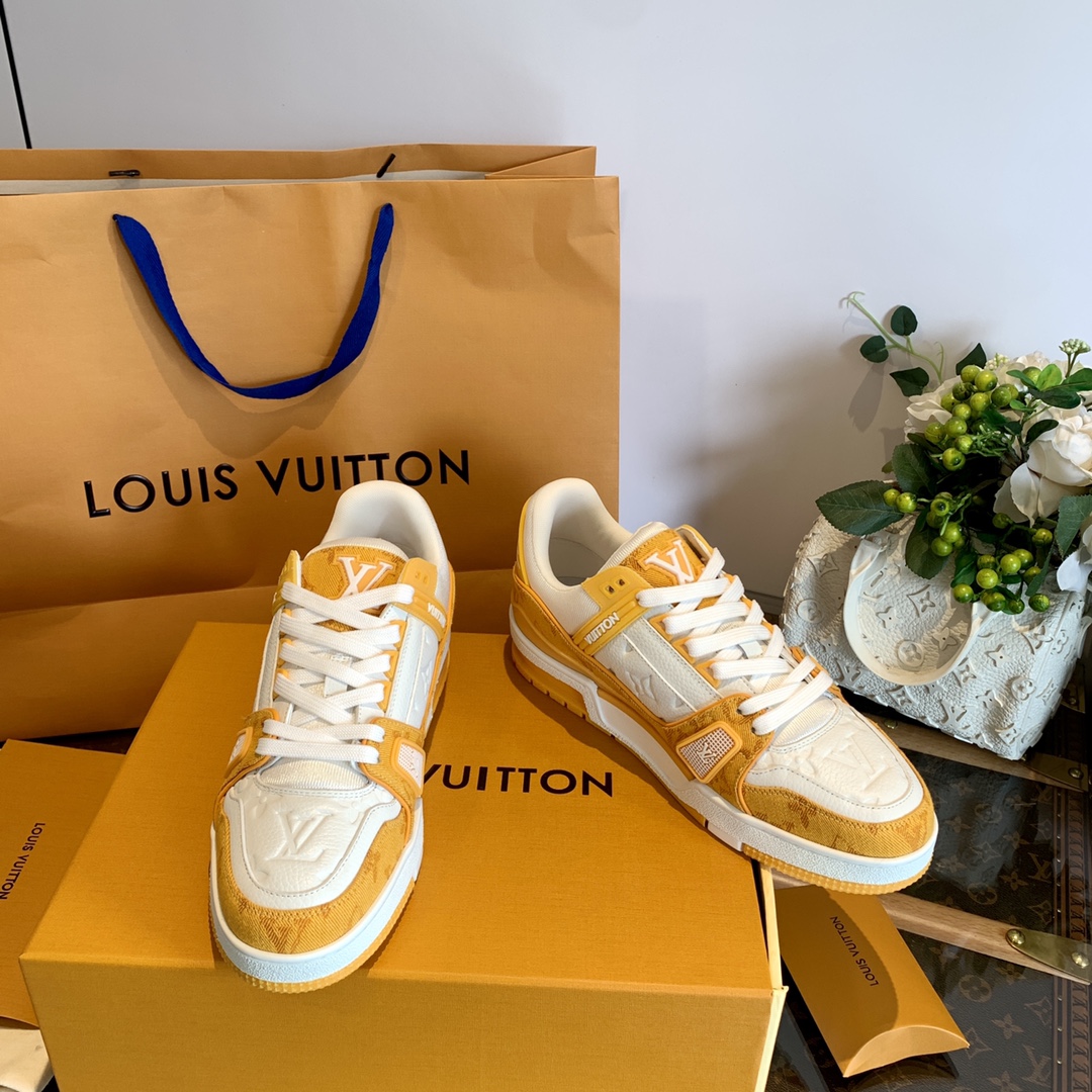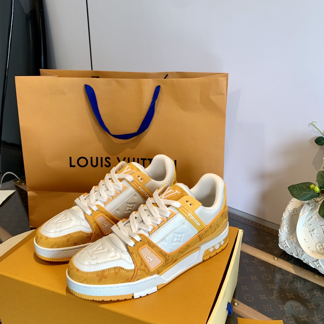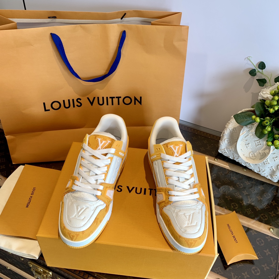 这款鞋子是AAAAA 1:1 质量 (非常棒). 使用了和原版一模一样的材料. 商标部分也保持了和路易威登/Louis Vuitton一样. 图片拍摄是实物鞋子拍摄, 您所收到的实物保证和我们图片一模一样.