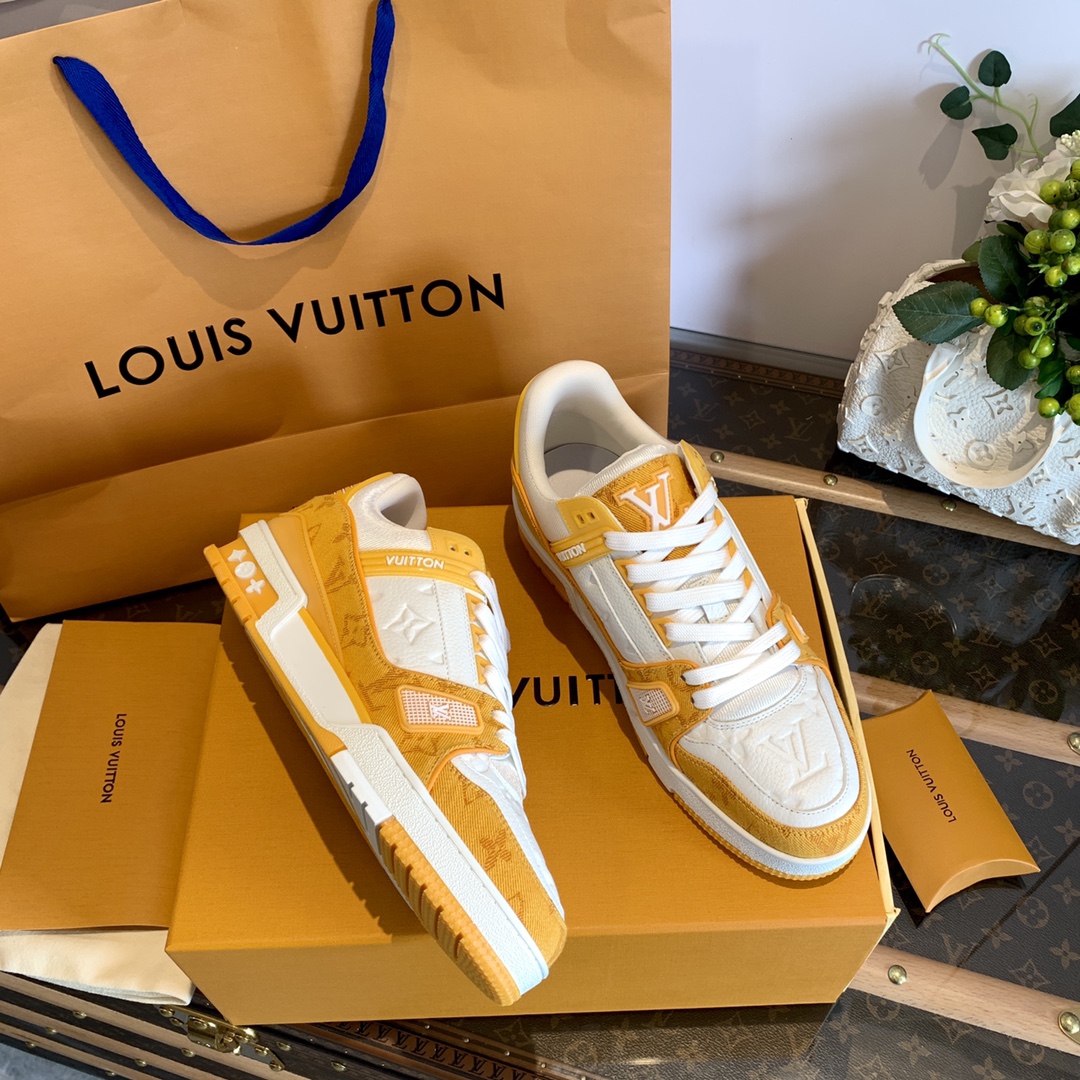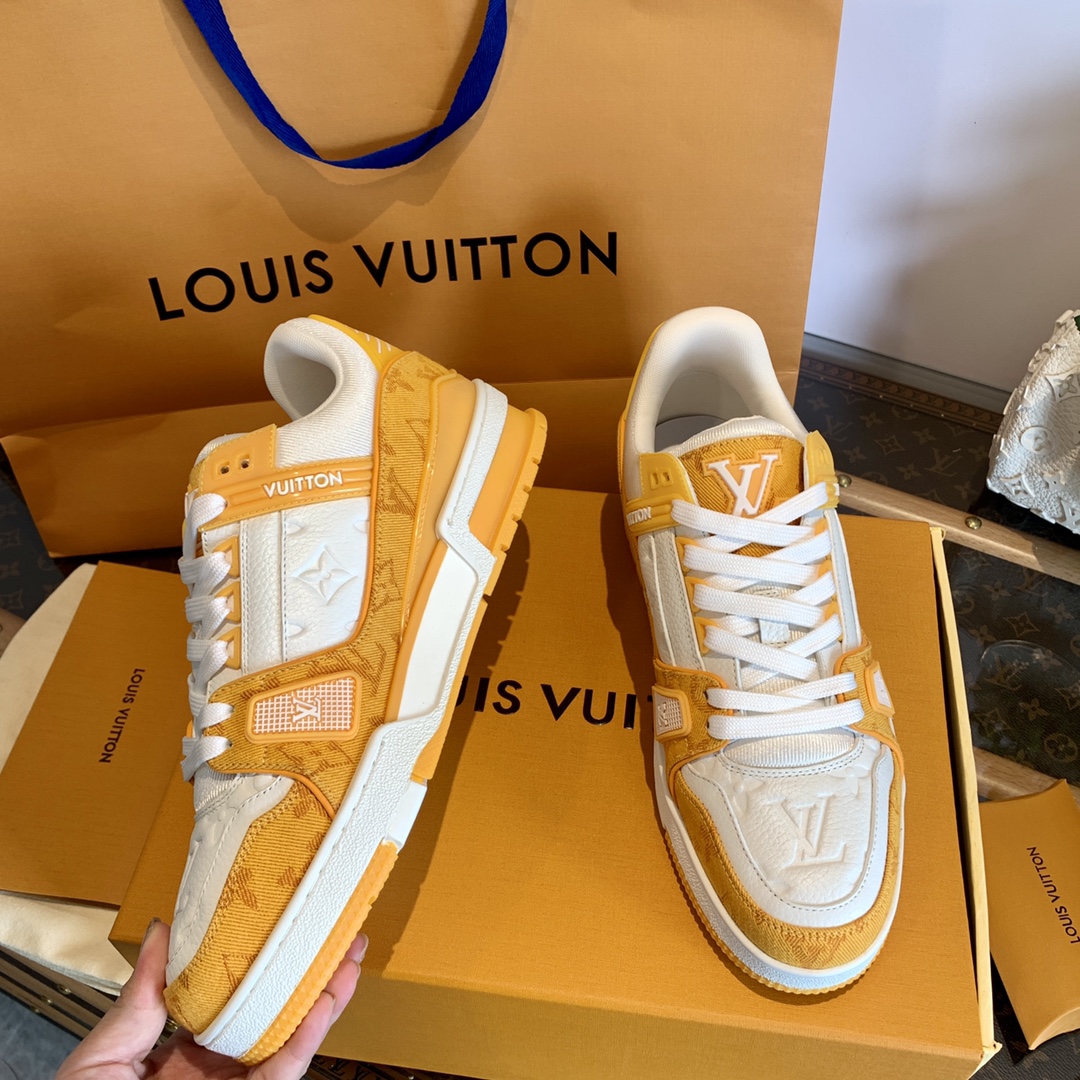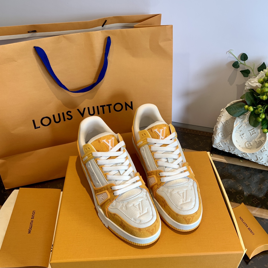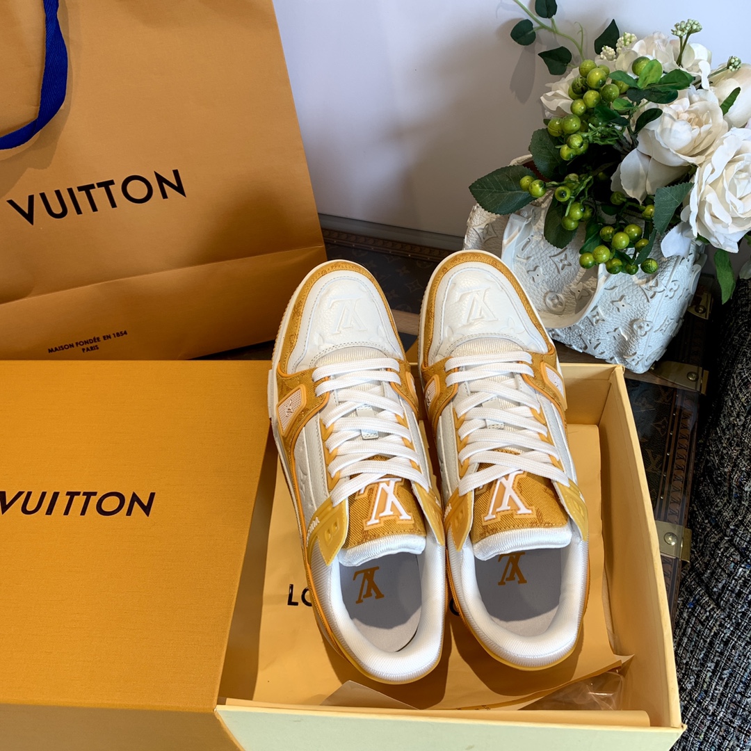 这款鞋子是AAAAA 1:1 质量 (非常棒). 使用了和原版一模一样的材料. 商标部分也保持了和路易威登/Louis Vuitton一样. 图片拍摄是实物鞋子拍摄, 您所收到的实物保证和我们图片一模一样.