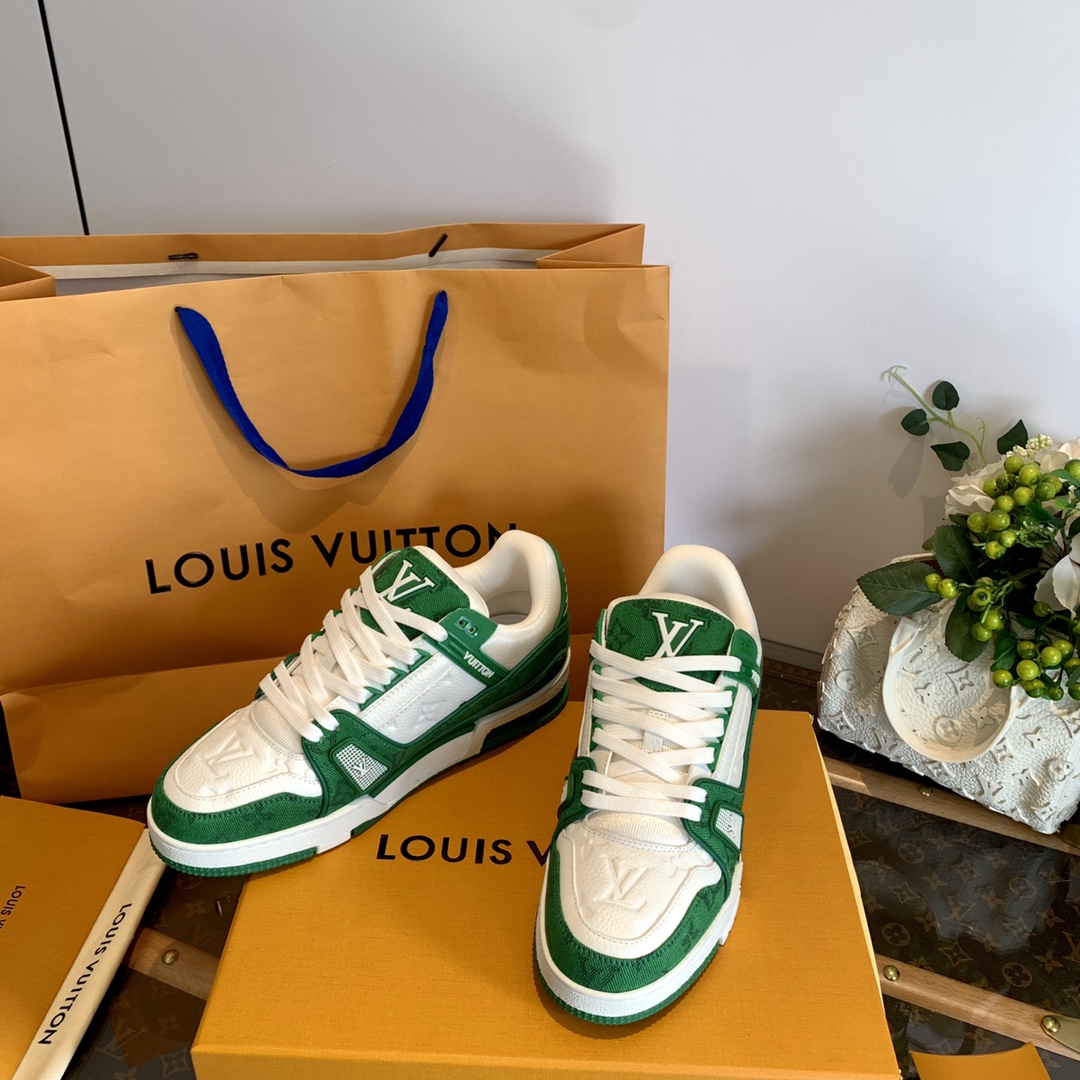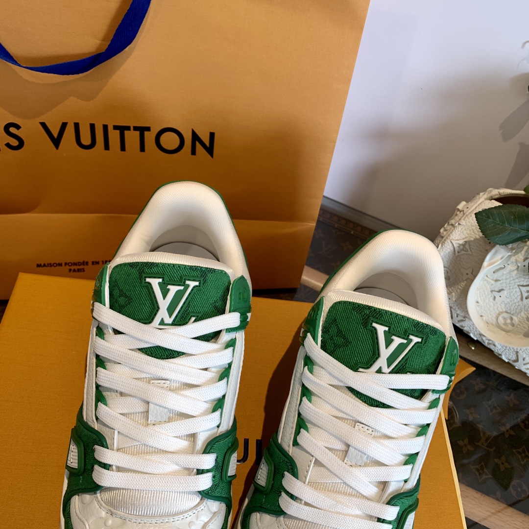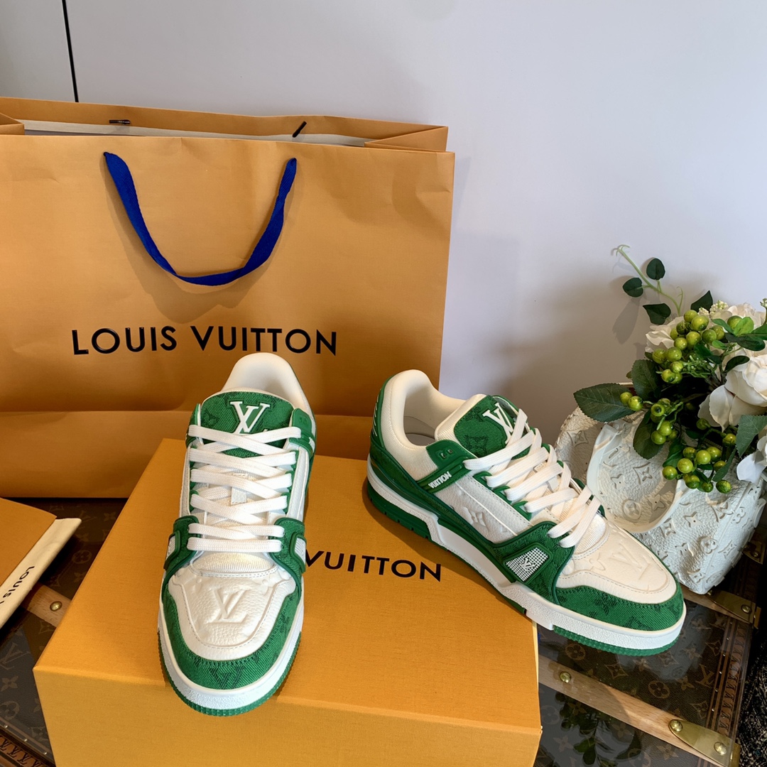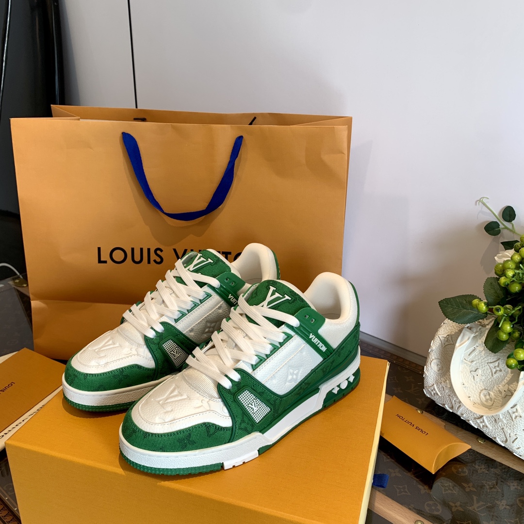 这款鞋子是AAAAA 1:1 质量 (非常棒). 使用了和原版一模一样的材料. 商标部分也保持了和路易威登/Louis Vuitton一样. 图片拍摄是实物鞋子拍摄, 您所收到的实物保证和我们图片一模一样.
