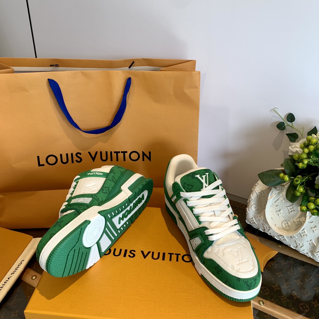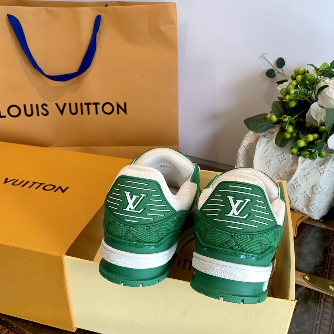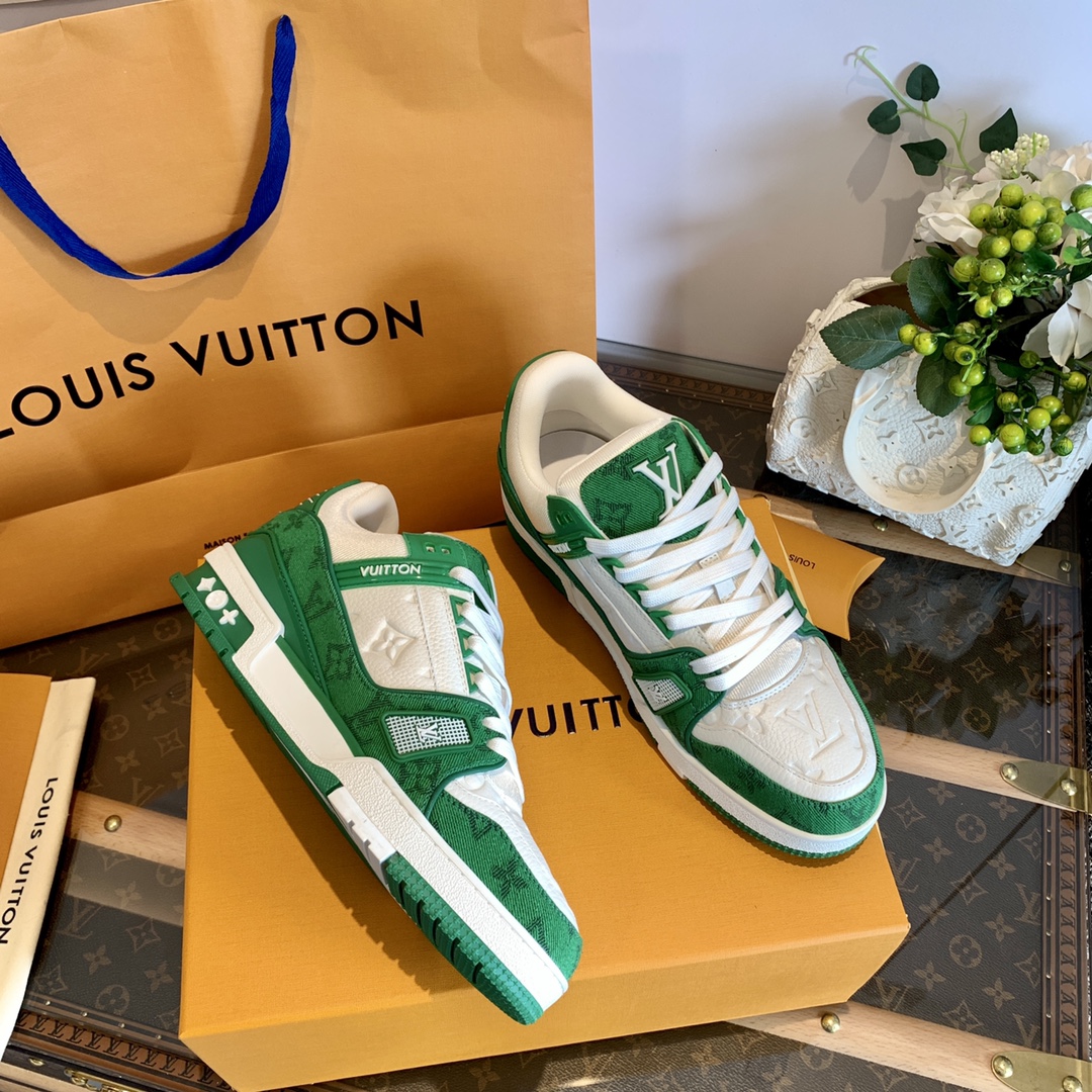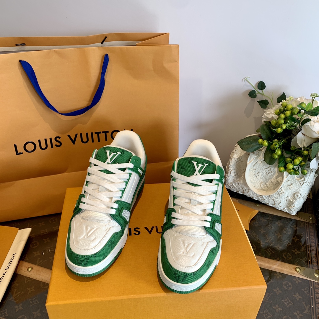 这款鞋子是AAAAA 1:1 质量 (非常棒). 使用了和原版一模一样的材料. 商标部分也保持了和路易威登/Louis Vuitton一样. 图片拍摄是实物鞋子拍摄, 您所收到的实物保证和我们图片一模一样.
