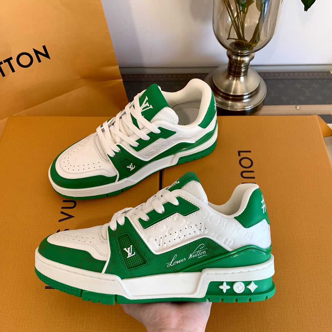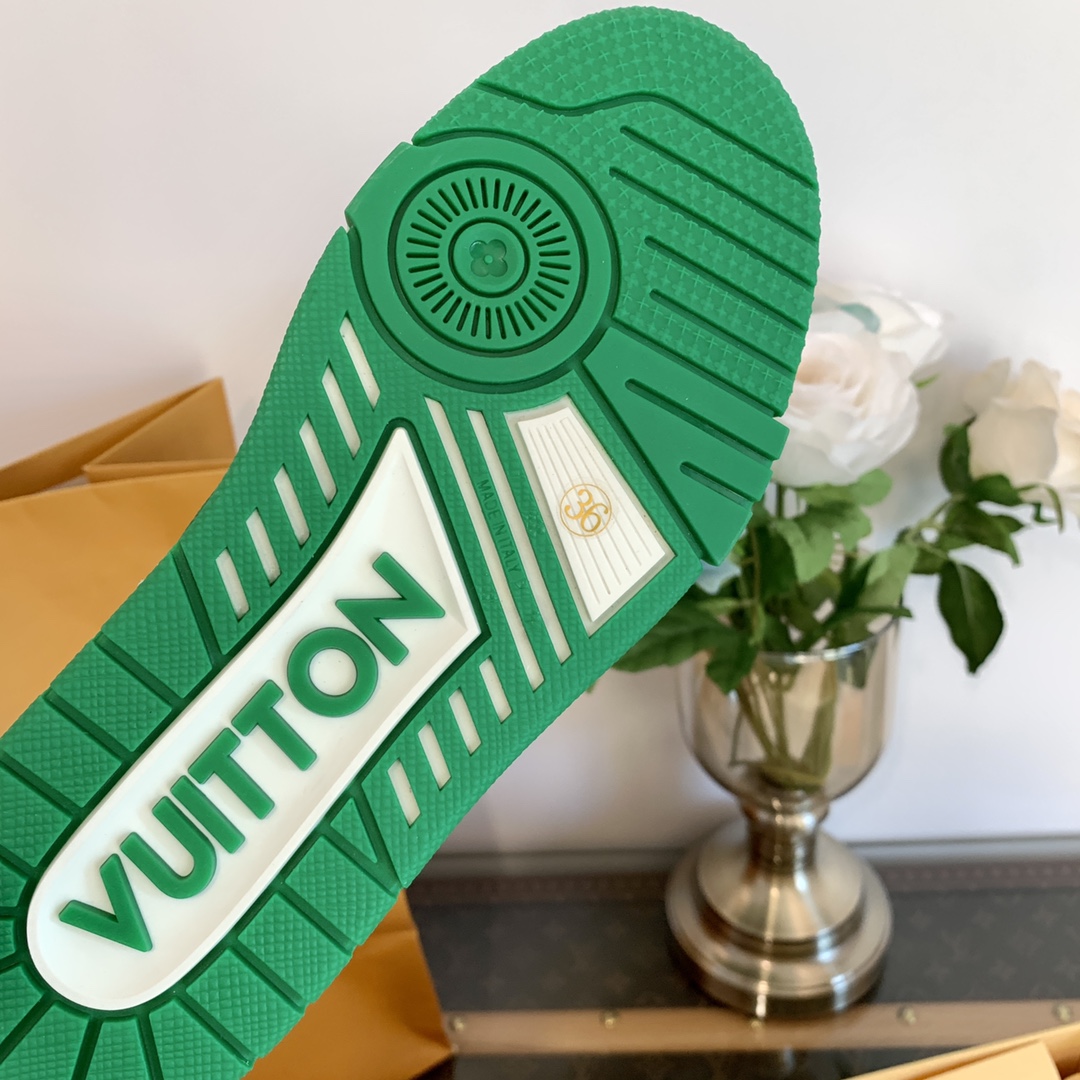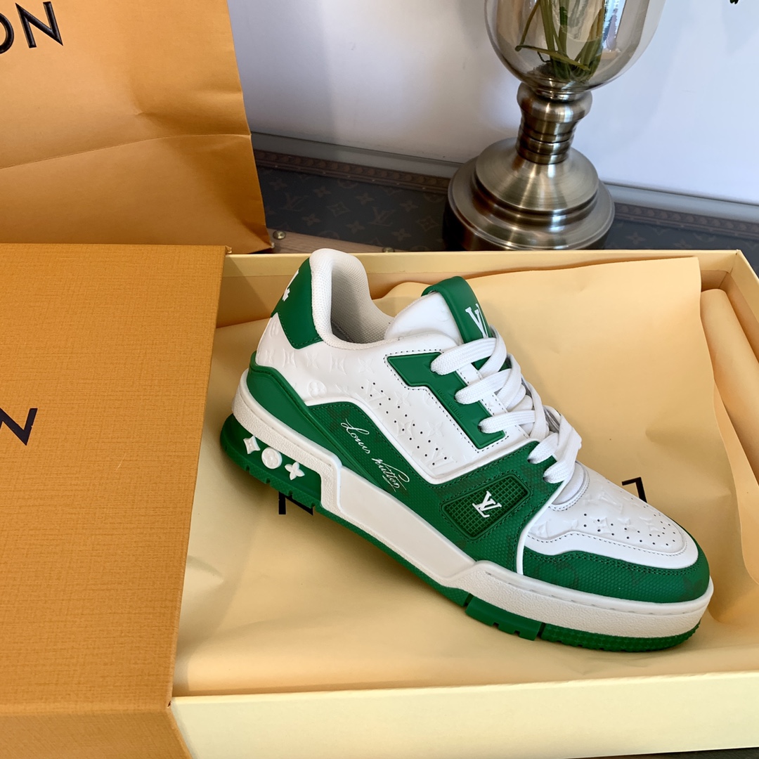 这款鞋子是AAAAA 1:1 质量 (非常棒). 使用了和原版一模一样的材料. 商标部分也保持了和路易威登/Louis Vuitton一样. 图片拍摄是实物鞋子拍摄, 您所收到的实物保证和我们图片一模一样.