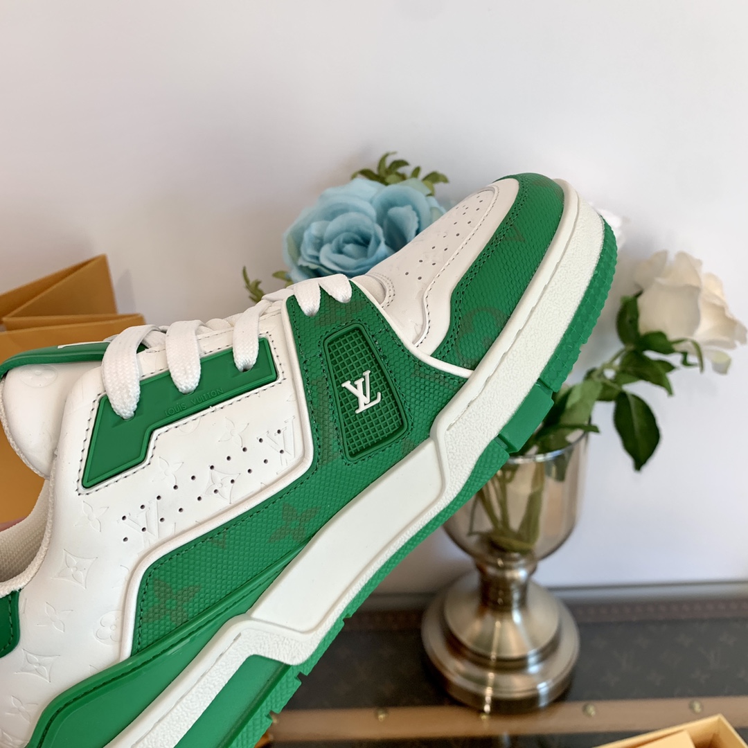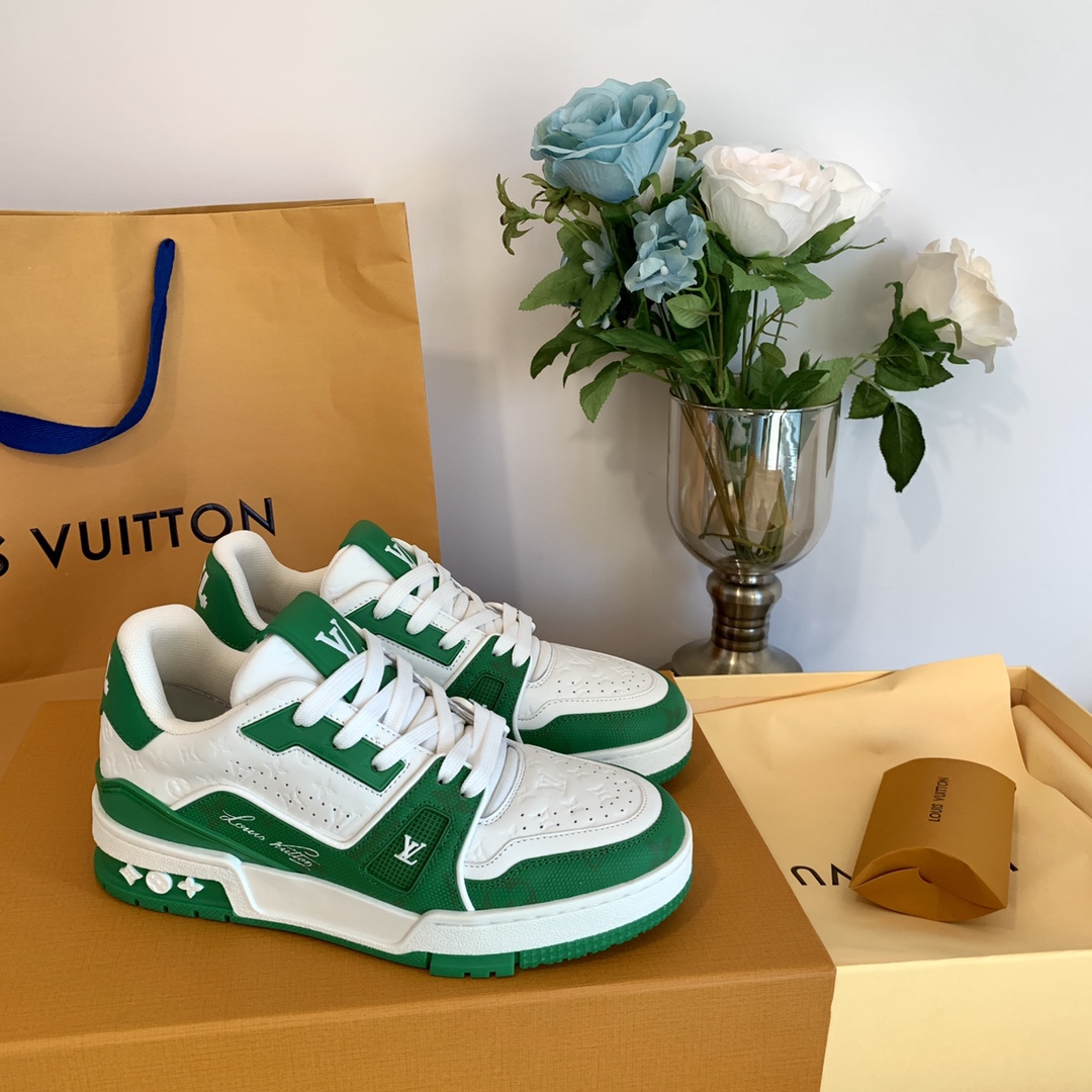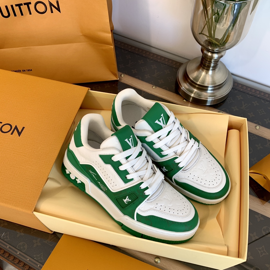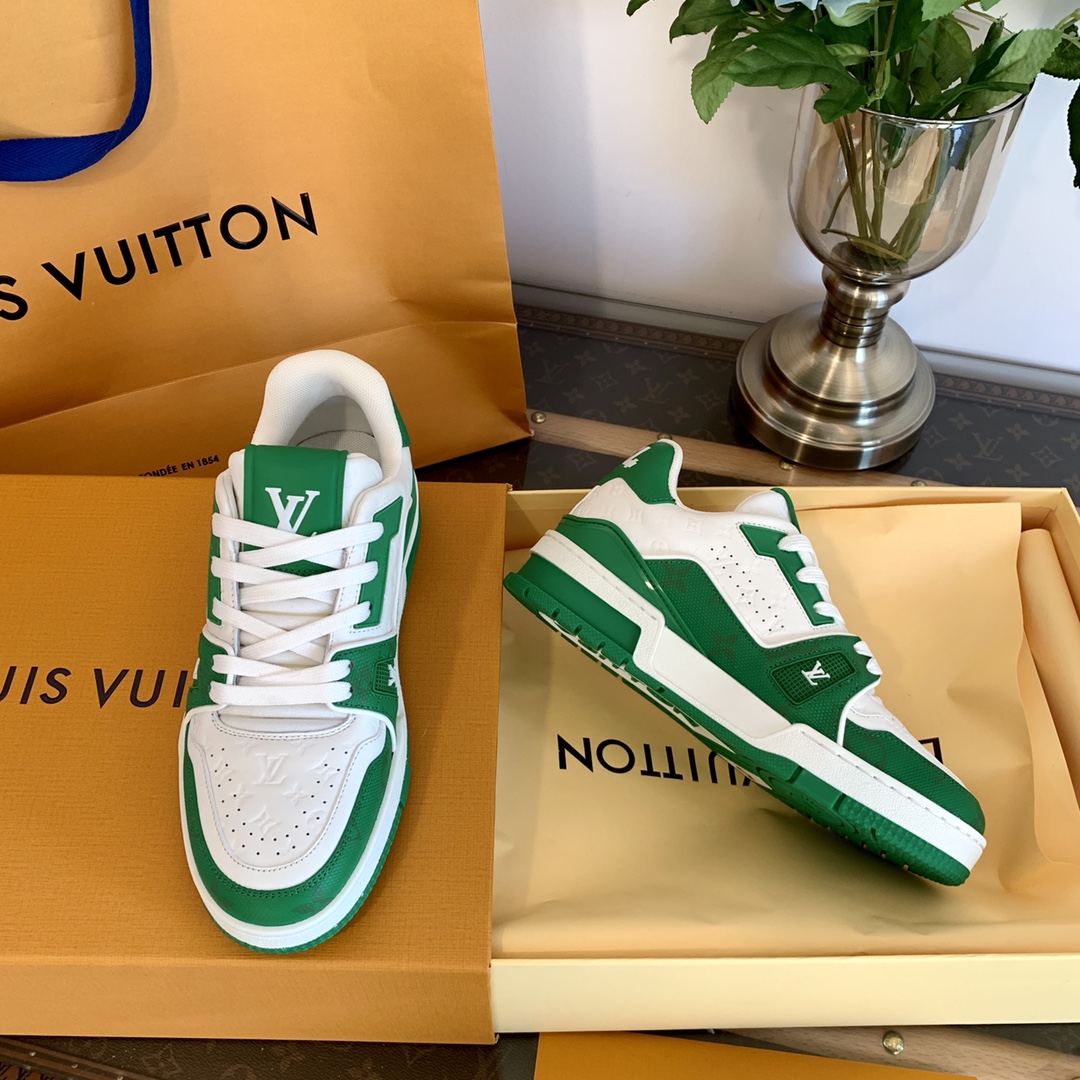 这款鞋子是AAAAA 1:1 质量 (非常棒). 使用了和原版一模一样的材料. 商标部分也保持了和路易威登/Louis Vuitton一样. 图片拍摄是实物鞋子拍摄, 您所收到的实物保证和我们图片一模一样.