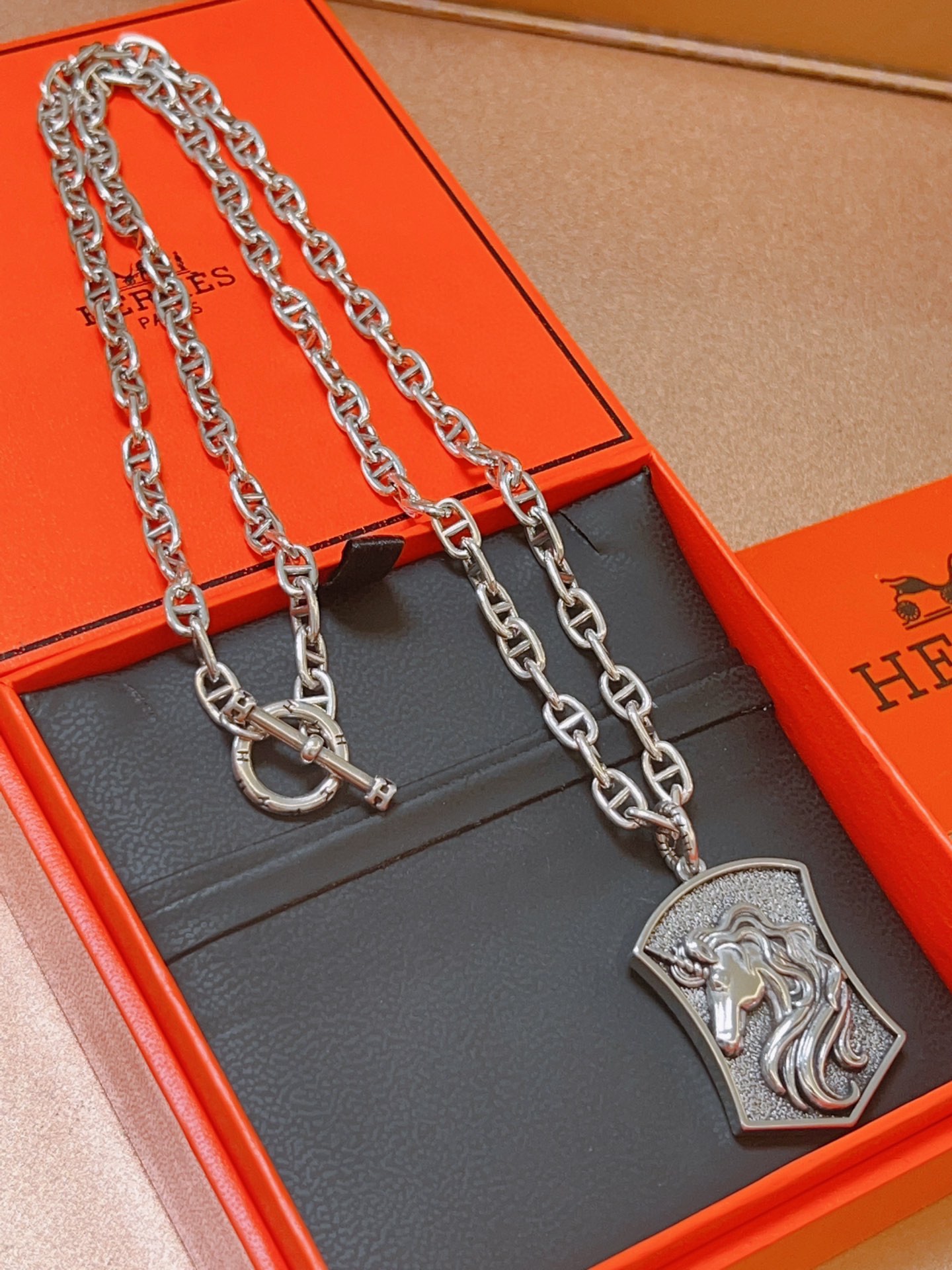 这款首饰是AAAAA 1:1 质量 (非常棒). 使用了和原版一模一样的材料. 商标部分也保持了和爱马仕/Hermes一样. 图片拍摄是实物首饰拍摄, 您所收到的实物保证和我们图片一模一样.