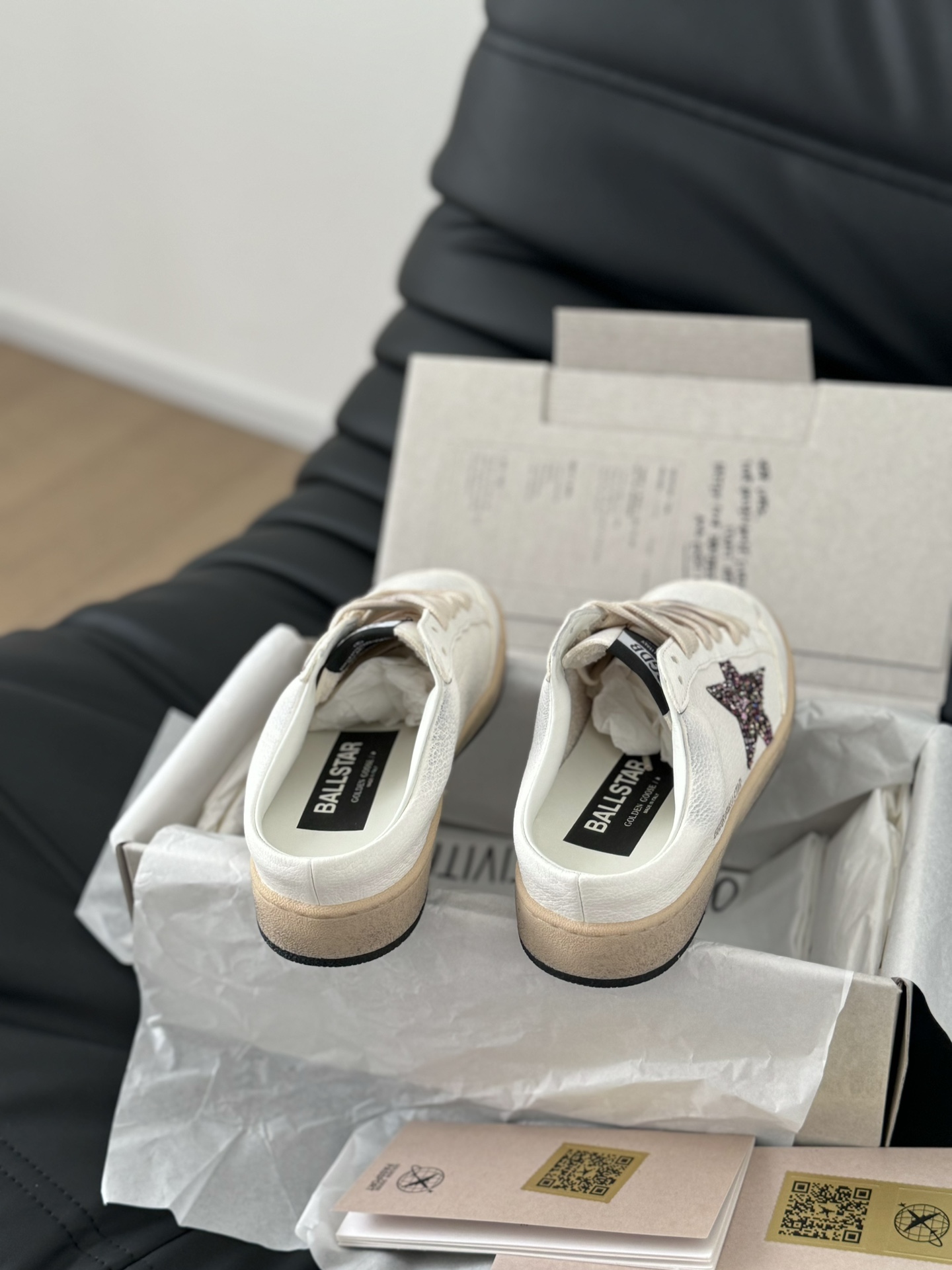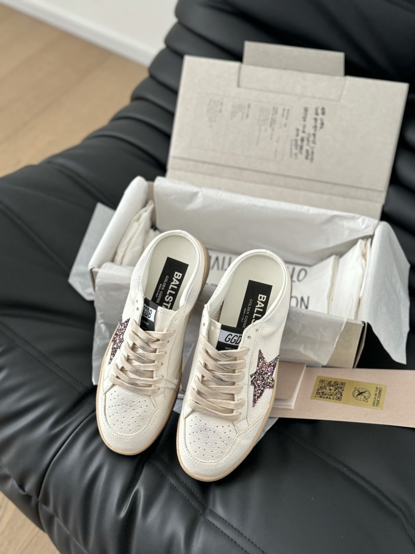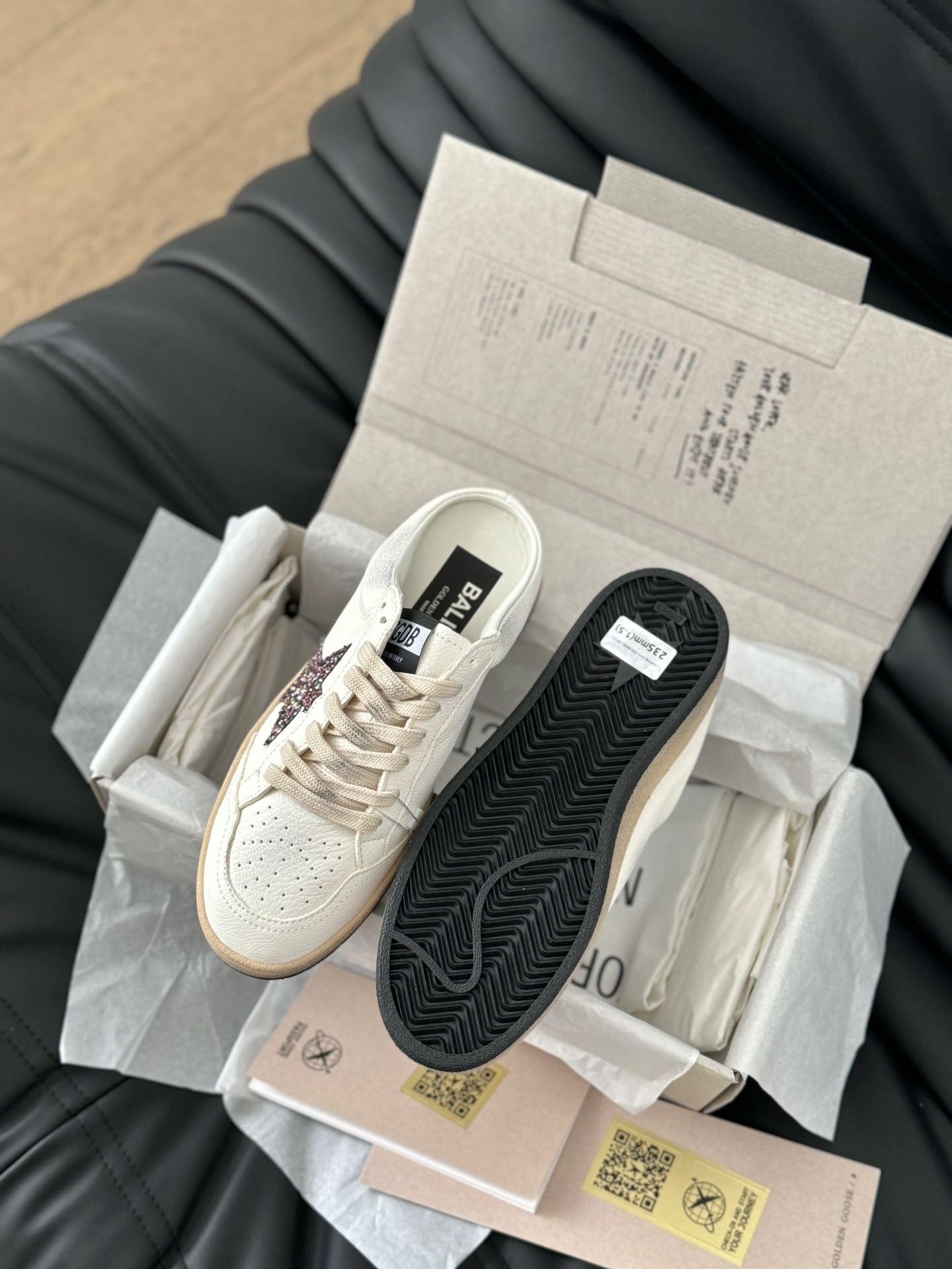 这款鞋子是AAAAA 1:1 质量 (非常棒). 使用了和原版一模一样的材料. 商标部分也保持了和Golden Goose一样. 图片拍摄是实物鞋子拍摄, 您所收到的实物保证和我们图片一模一样.