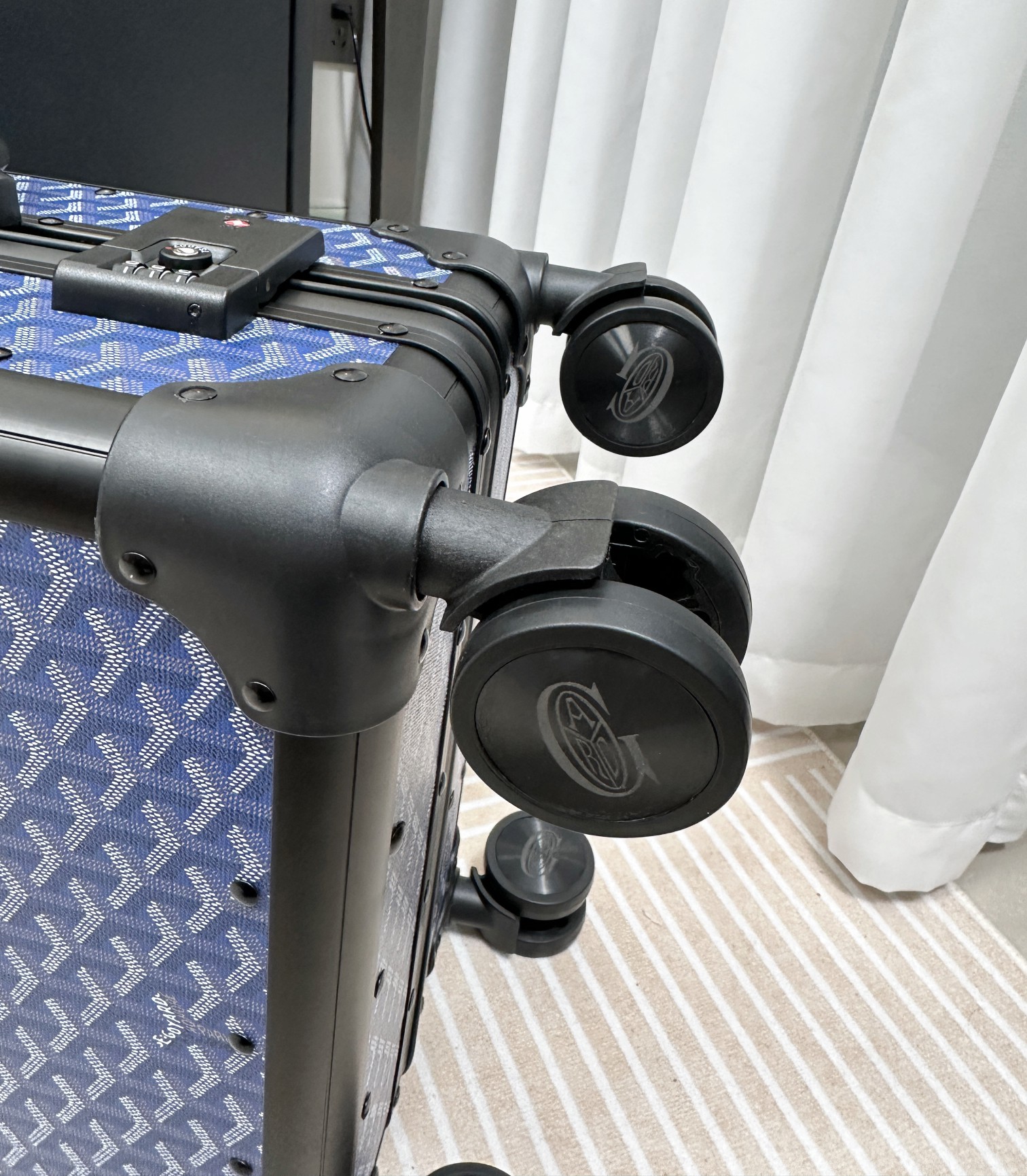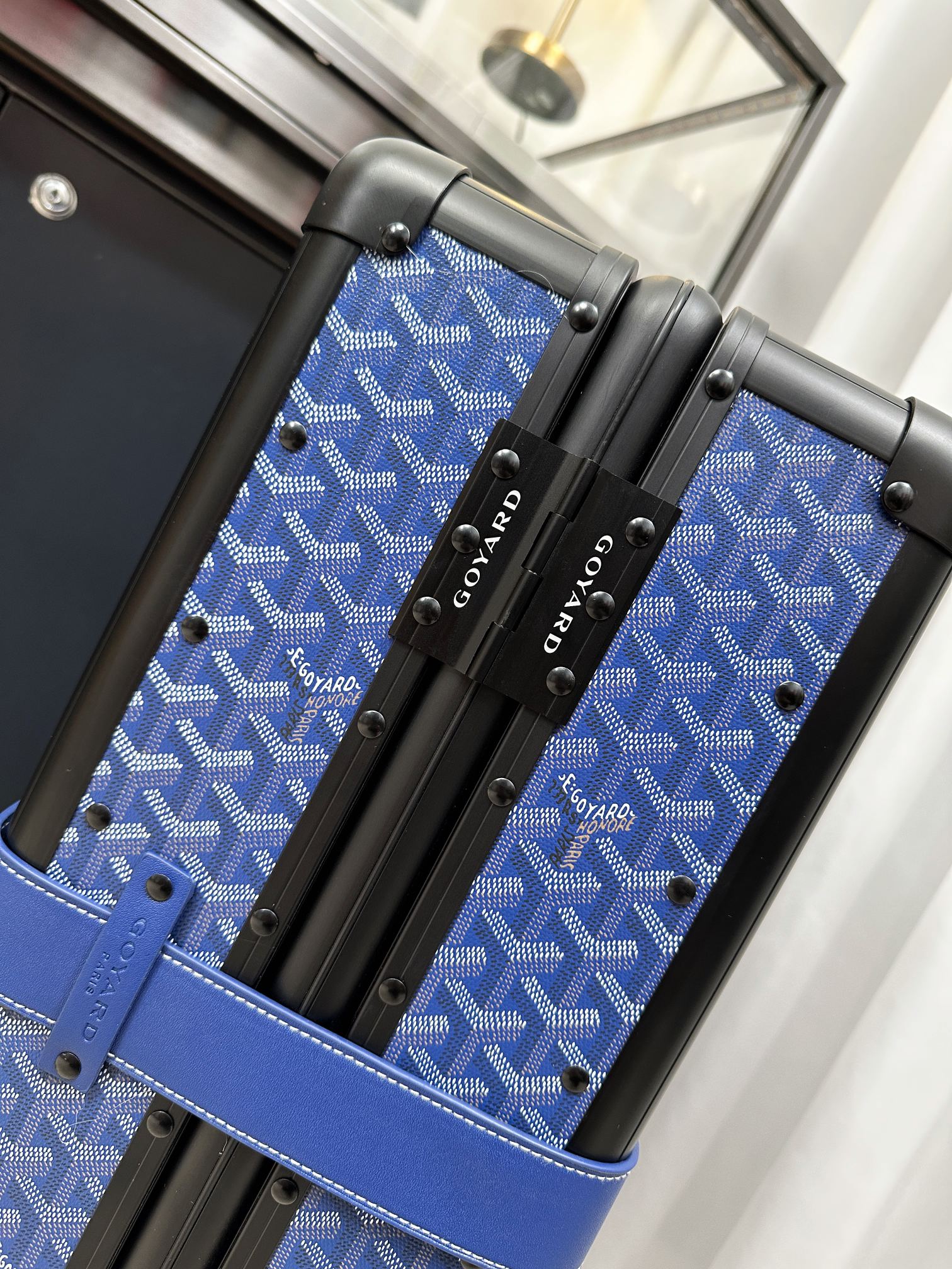 这款拉杆箱是AAAAA 1:1 质量 (非常棒). 使用了和原版一模一样的材料. 商标部分也保持了和GOYARD一样. 图片拍摄是实物拉杆箱拍摄, 您所收到的实物保证和我们图片一模一样.