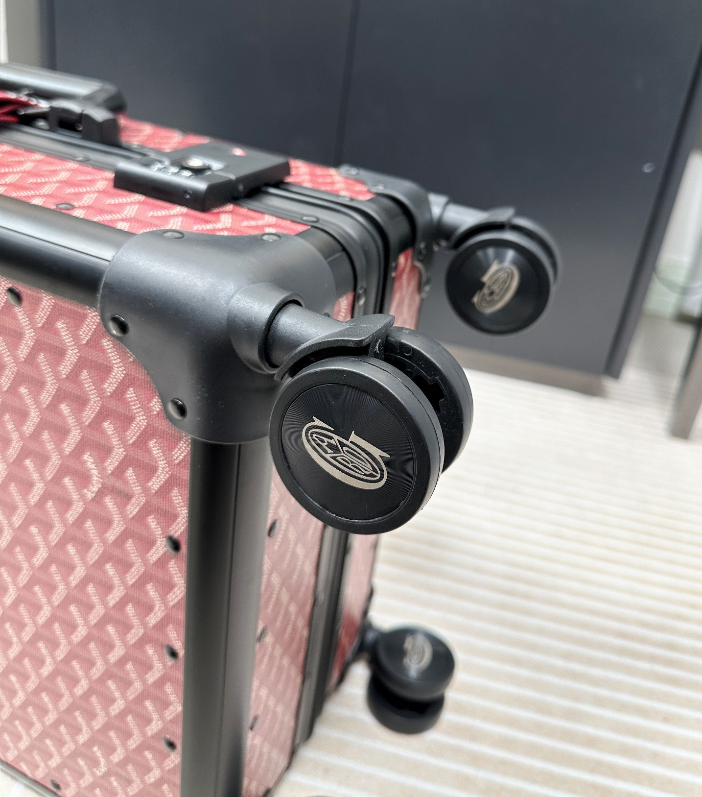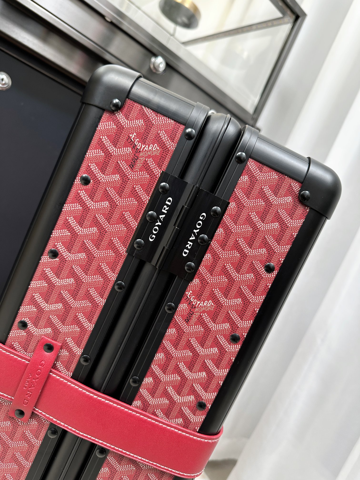 这款拉杆箱是AAAAA 1:1 质量 (非常棒). 使用了和原版一模一样的材料. 商标部分也保持了和GOYARD一样. 图片拍摄是实物拉杆箱拍摄, 您所收到的实物保证和我们图片一模一样.
