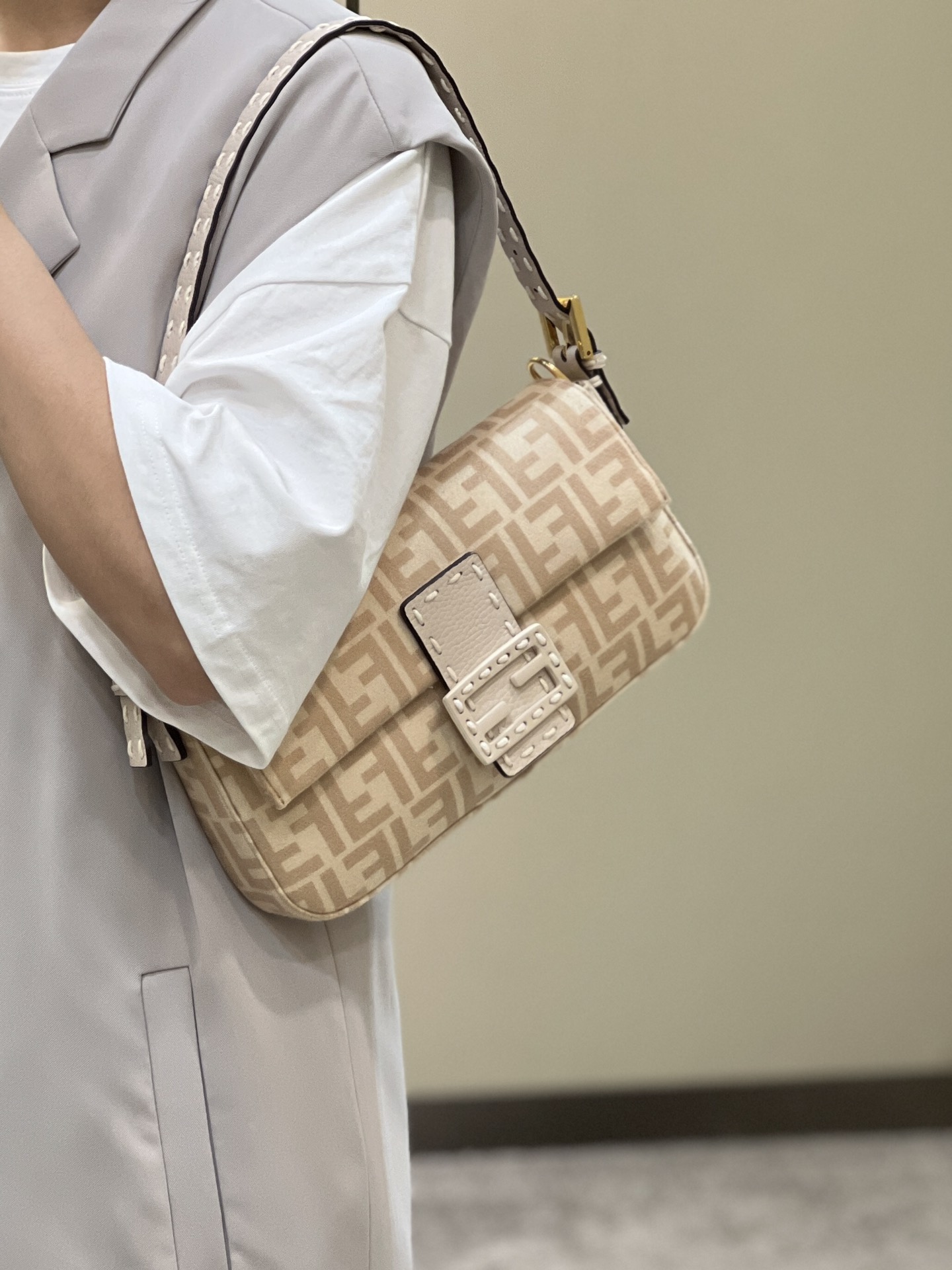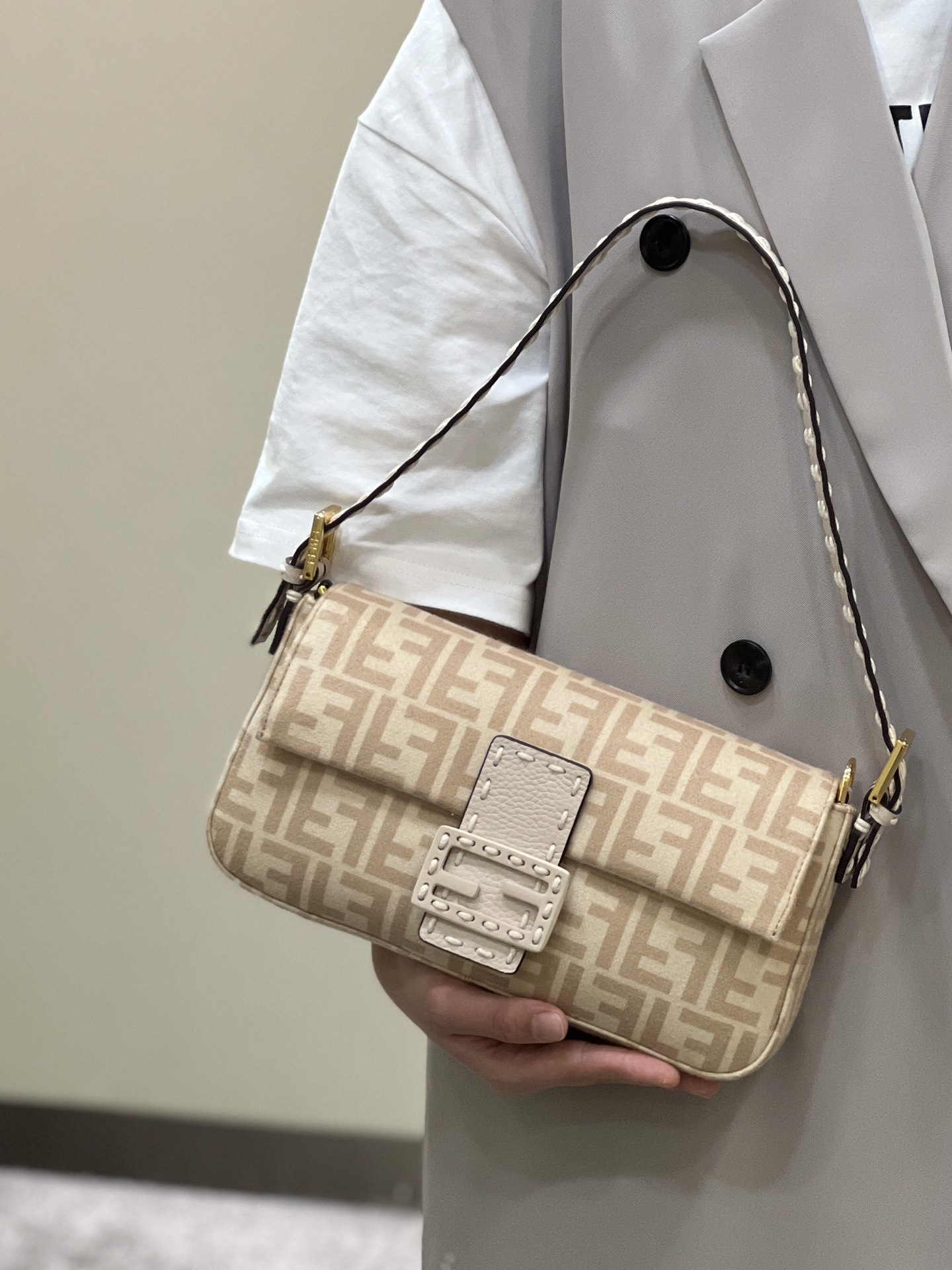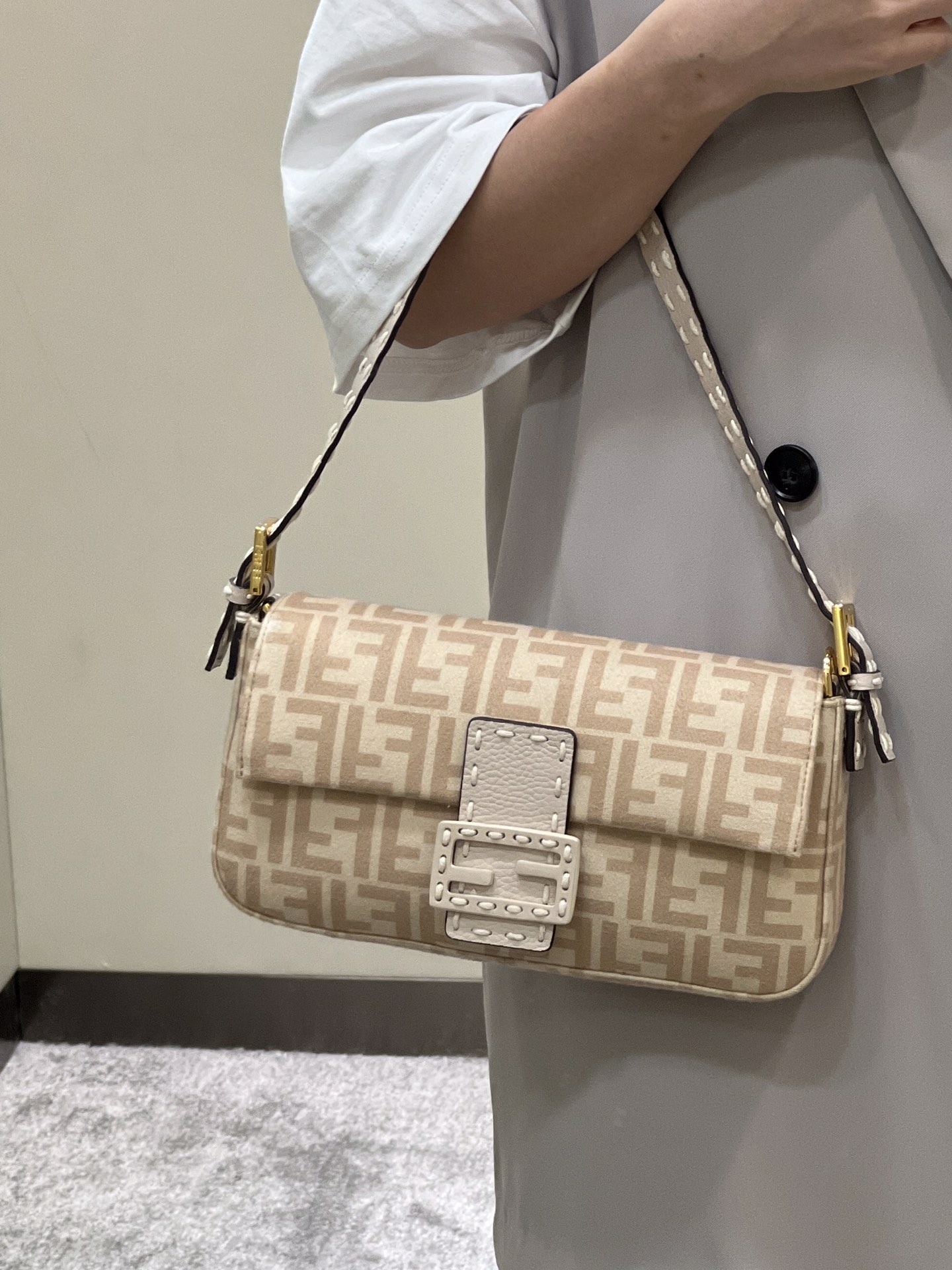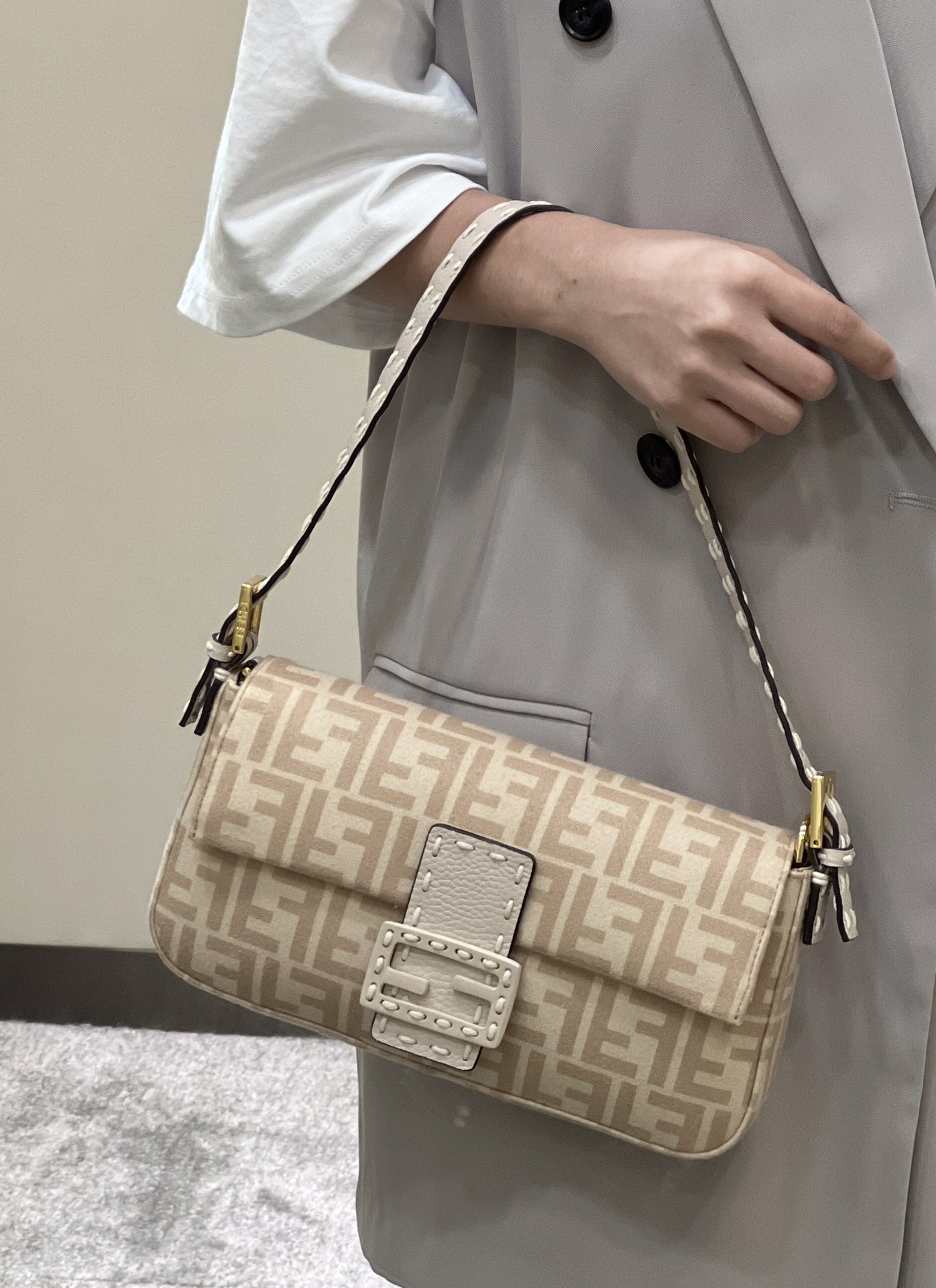 这款包包是AAAAA 1:1 质量 (非常棒). 使用了和原版一模一样的材料. 商标部分也保持了和芬迪/Fendi一样. 图片拍摄是实物包包拍摄, 您所收到的实物保证和我们图片一模一样.