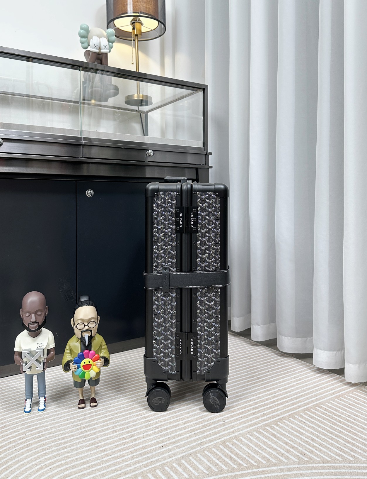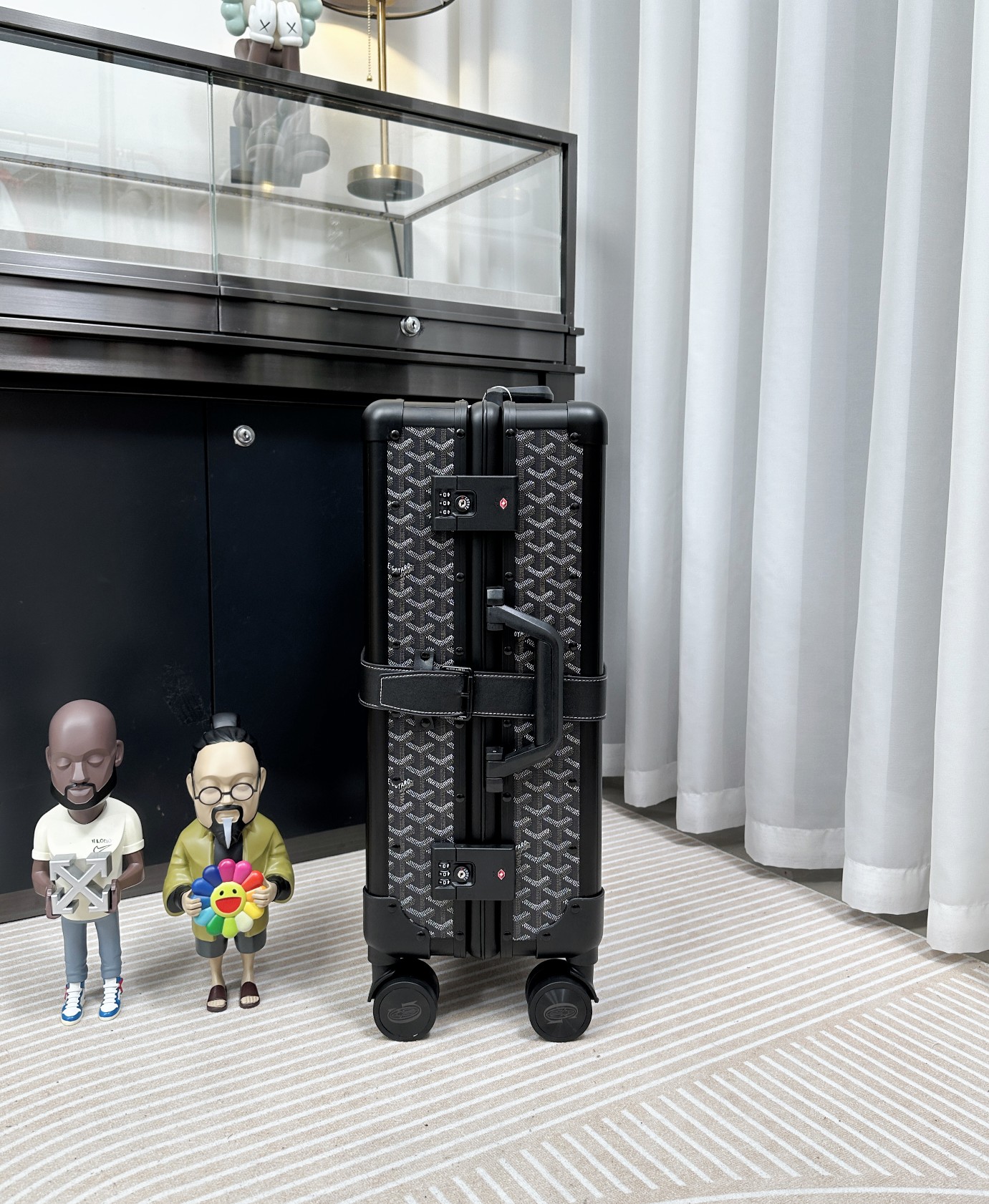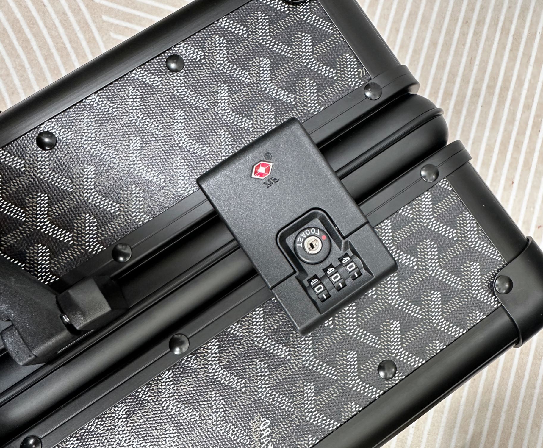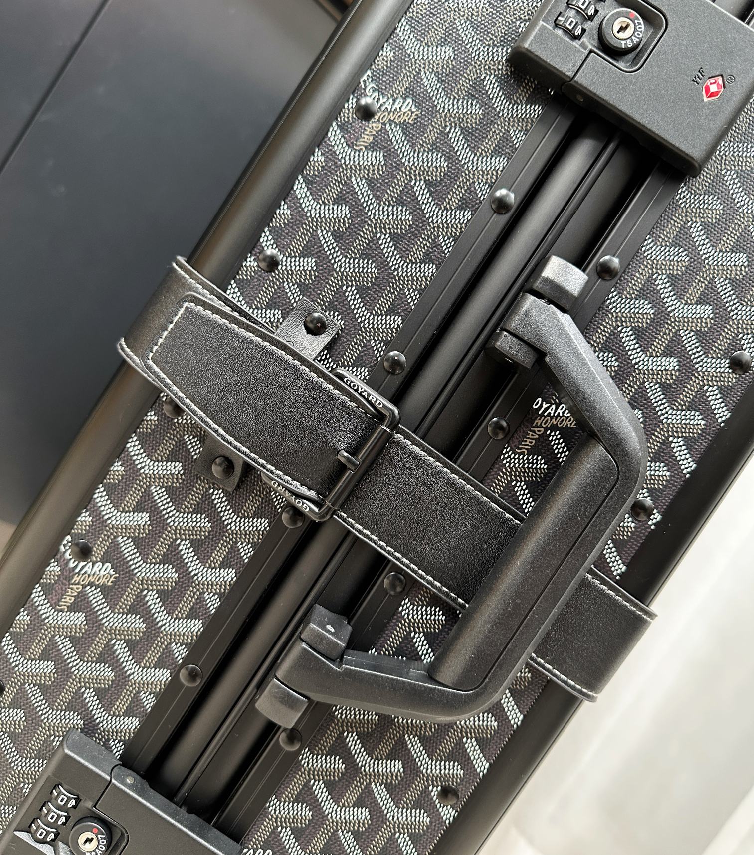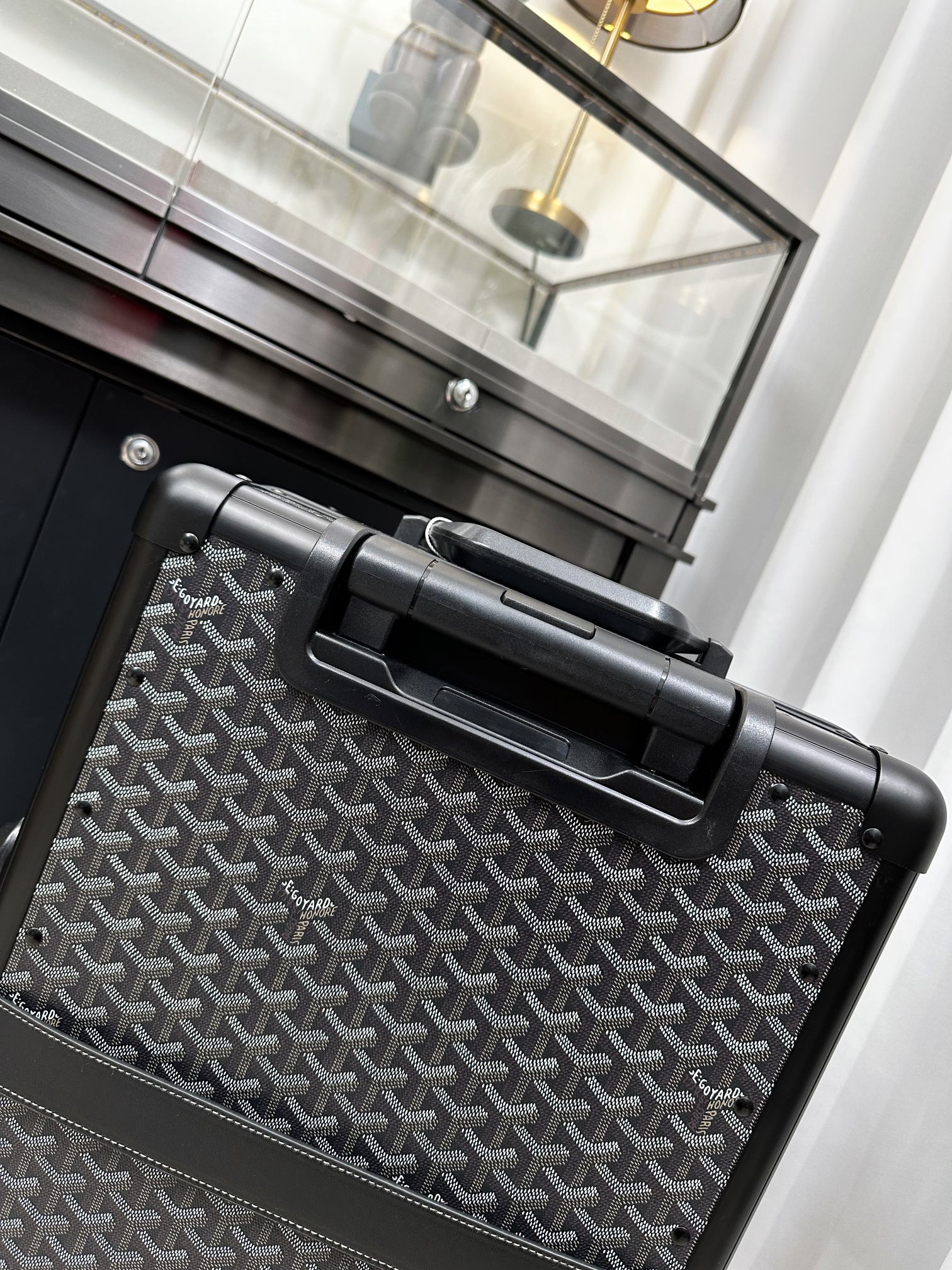 这款拉杆箱是AAAAA 1:1 质量 (非常棒). 使用了和原版一模一样的材料. 商标部分也保持了和GOYARD一样. 图片拍摄是实物拉杆箱拍摄, 您所收到的实物保证和我们图片一模一样.