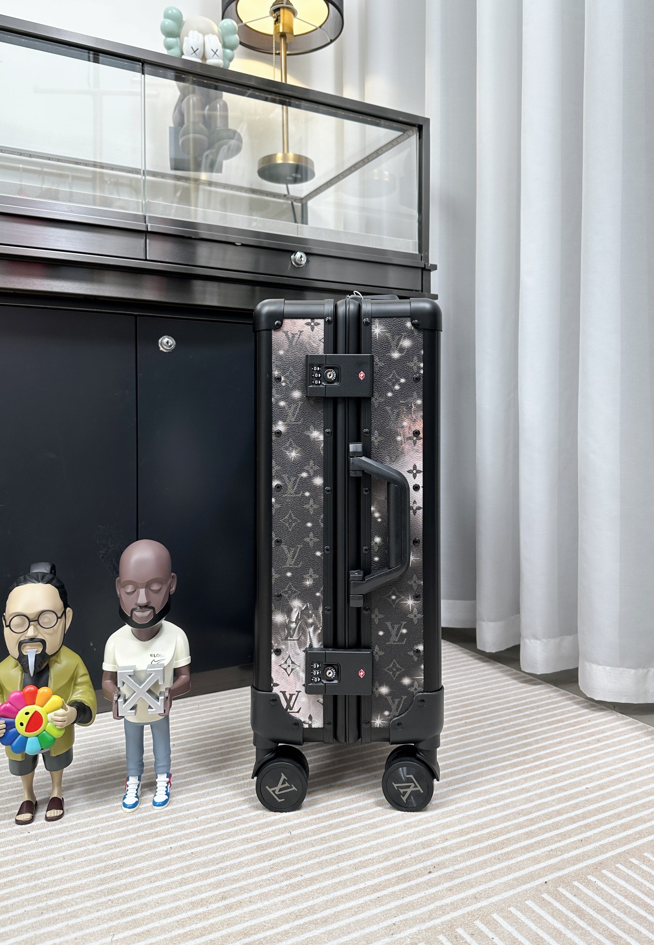 这款拉杆箱是AAAAA 1:1 质量 (非常棒). 使用了和原版一模一样的材料. 商标部分也保持了和路易威登/Louis Vuitton一样. 图片拍摄是实物拉杆箱拍摄, 您所收到的实物保证和我们图片一模一样.