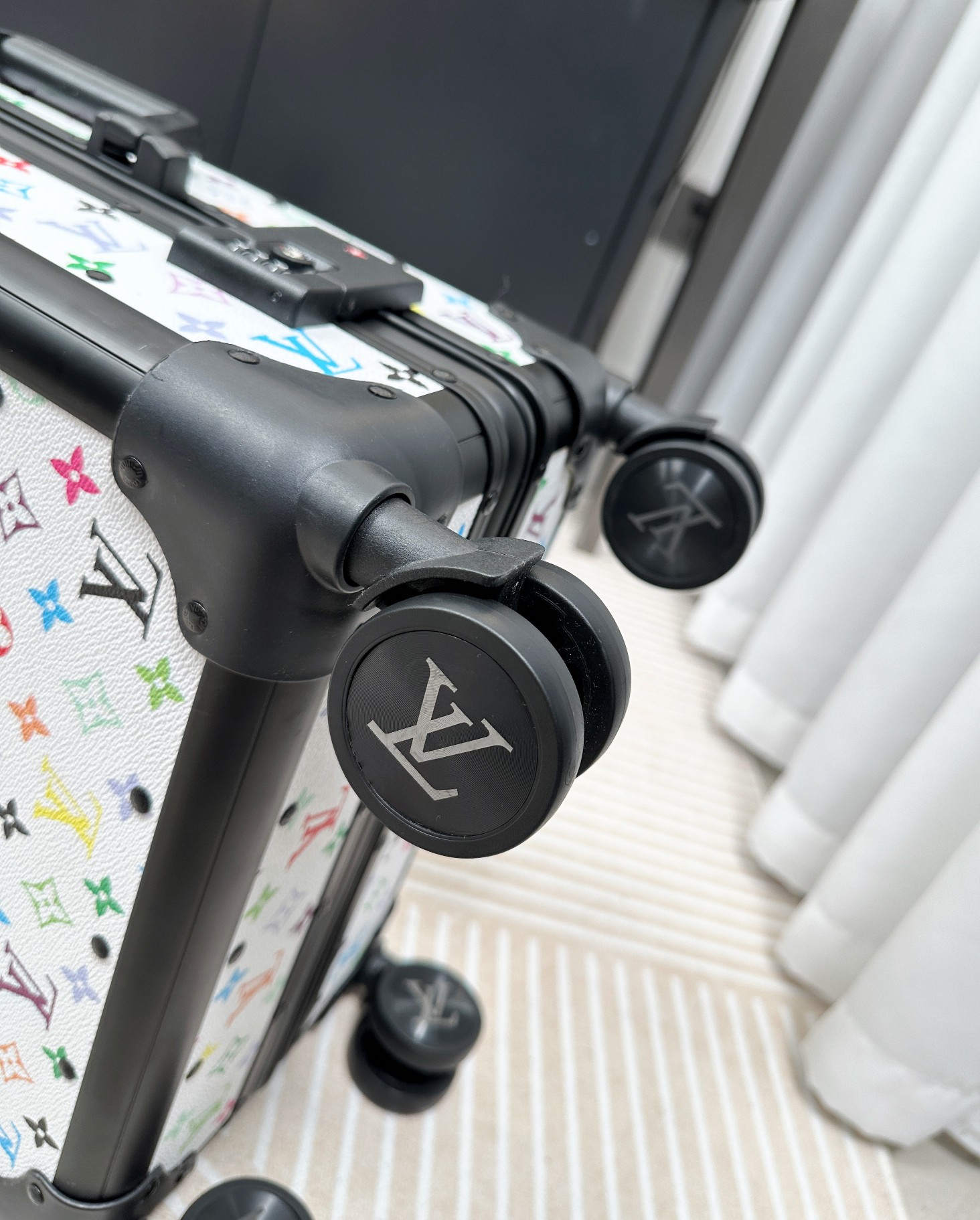 这款拉杆箱是AAAAA 1:1 质量 (非常棒). 使用了和原版一模一样的材料. 商标部分也保持了和路易威登/Louis Vuitton一样. 图片拍摄是实物拉杆箱拍摄, 您所收到的实物保证和我们图片一模一样.