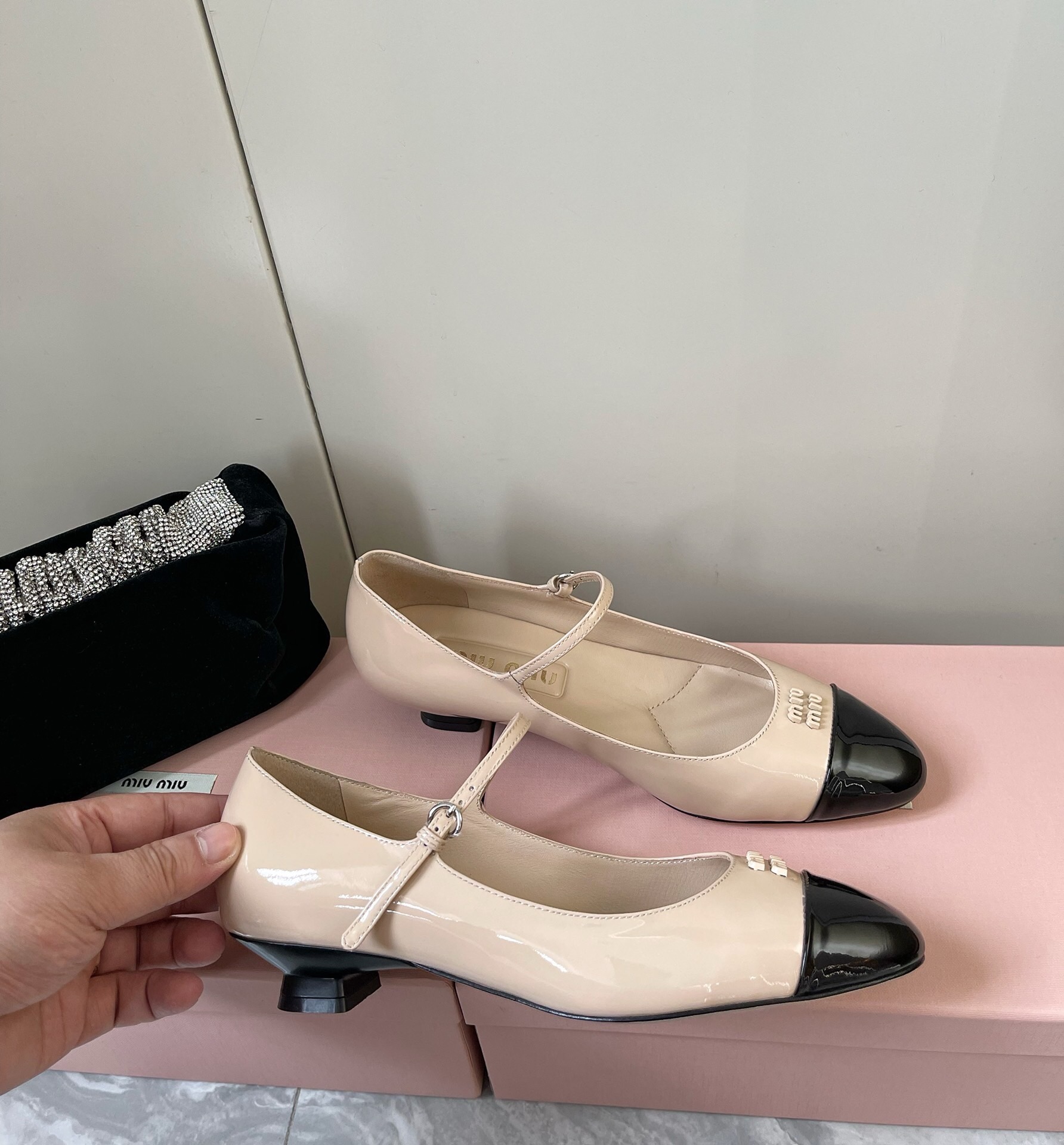 这款鞋子是AAAAA 1:1 质量 (非常棒). 使用了和原版一模一样的材料. 商标部分也保持了和缪缪/Miu Miu一样. 图片拍摄是实物鞋子拍摄, 您所收到的实物保证和我们图片一模一样.