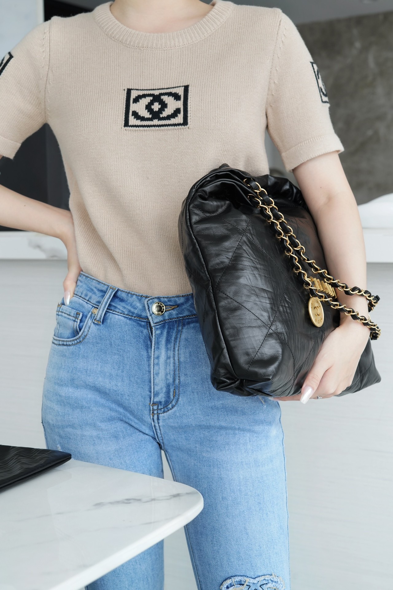 这款包包是AAAAA 1:1 质量 (非常棒). 使用了和原版一模一样的材料. 商标部分也保持了和香奈儿/Chanel一样. 图片拍摄是实物包包拍摄, 您所收到的实物保证和我们图片一模一样.