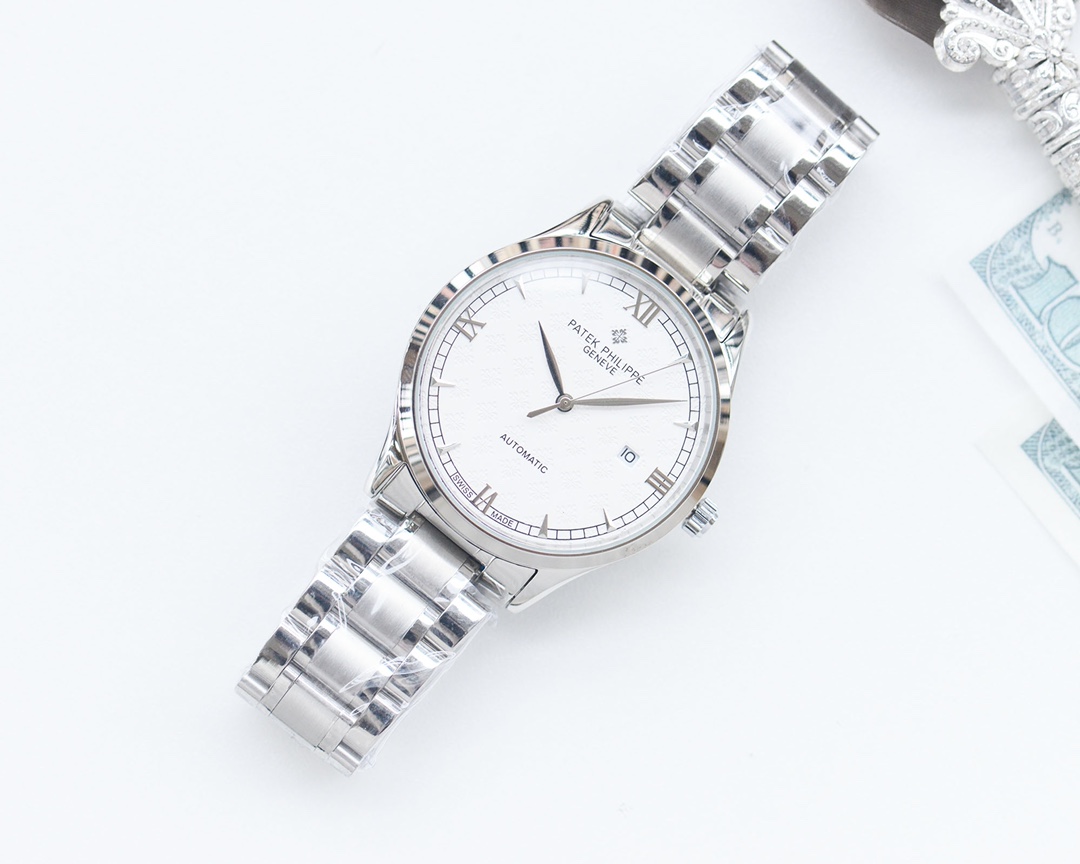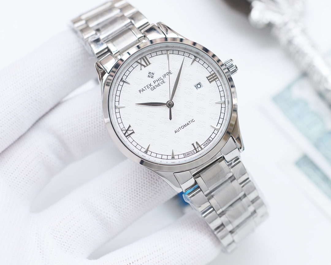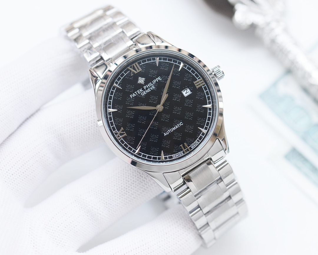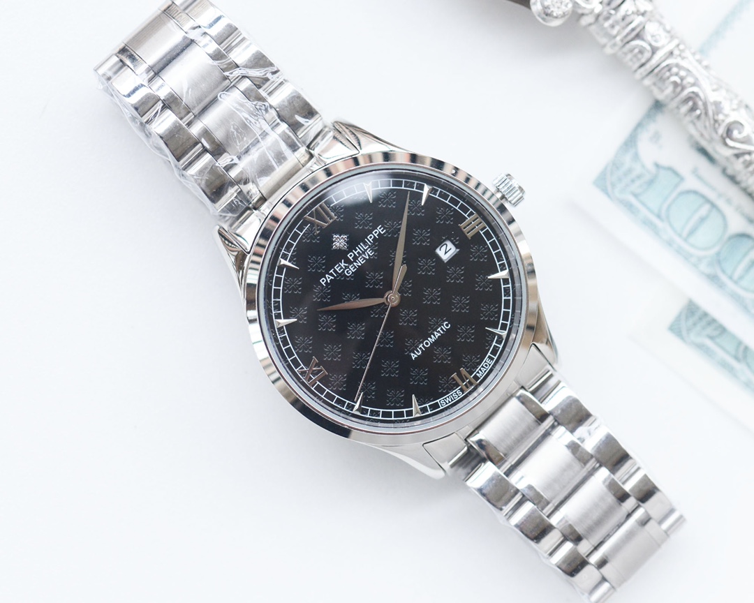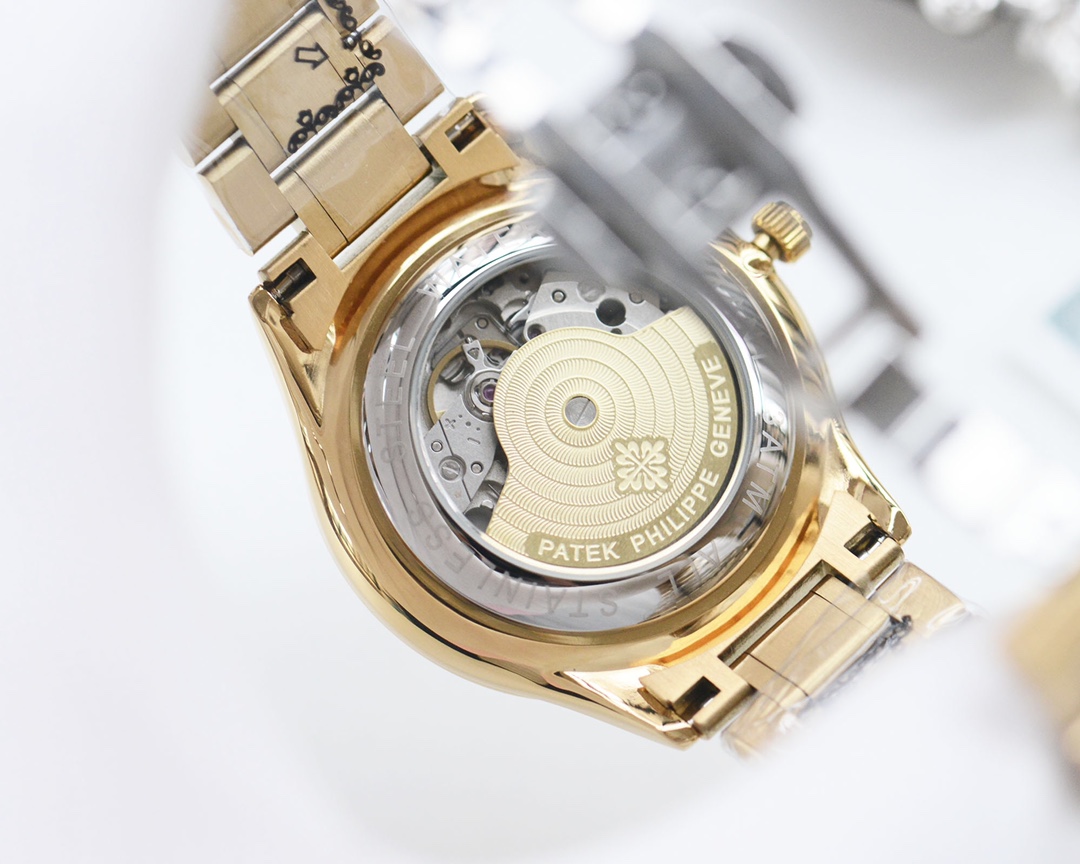 这款手表是AAAAA 1:1 质量 (非常棒). 使用了和原版一模一样的材料. 商标部分也保持了和百达翡丽/Patek Philippe一样. 图片拍摄是实物手表拍摄, 您所收到的实物保证和我们图片一模一样.