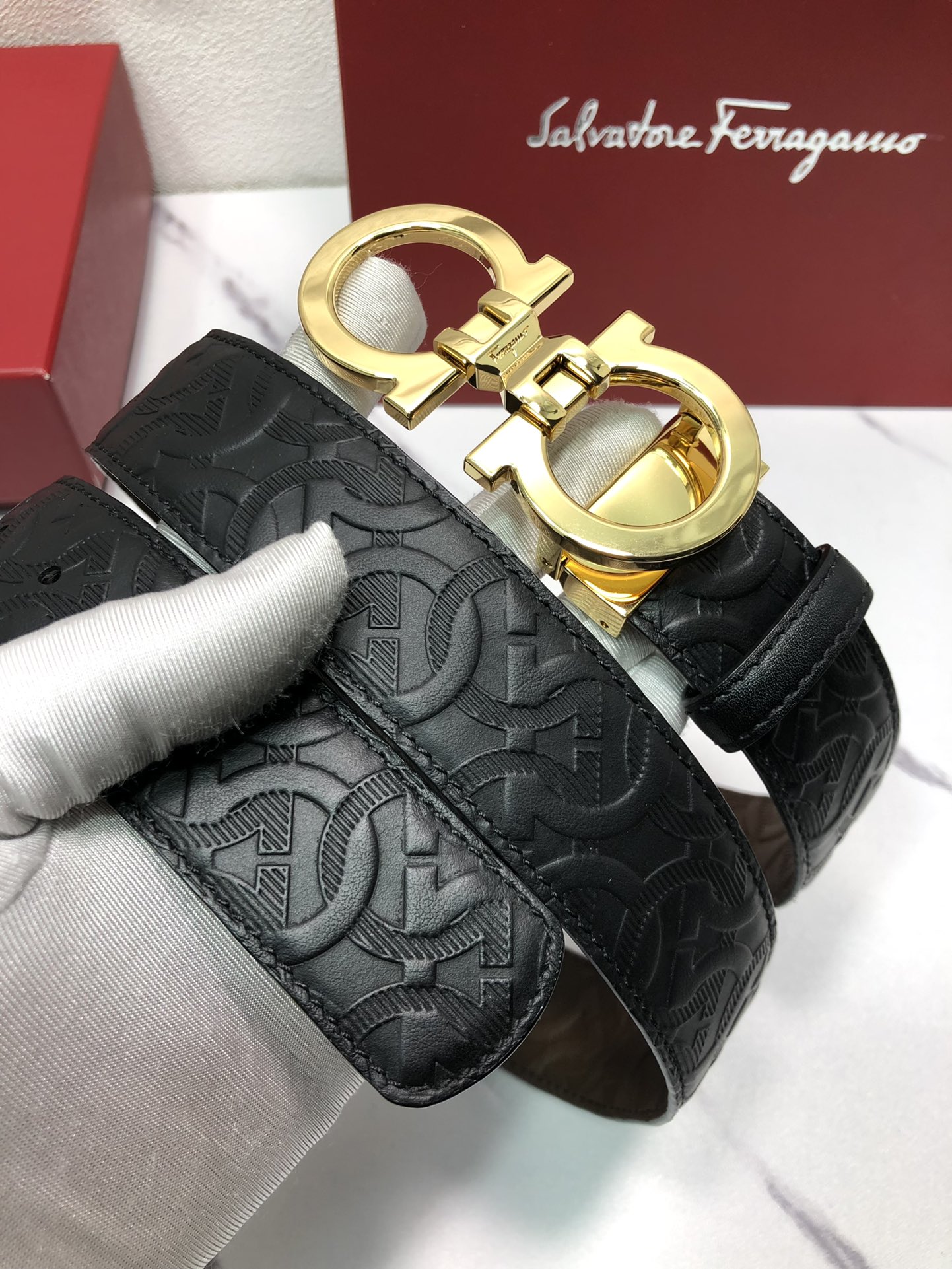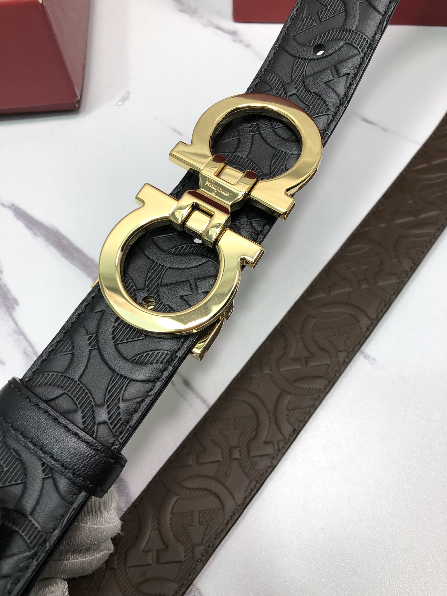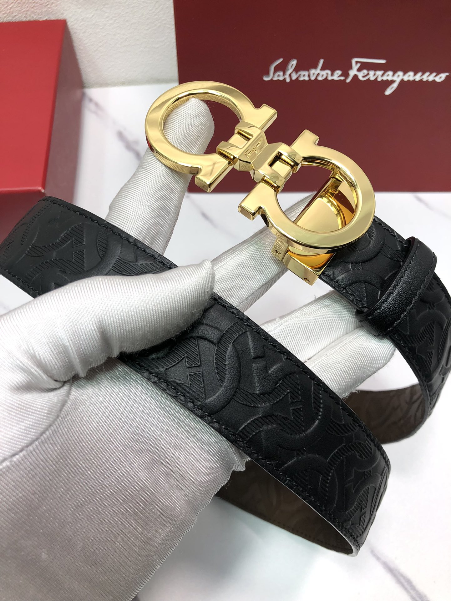 这款皮带是AAAAA 1:1 质量 (非常棒). 使用了和原版一模一样的材料. 商标部分也保持了和菲拉格慕/Salvatore Ferragamo一样. 图片拍摄是实物皮带拍摄, 您所收到的实物保证和我们图片一模一样.