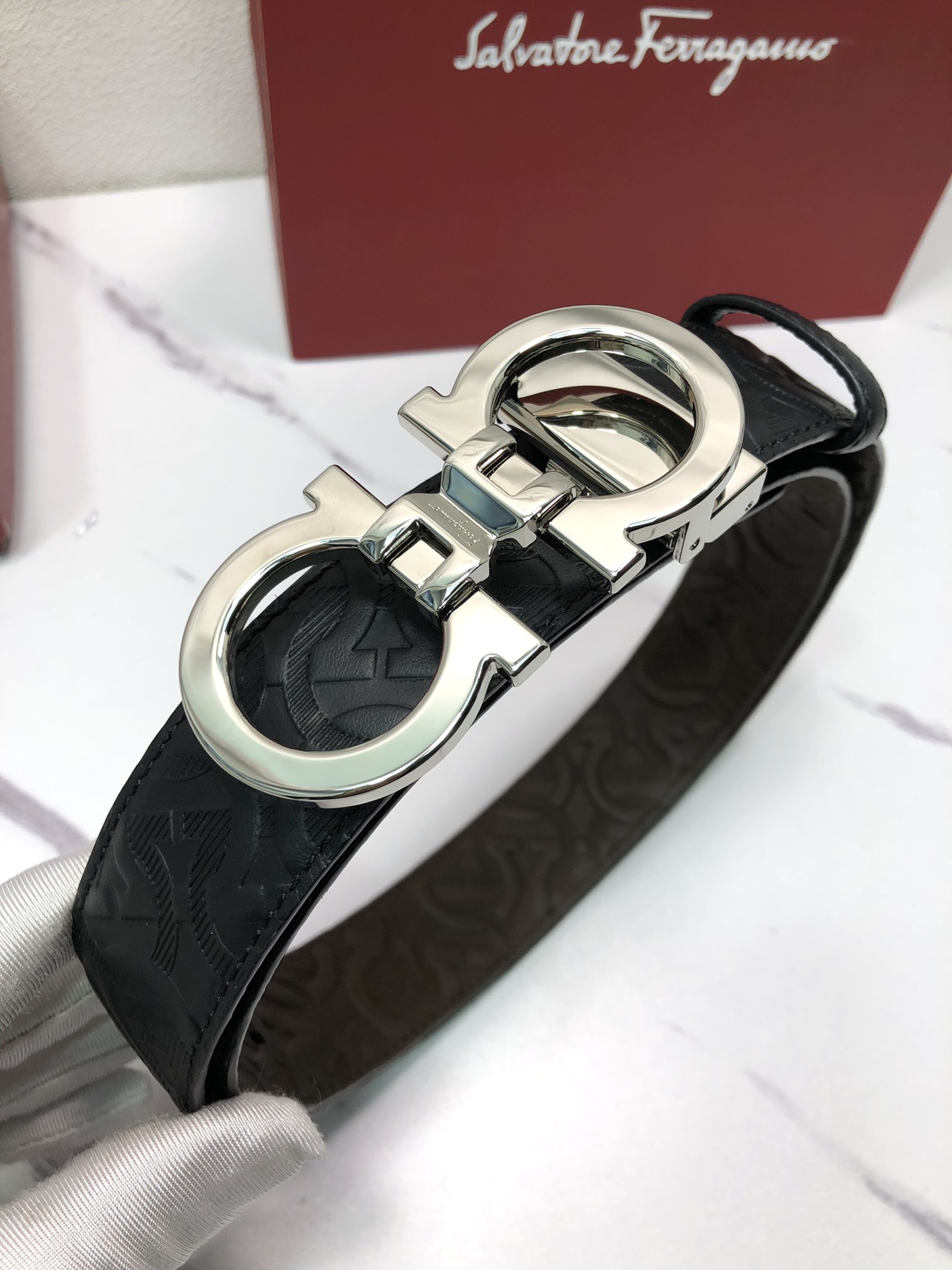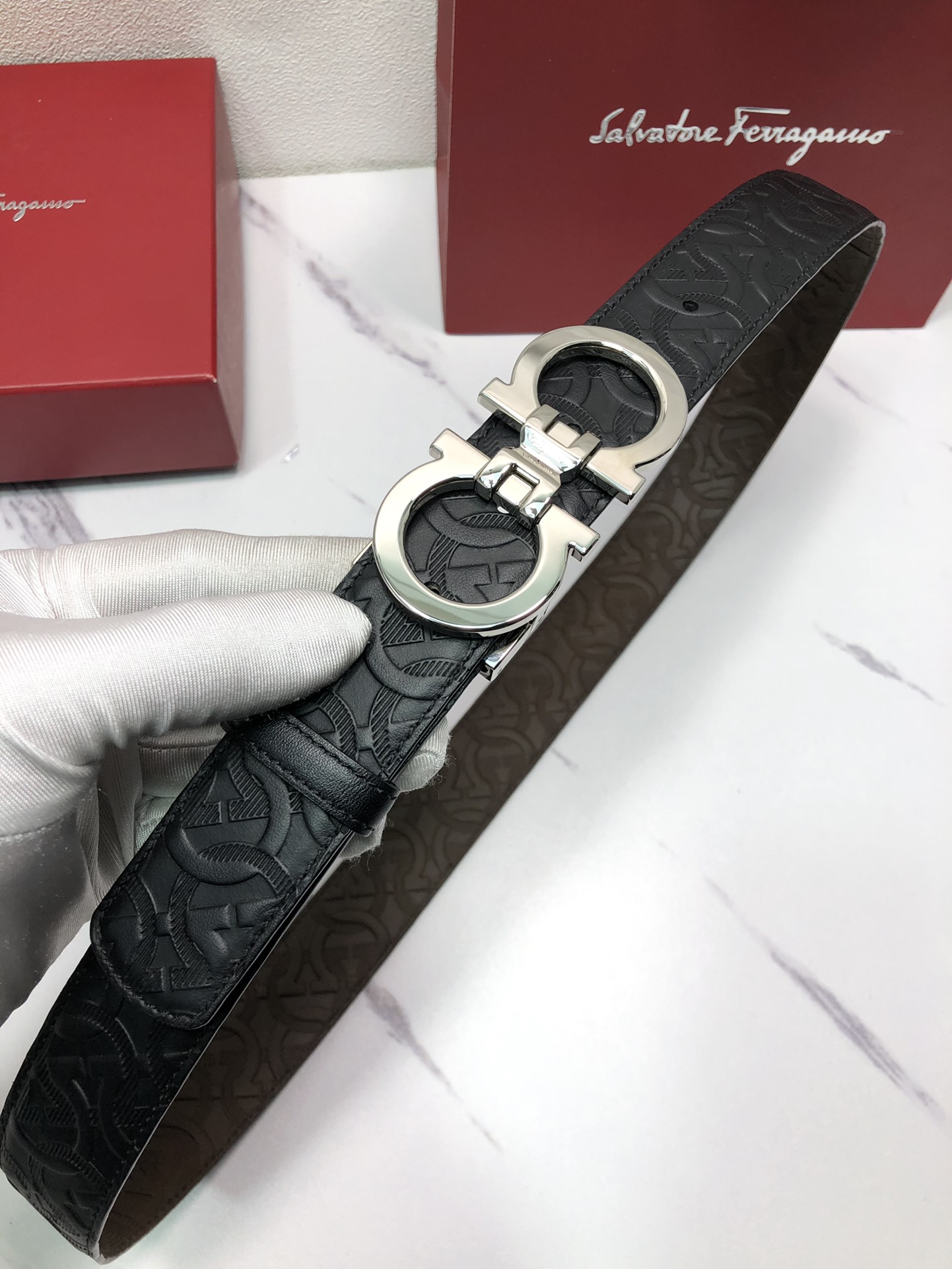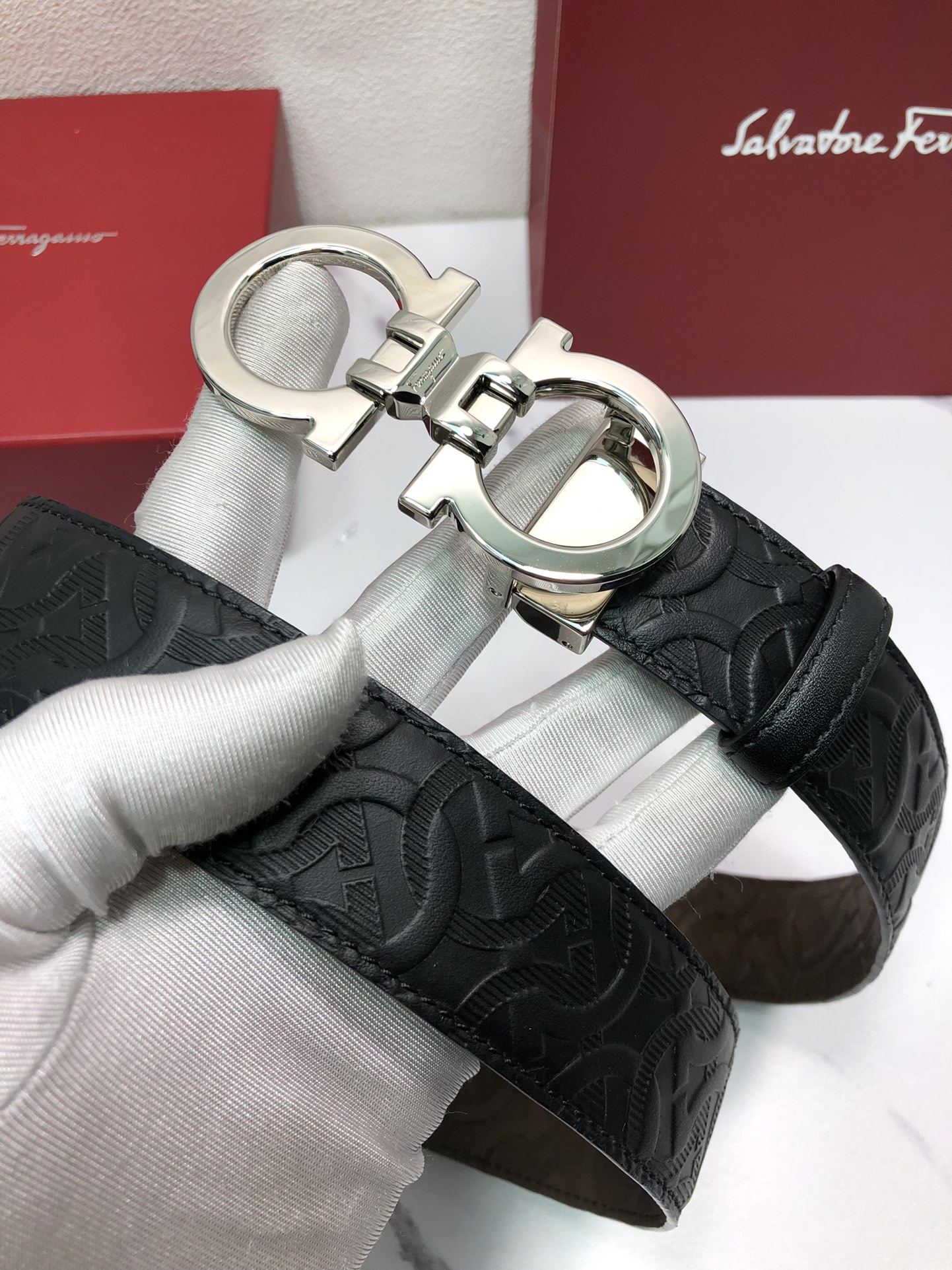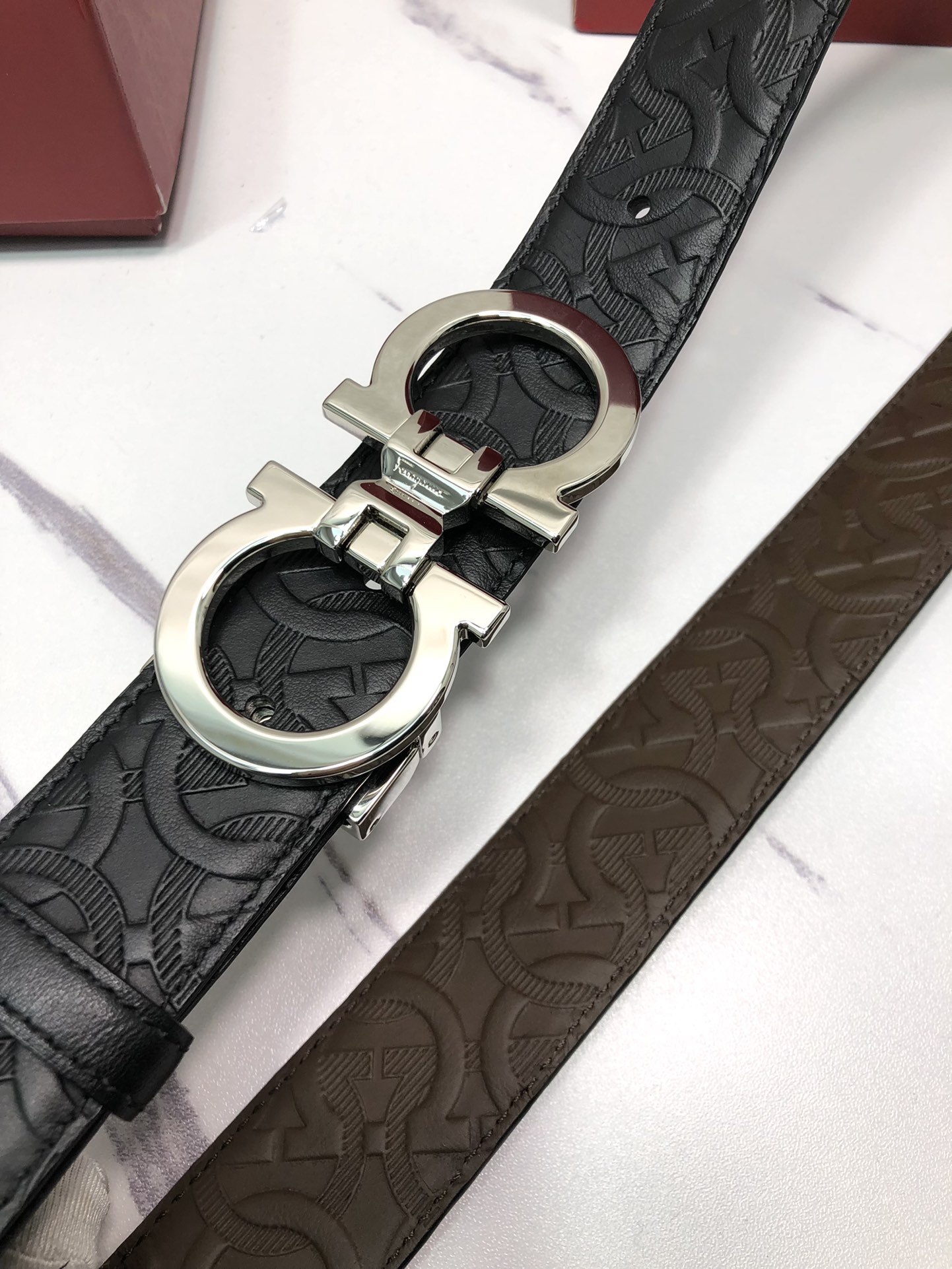 这款皮带是AAAAA 1:1 质量 (非常棒). 使用了和原版一模一样的材料. 商标部分也保持了和菲拉格慕/Salvatore Ferragamo一样. 图片拍摄是实物皮带拍摄, 您所收到的实物保证和我们图片一模一样.
