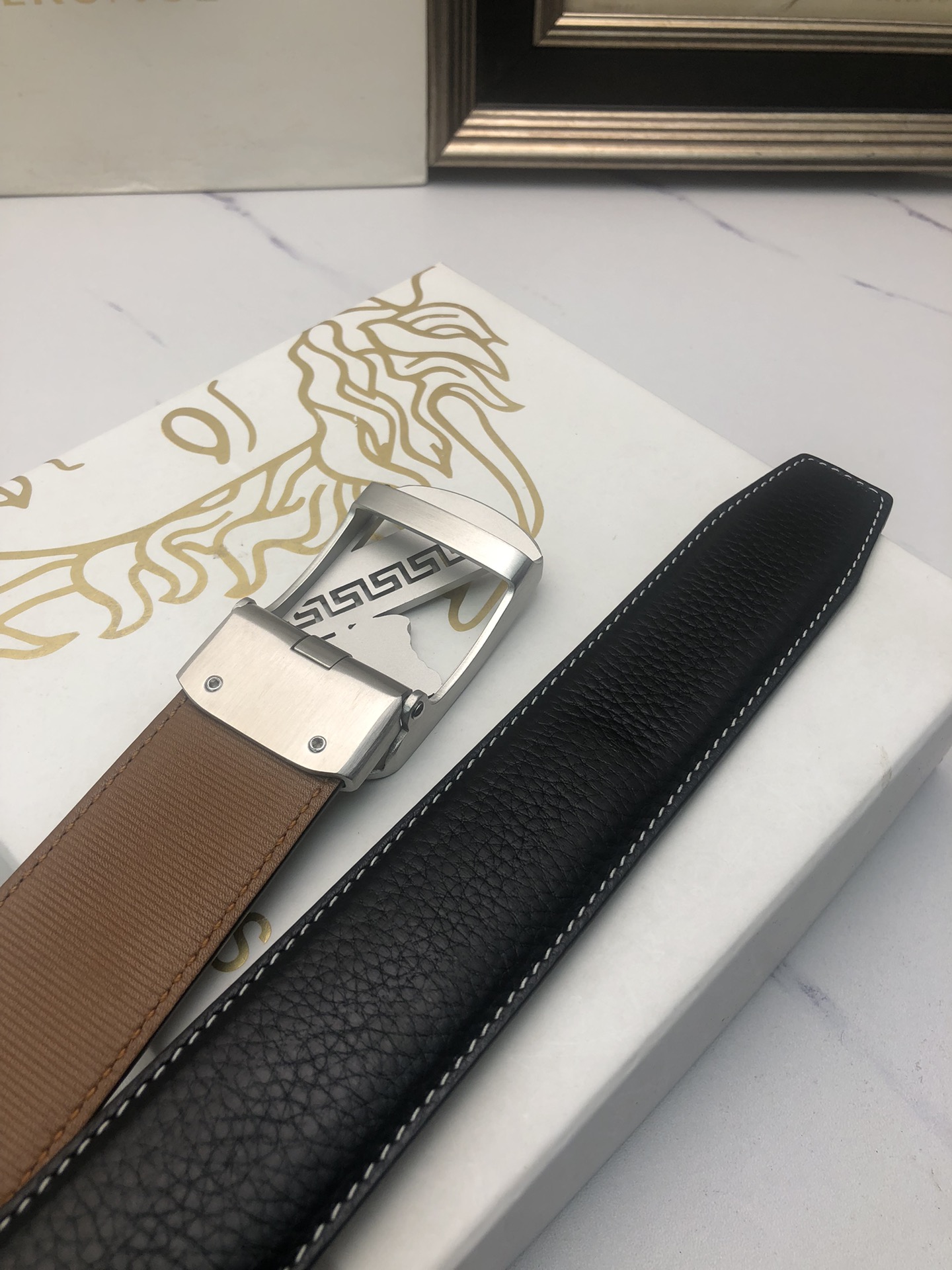 这款皮带是AAAAA 1:1 质量 (非常棒). 使用了和原版一模一样的材料. 商标部分也保持了和范思哲/Versace一样. 图片拍摄是实物皮带拍摄, 您所收到的实物保证和我们图片一模一样.