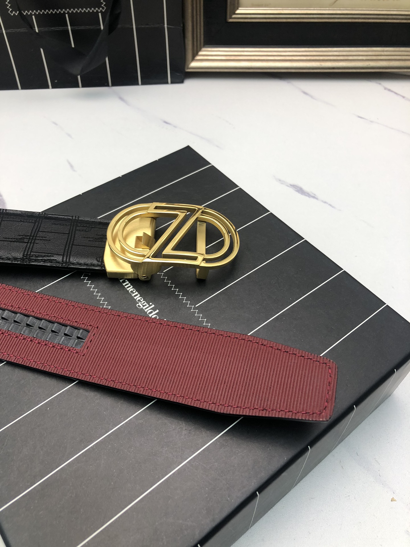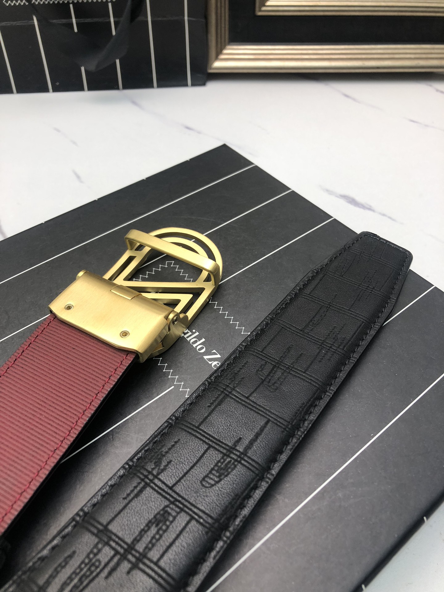 这款皮带是AAAAA 1:1 质量 (非常棒). 使用了和原版一模一样的材料. 商标部分也保持了和杰尼亚/Zegna一样. 图片拍摄是实物皮带拍摄, 您所收到的实物保证和我们图片一模一样.