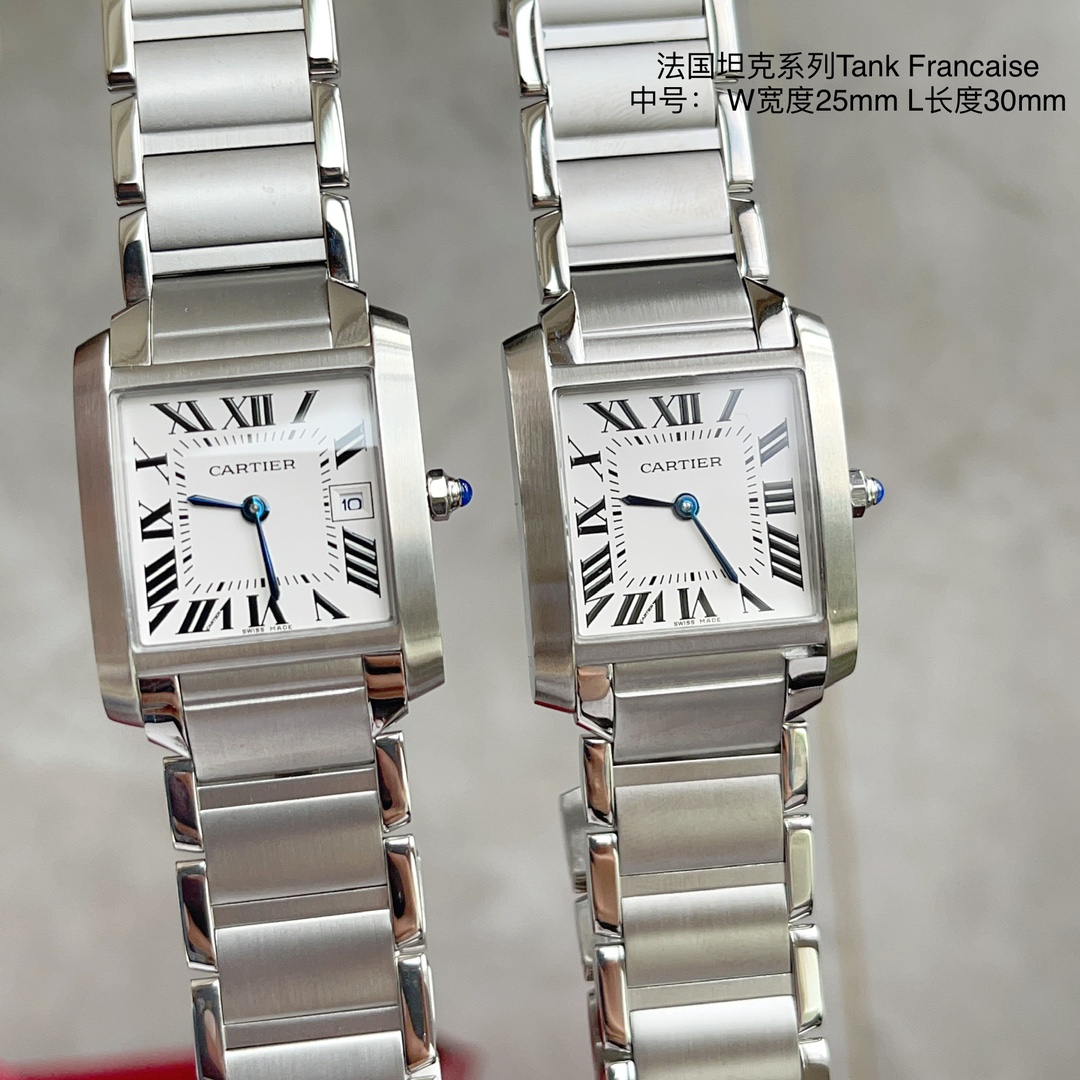这款手表是AAAAA 1:1 质量 (非常棒). 使用了和原版一模一样的材料. 商标部分也保持了和卡地亚/Cartier一样. 图片拍摄是实物手表拍摄, 您所收到的实物保证和我们图片一模一样.