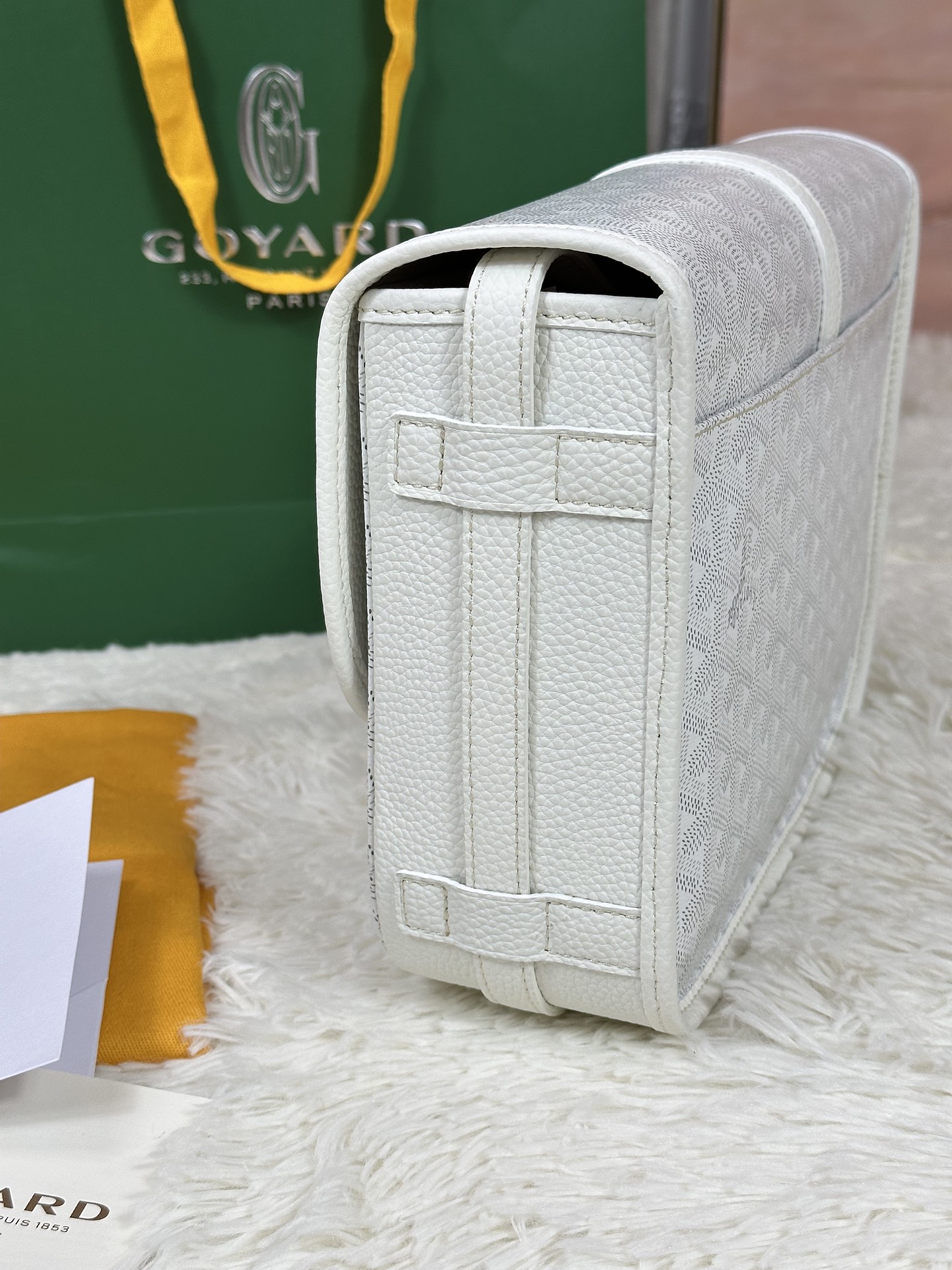 这款包包是AAAAA 1:1 质量 (非常棒). 使用了和原版一模一样的材料. 商标部分也保持了和GOYARD一样. 图片拍摄是实物包包拍摄, 您所收到的实物保证和我们图片一模一样.