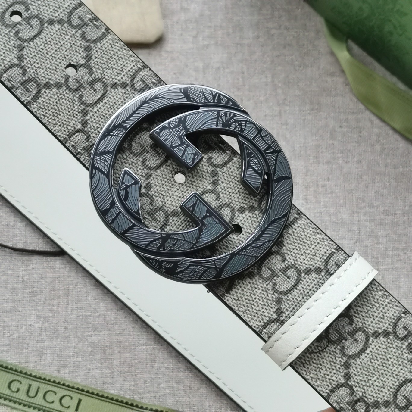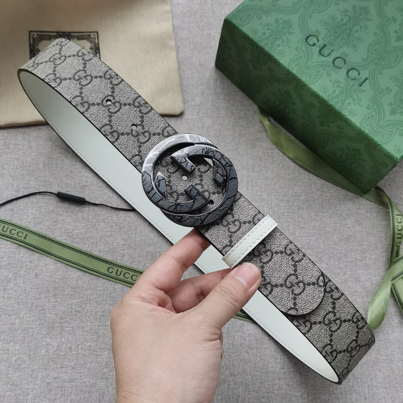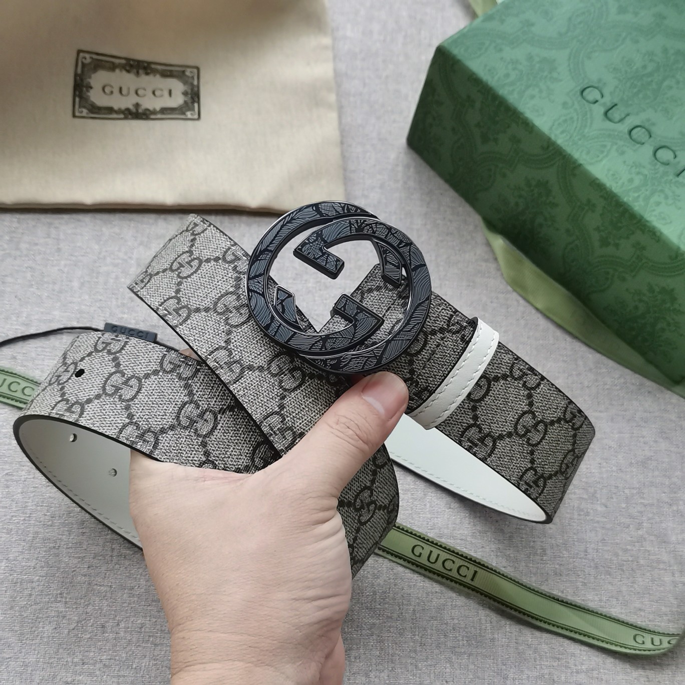 这款皮带是AAAAA 1:1 质量 (非常棒). 使用了和原版一模一样的材料. 商标部分也保持了和古奇/Gucci一样. 图片拍摄是实物皮带拍摄, 您所收到的实物保证和我们图片一模一样.