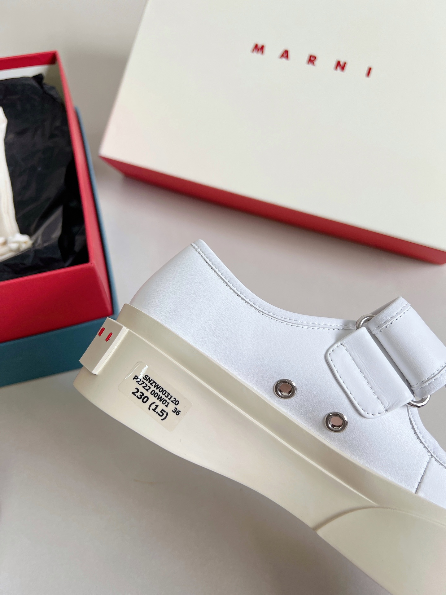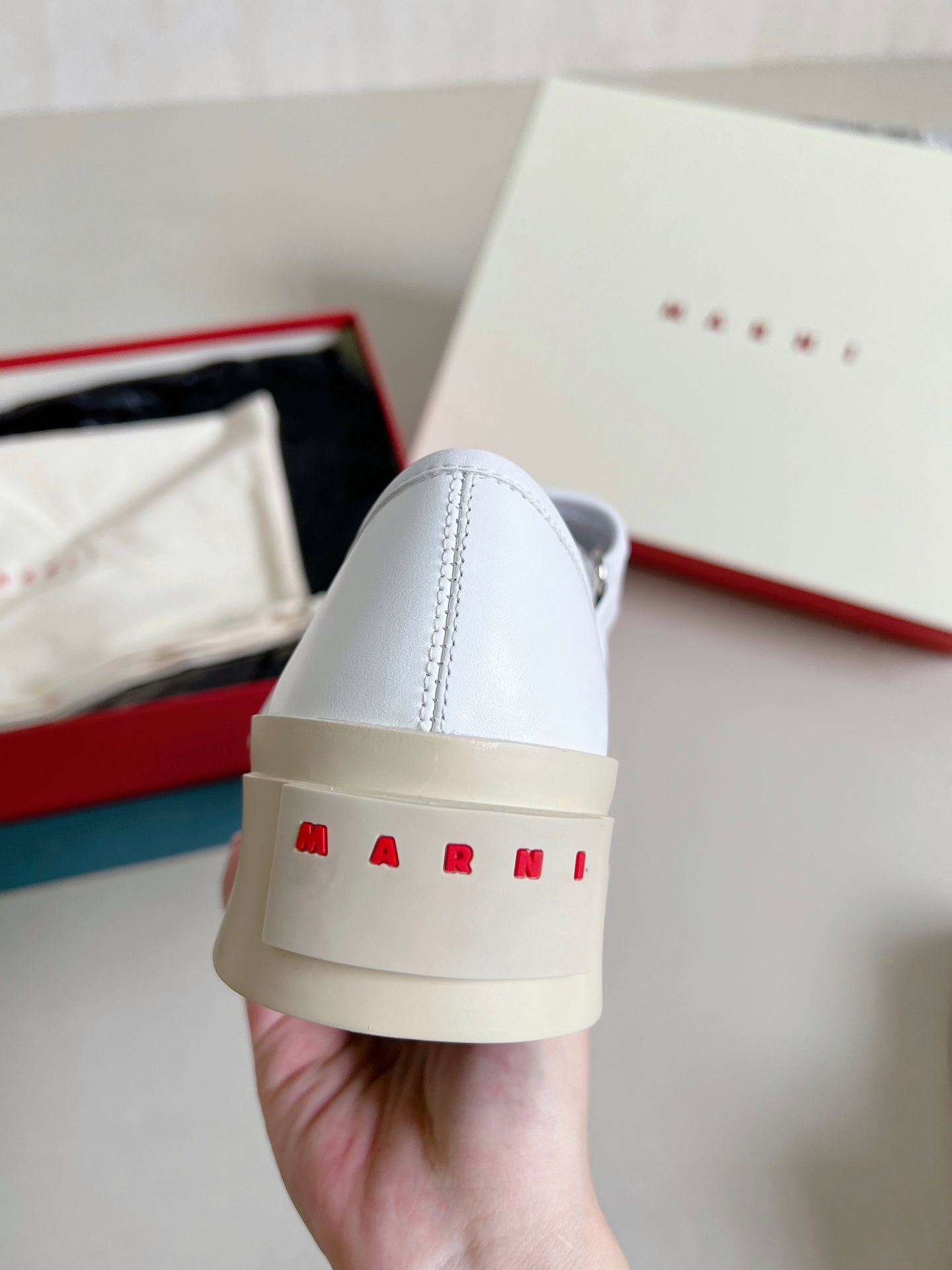 这款鞋子是AAAAA 1:1 质量 (非常棒). 使用了和原版一模一样的材料. 商标部分也保持了和马尔尼/Marni一样. 图片拍摄是实物鞋子拍摄, 您所收到的实物保证和我们图片一模一样.