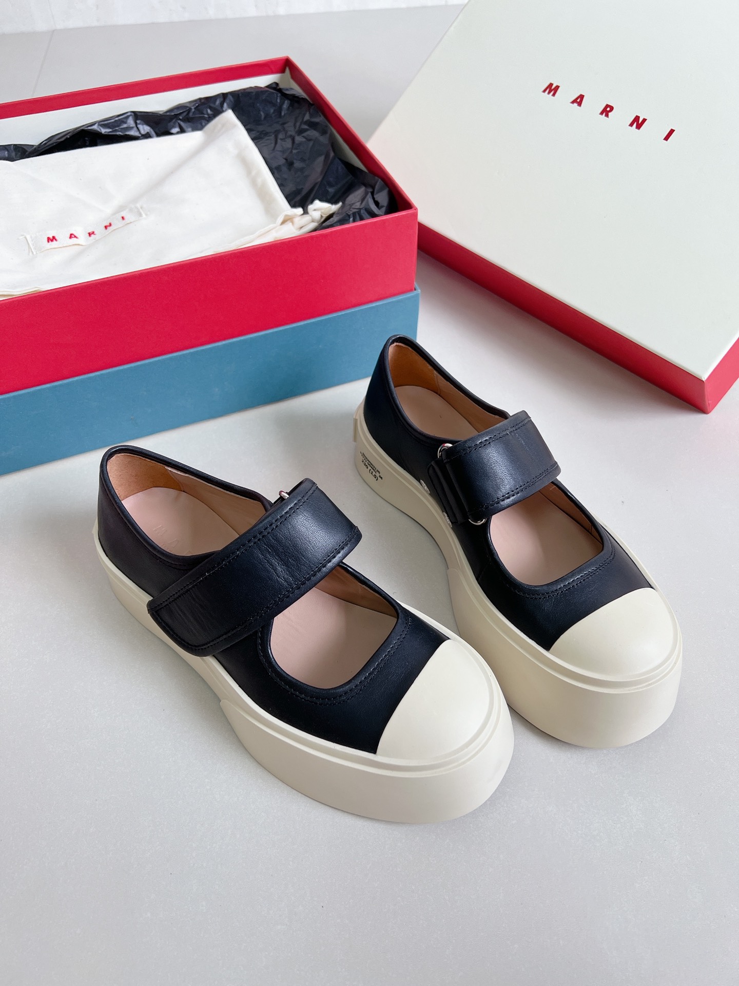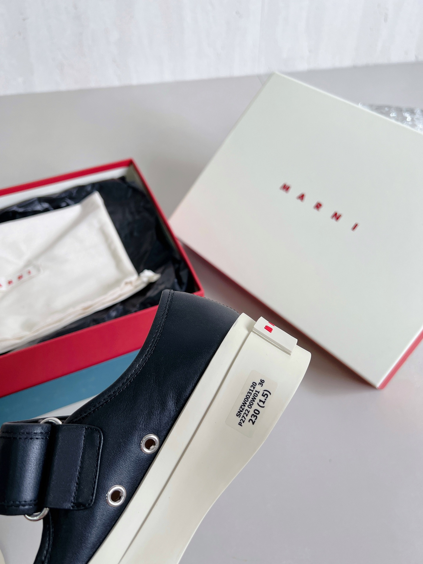 这款鞋子是AAAAA 1:1 质量 (非常棒). 使用了和原版一模一样的材料. 商标部分也保持了和马尔尼/Marni一样. 图片拍摄是实物鞋子拍摄, 您所收到的实物保证和我们图片一模一样.