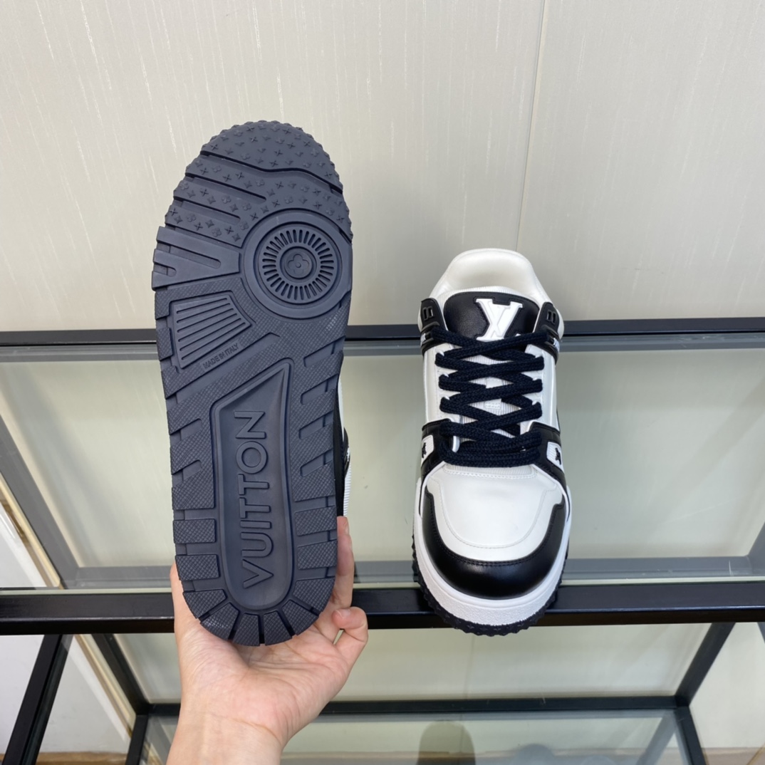这款鞋子是AAAAA 1:1 质量 (非常棒). 使用了和原版一模一样的材料. 商标部分也保持了和路易威登/Louis Vuitton一样. 图片拍摄是实物鞋子拍摄, 您所收到的实物保证和我们图片一模一样.
