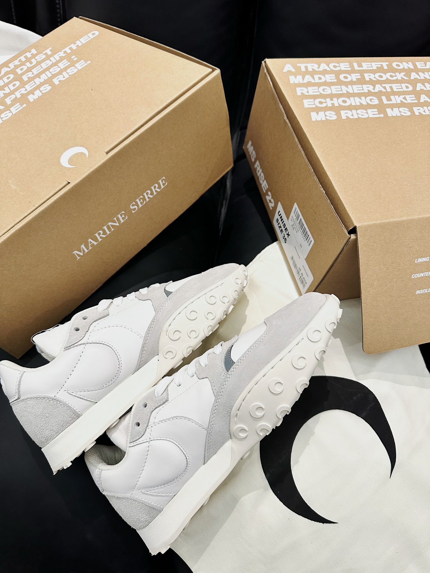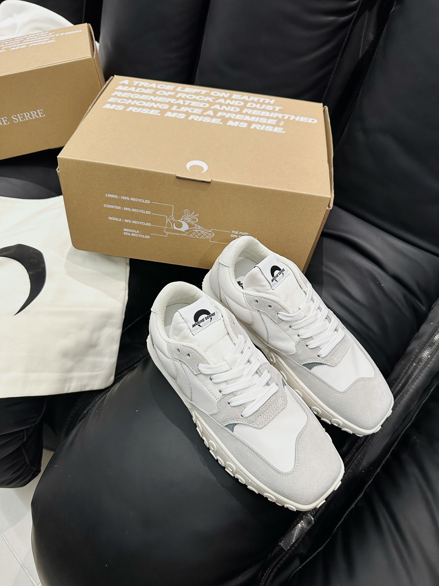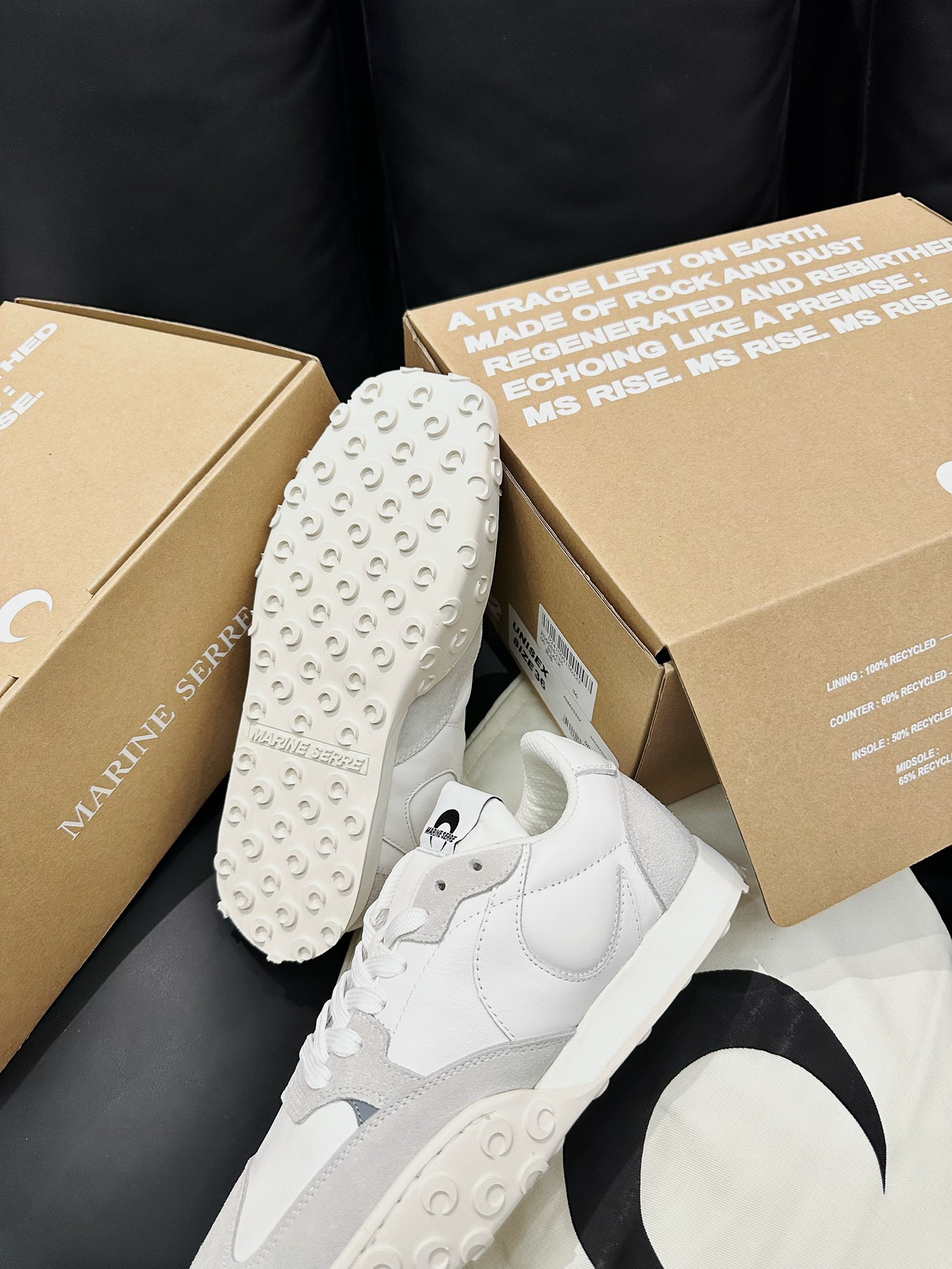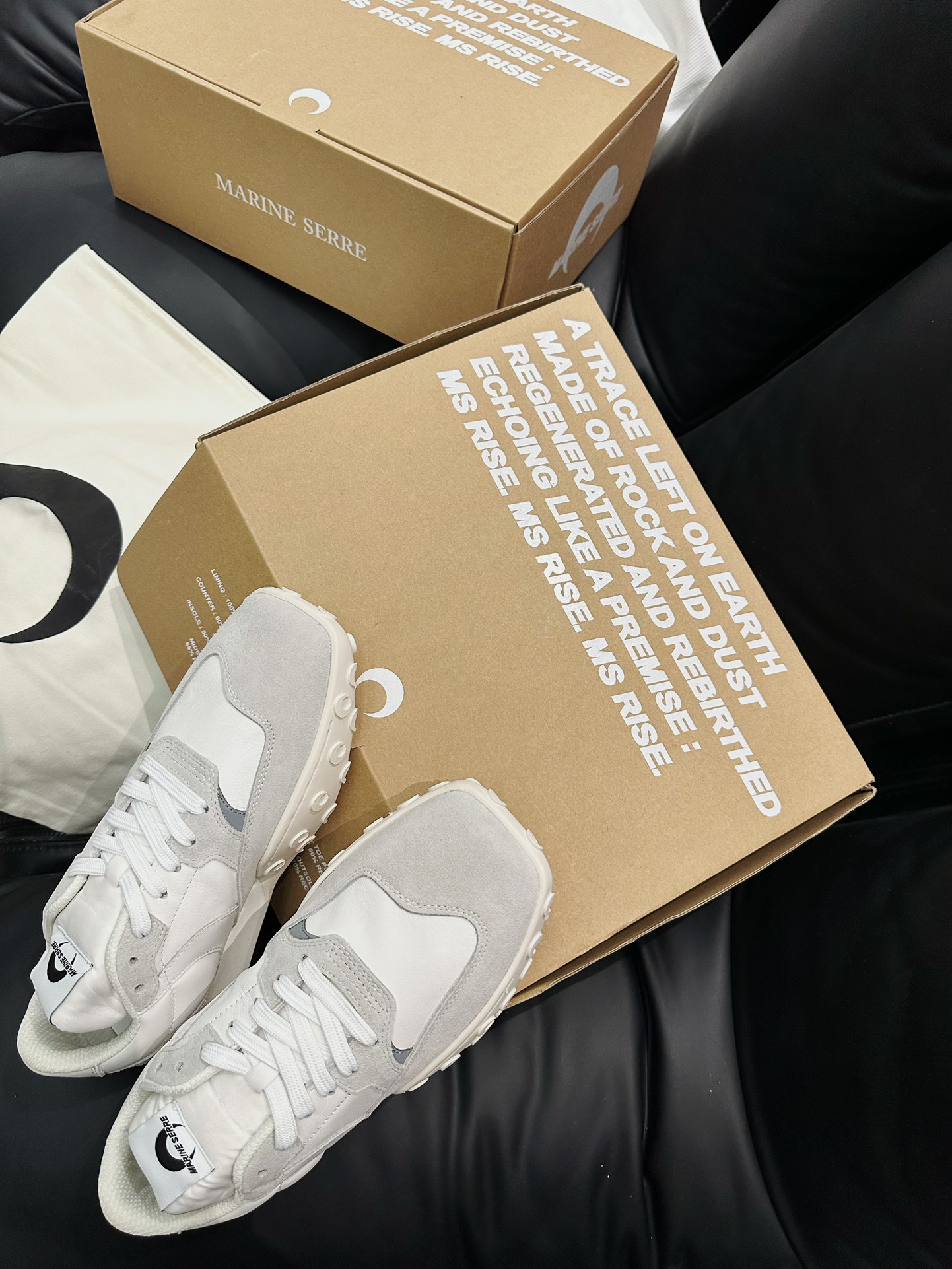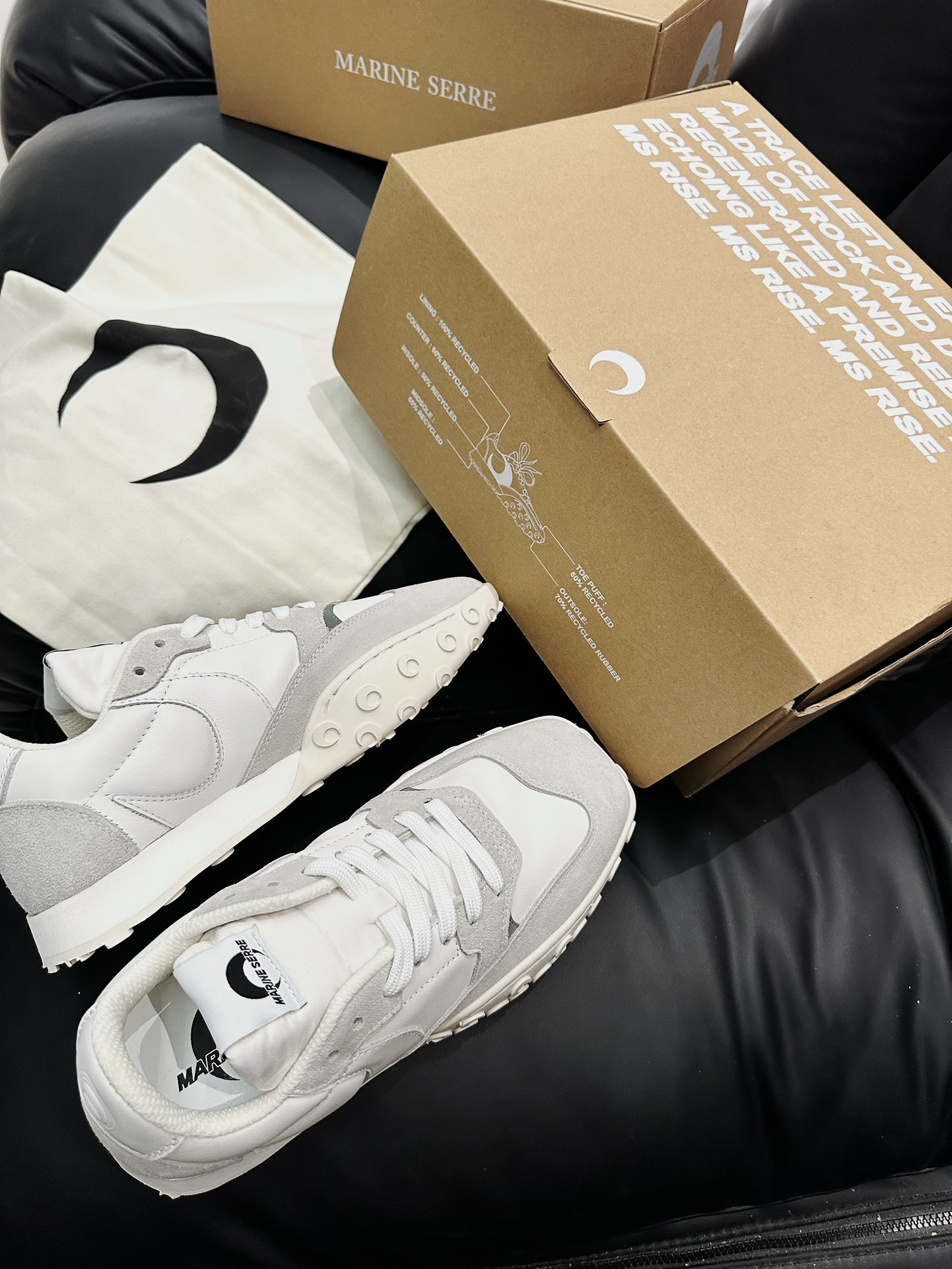 这款鞋子是AAAAA 1:1 质量 (非常棒). 使用了和原版一模一样的材料. 商标部分也保持了和Marine Serre一样. 图片拍摄是实物鞋子拍摄, 您所收到的实物保证和我们图片一模一样.