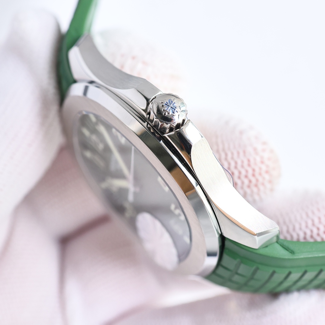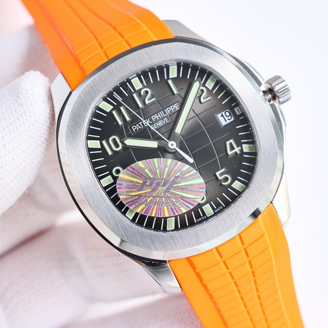 这款手表是AAAAA 1:1 质量 (非常棒). 使用了和原版一模一样的材料. 商标部分也保持了和百达翡丽/Patek Philippe一样. 图片拍摄是实物手表拍摄, 您所收到的实物保证和我们图片一模一样.