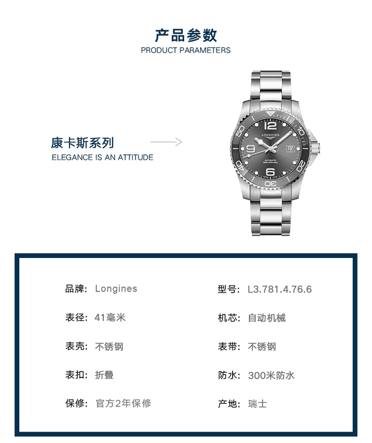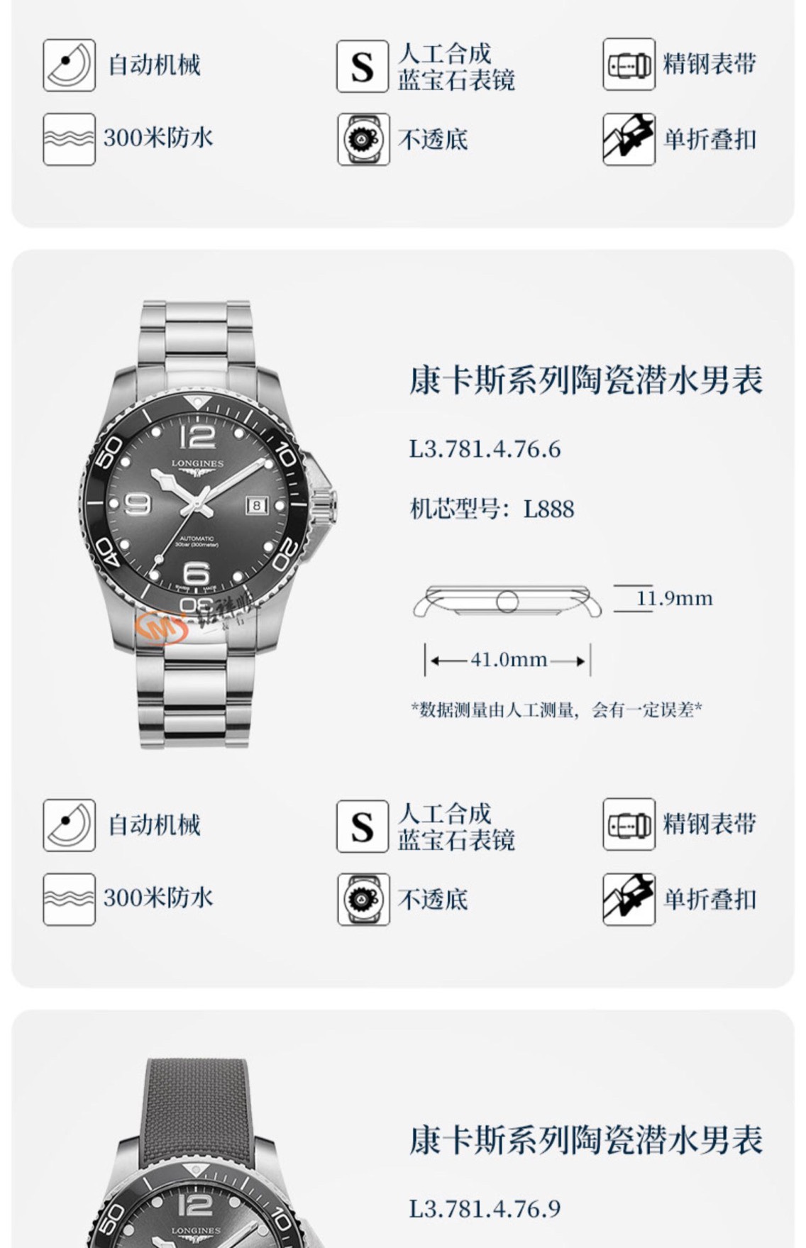这款手表是AAAAA 1:1 质量 (非常棒). 使用了和原版一模一样的材料. 商标部分也保持了和浪琴/Longines一样. 图片拍摄是实物手表拍摄, 您所收到的实物保证和我们图片一模一样.