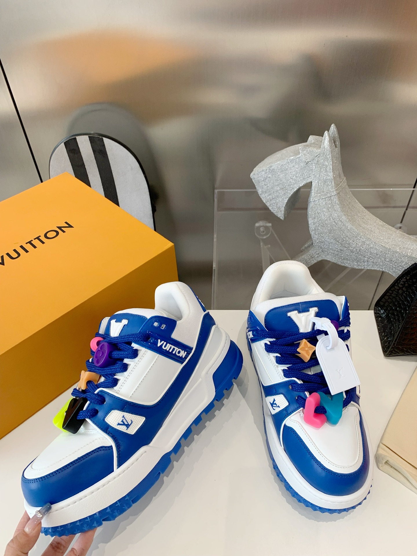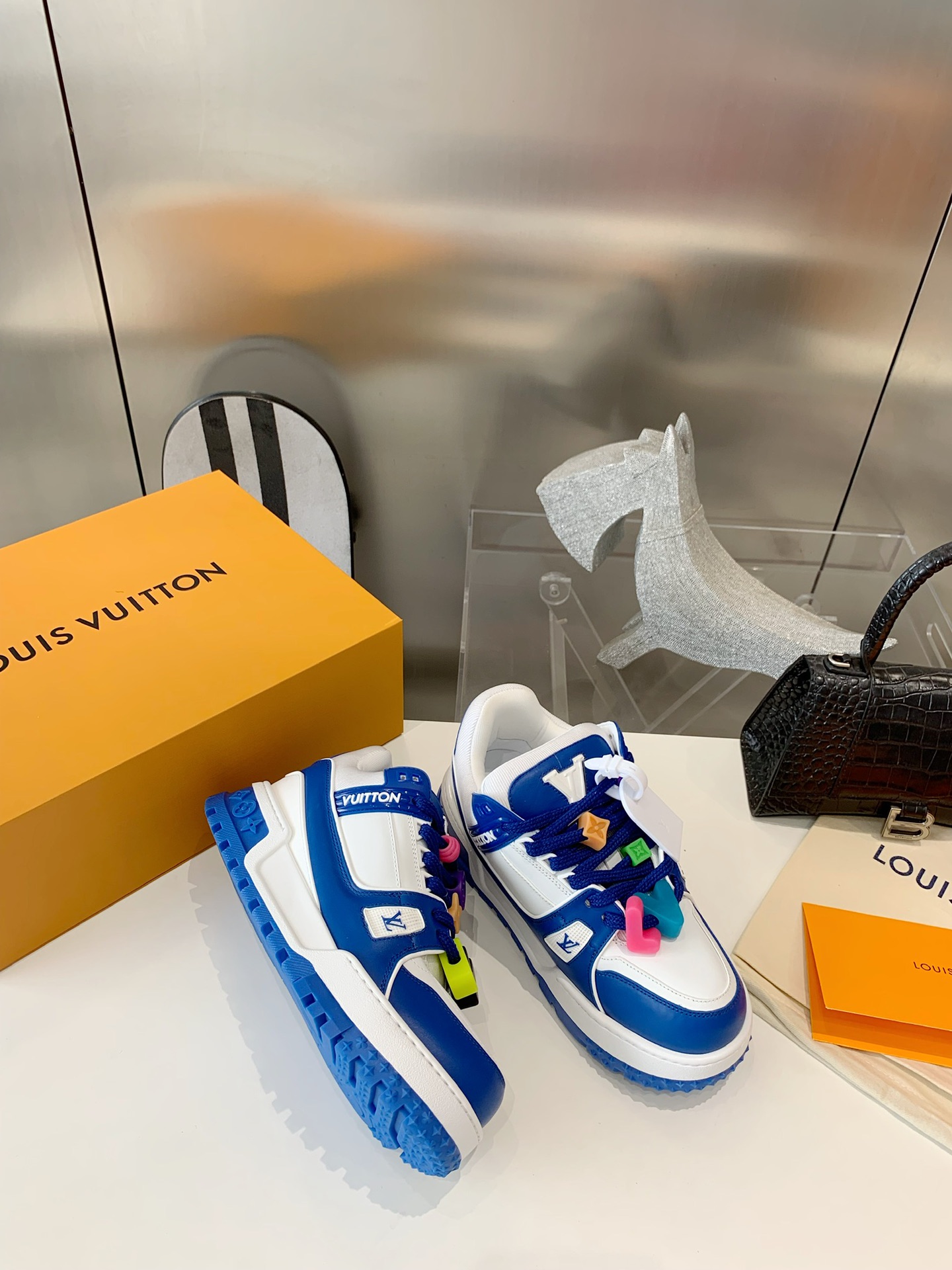 这款鞋子是AAAAA 1:1 质量 (非常棒). 使用了和原版一模一样的材料. 商标部分也保持了和路易威登/Louis Vuitton一样. 图片拍摄是实物鞋子拍摄, 您所收到的实物保证和我们图片一模一样.