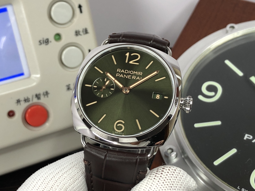 这款手表是AAAAA 1:1 质量 (非常棒). 使用了和原版一模一样的材料. 商标部分也保持了和沛纳海/Panerai一样. 图片拍摄是实物手表拍摄, 您所收到的实物保证和我们图片一模一样.