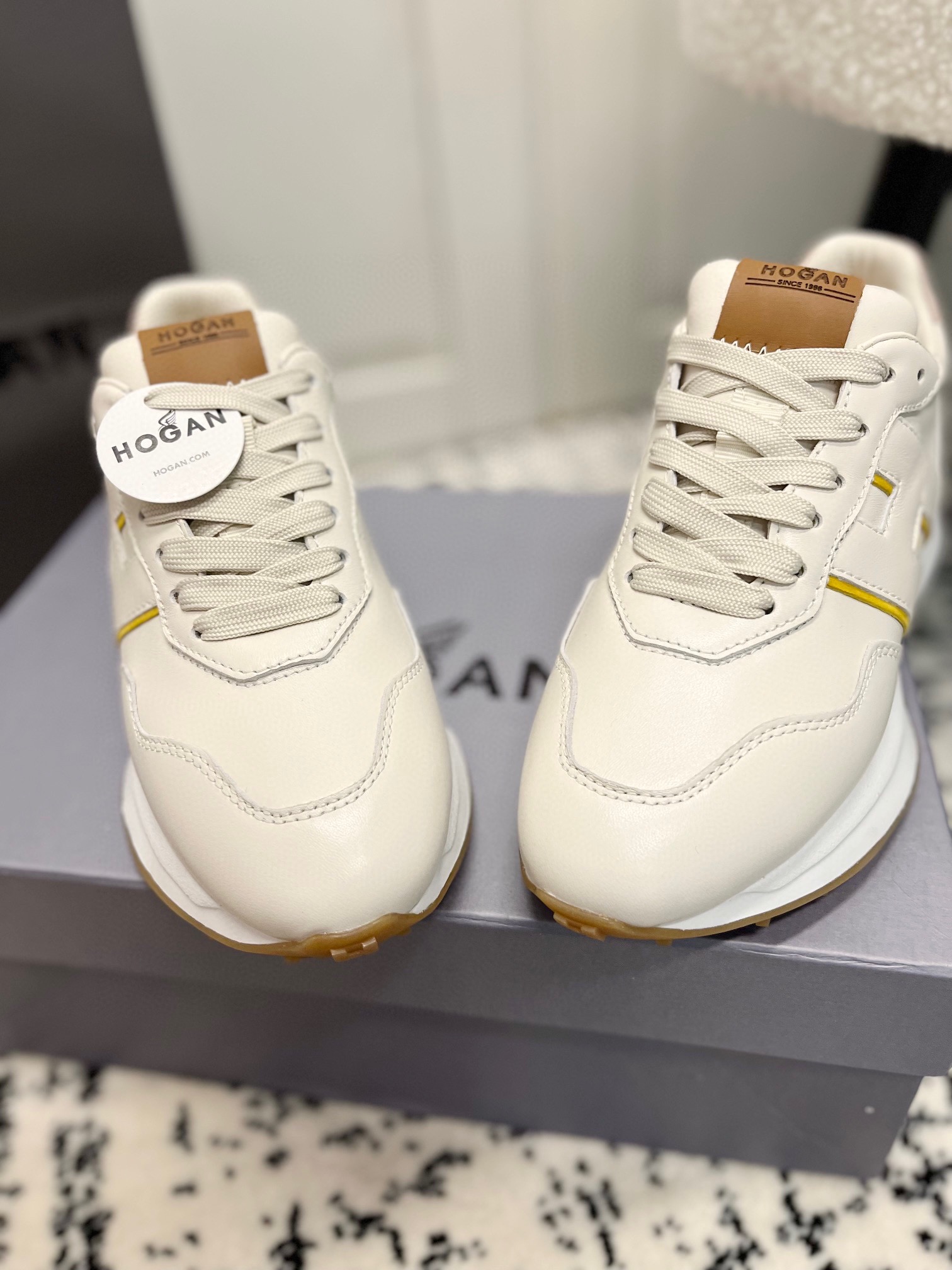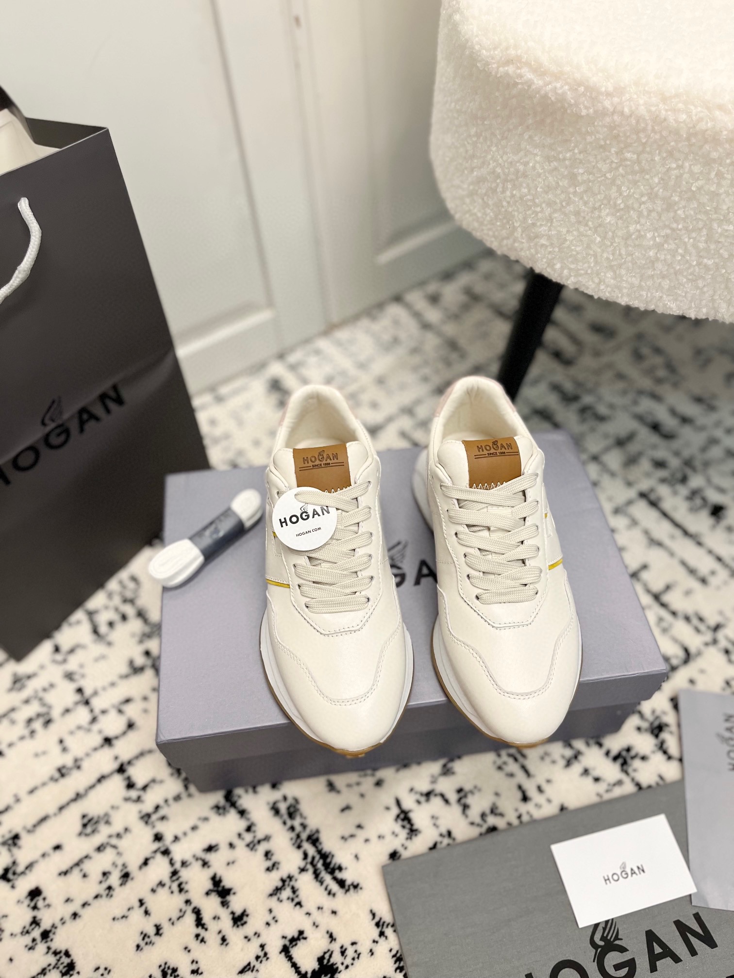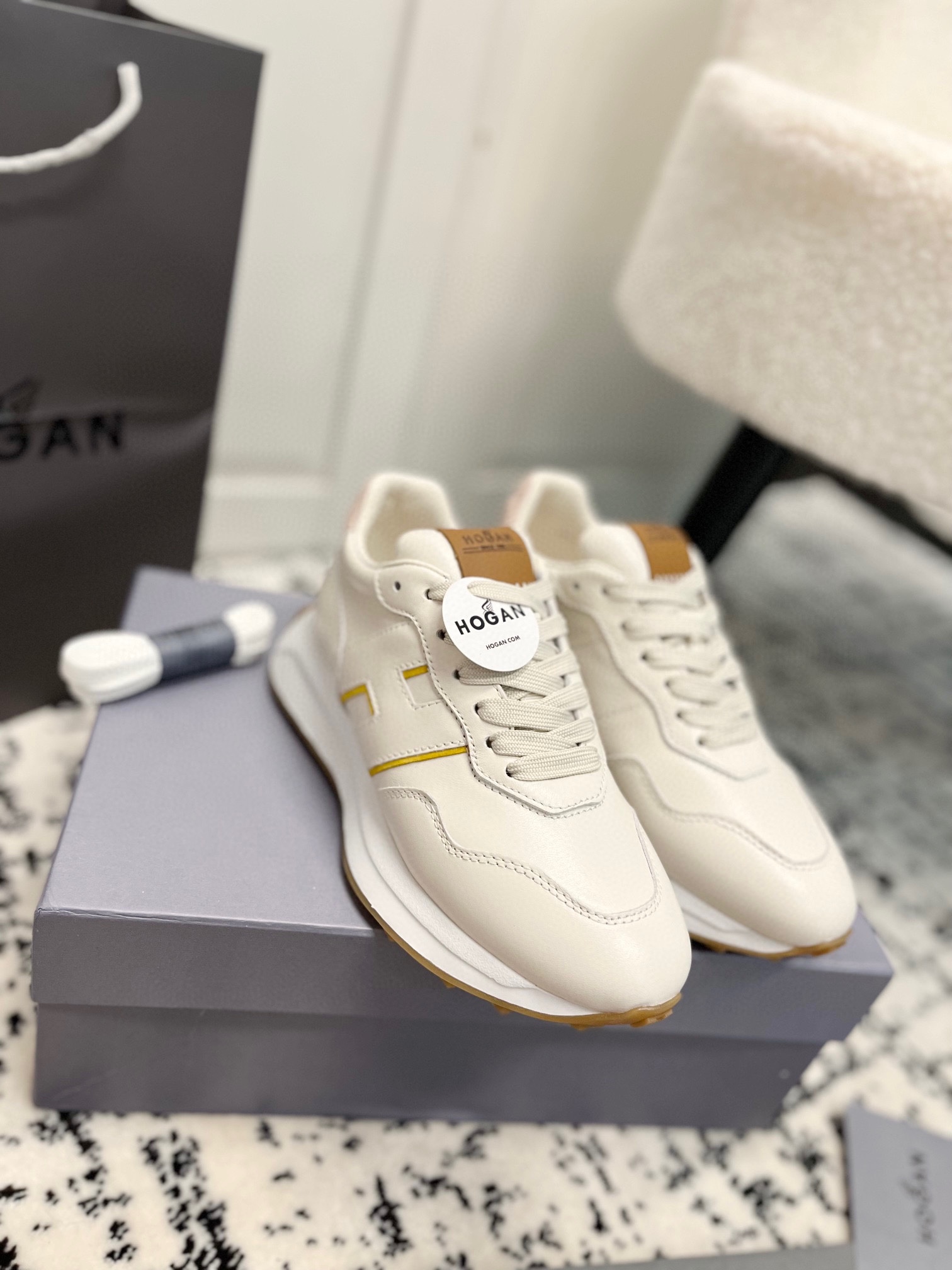 这款鞋子是AAAAA 1:1 质量 (非常棒). 使用了和原版一模一样的材料. 商标部分也保持了和Hogan一样. 图片拍摄是实物鞋子拍摄, 您所收到的实物保证和我们图片一模一样.