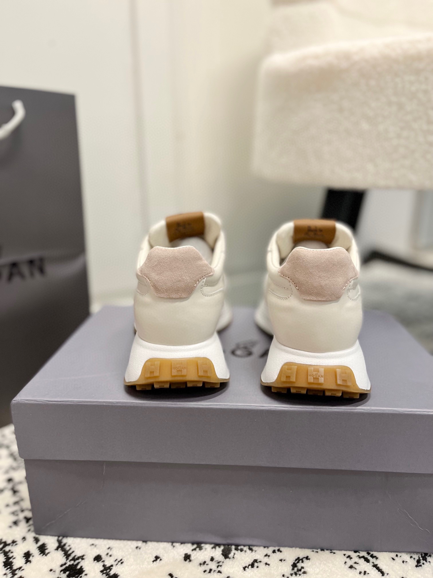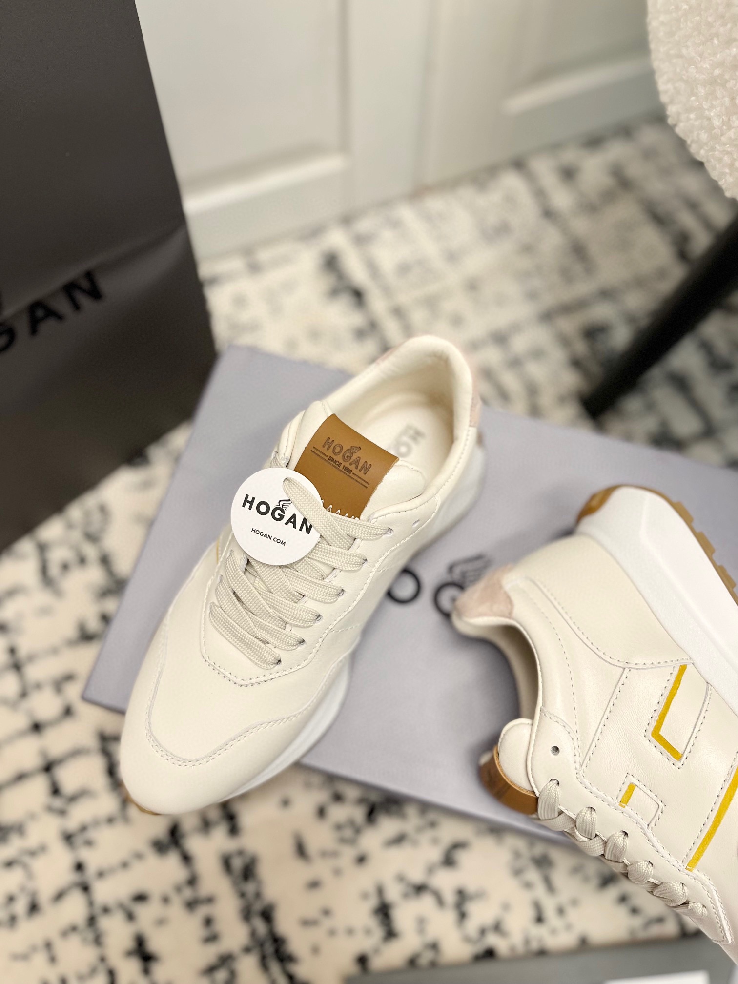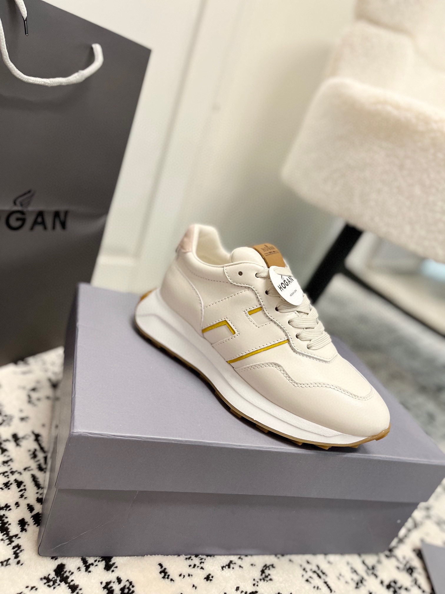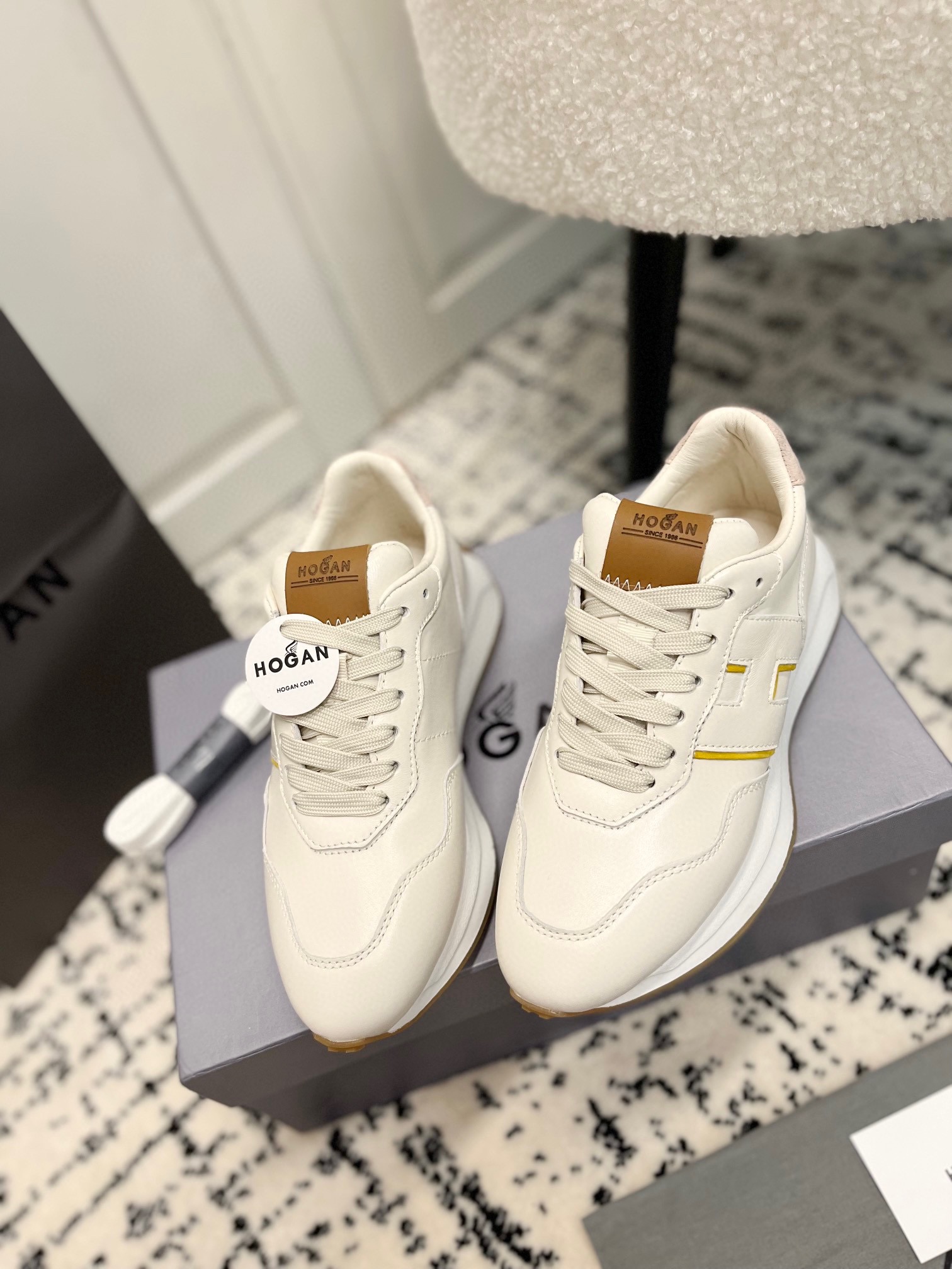 这款鞋子是AAAAA 1:1 质量 (非常棒). 使用了和原版一模一样的材料. 商标部分也保持了和Hogan一样. 图片拍摄是实物鞋子拍摄, 您所收到的实物保证和我们图片一模一样.