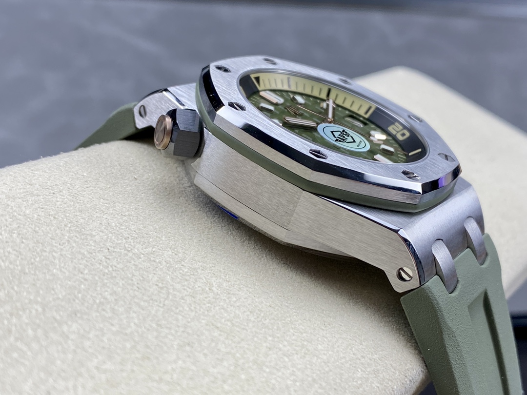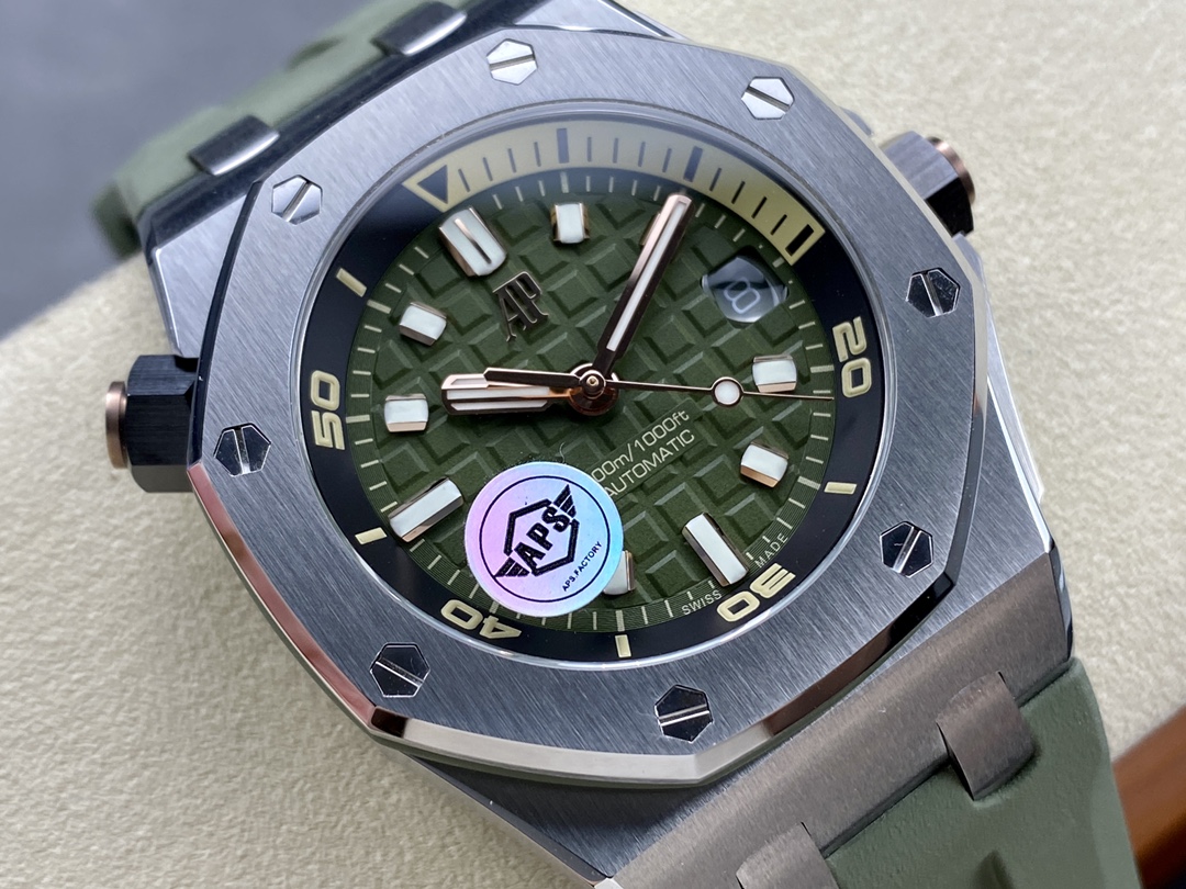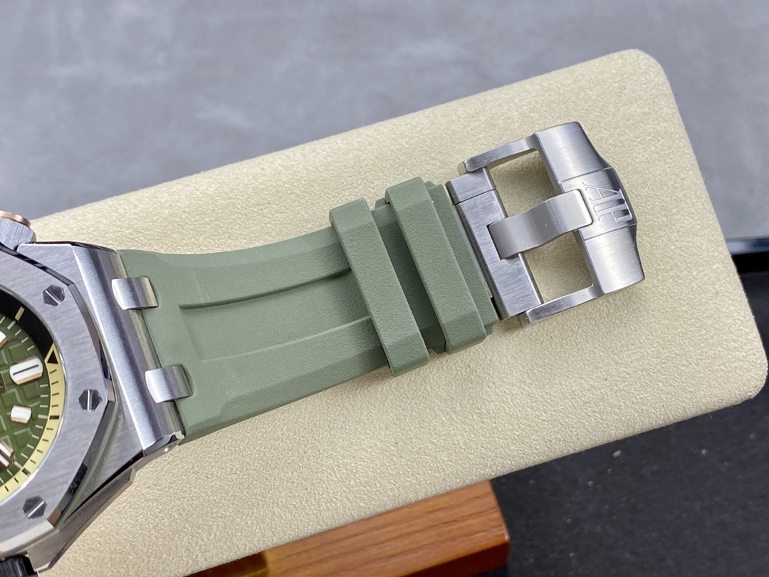 这款手表是AAAAA 1:1 质量 (非常棒). 使用了和原版一模一样的材料. 商标部分也保持了和爱彼/Audemars Piguet一样. 图片拍摄是实物手表拍摄, 您所收到的实物保证和我们图片一模一样.