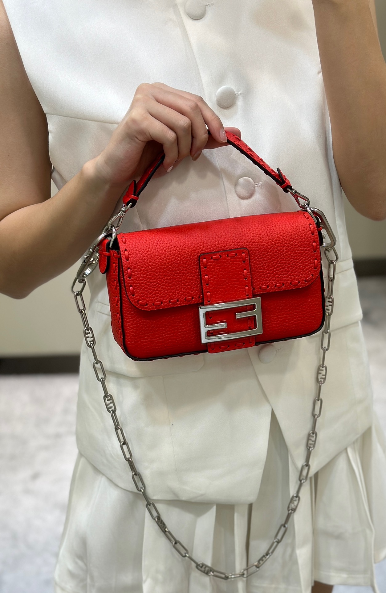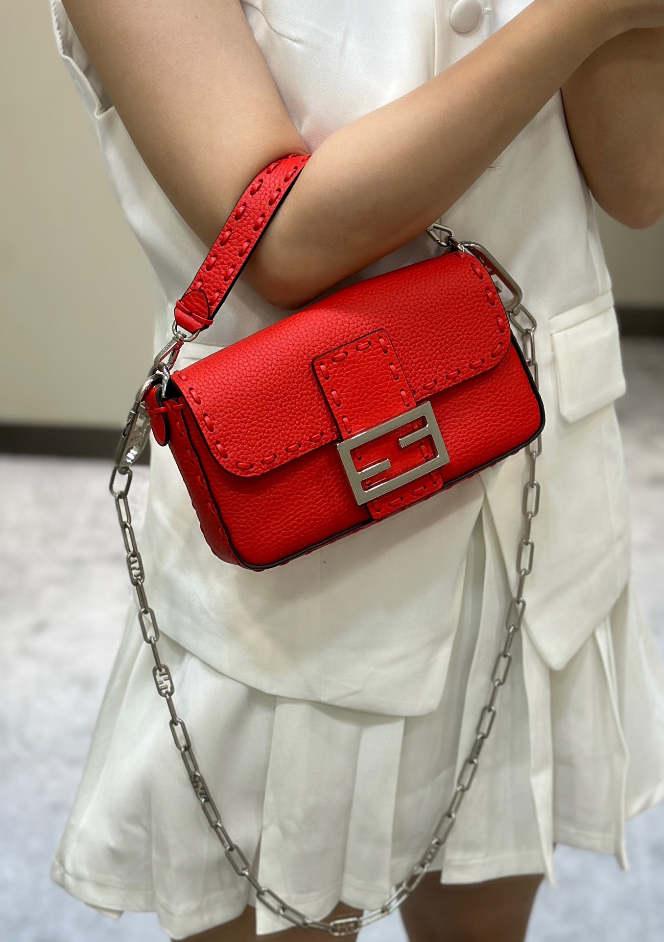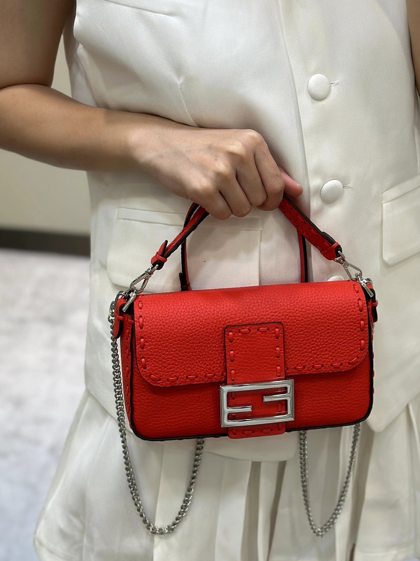 这款包包是AAAAA 1:1 质量 (非常棒). 使用了和原版一模一样的材料. 商标部分也保持了和芬迪/Fendi一样. 图片拍摄是实物包包拍摄, 您所收到的实物保证和我们图片一模一样.