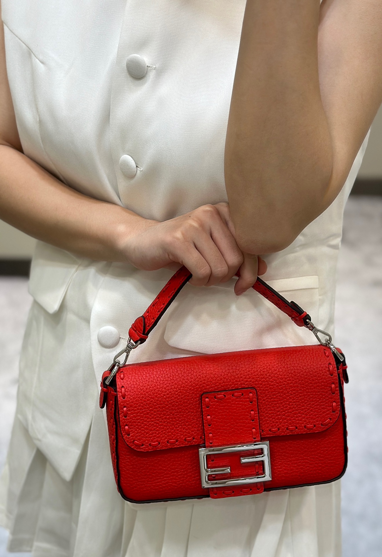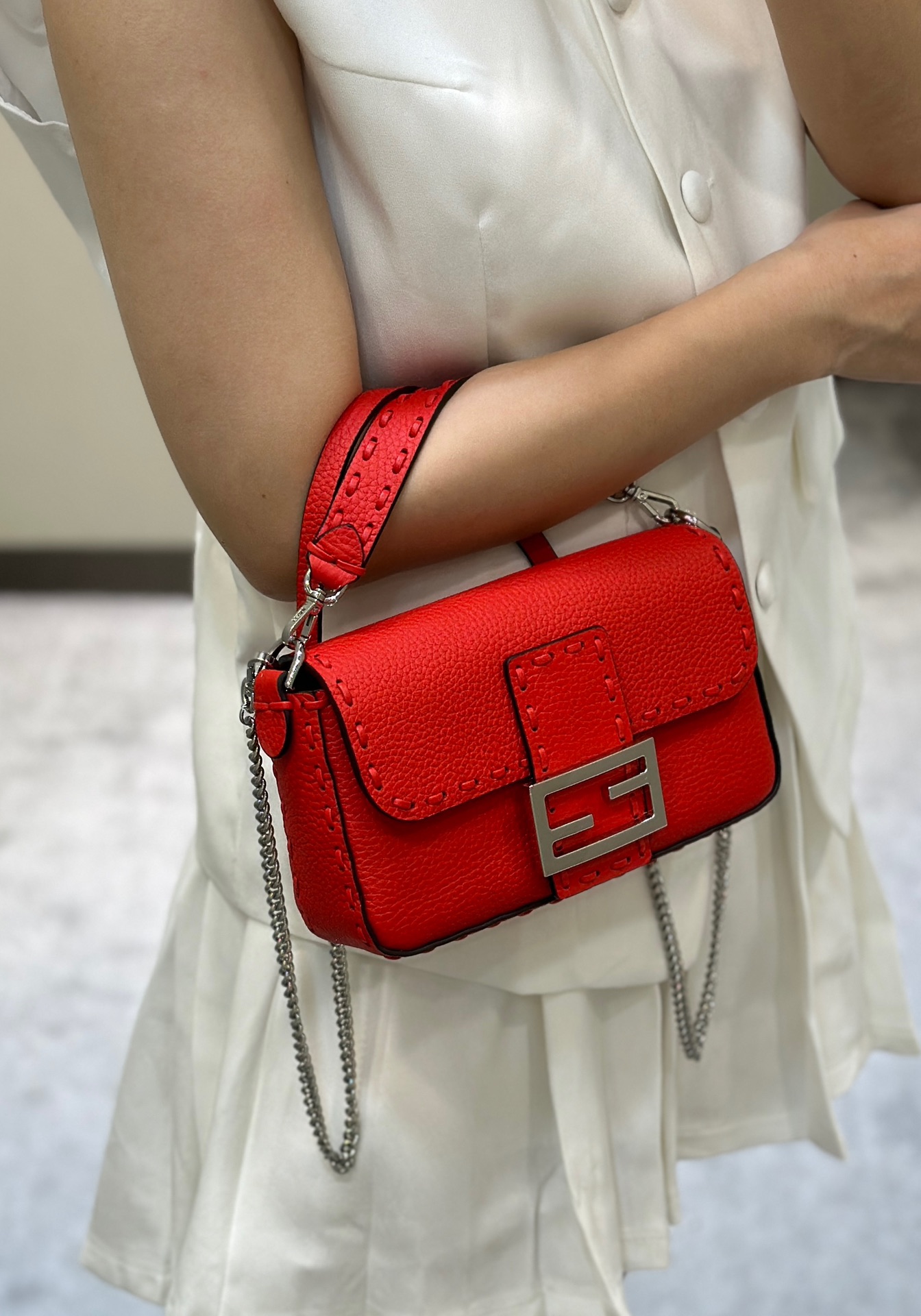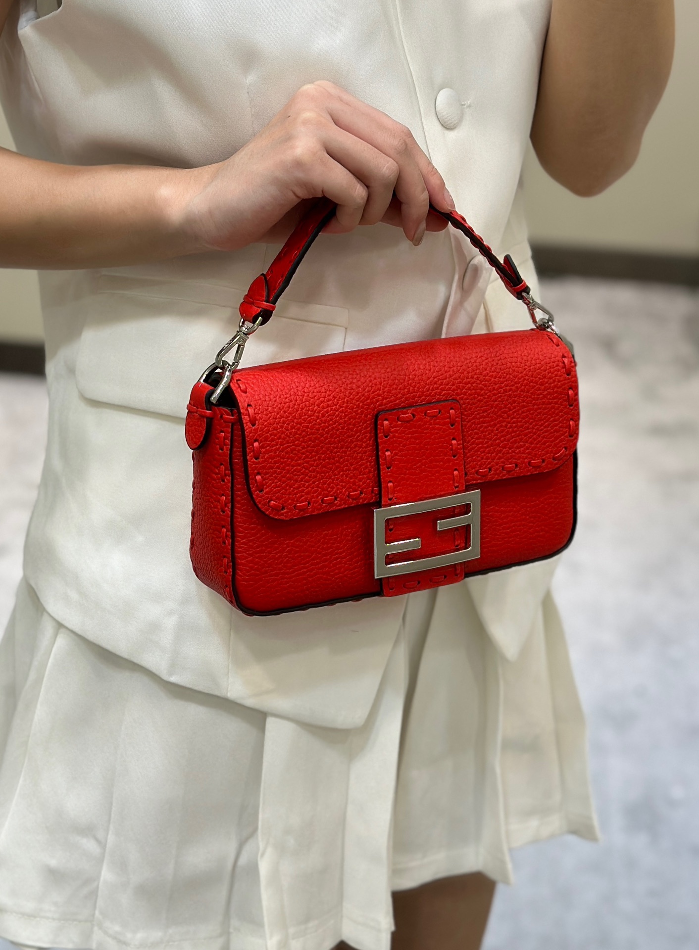 这款包包是AAAAA 1:1 质量 (非常棒). 使用了和原版一模一样的材料. 商标部分也保持了和芬迪/Fendi一样. 图片拍摄是实物包包拍摄, 您所收到的实物保证和我们图片一模一样.