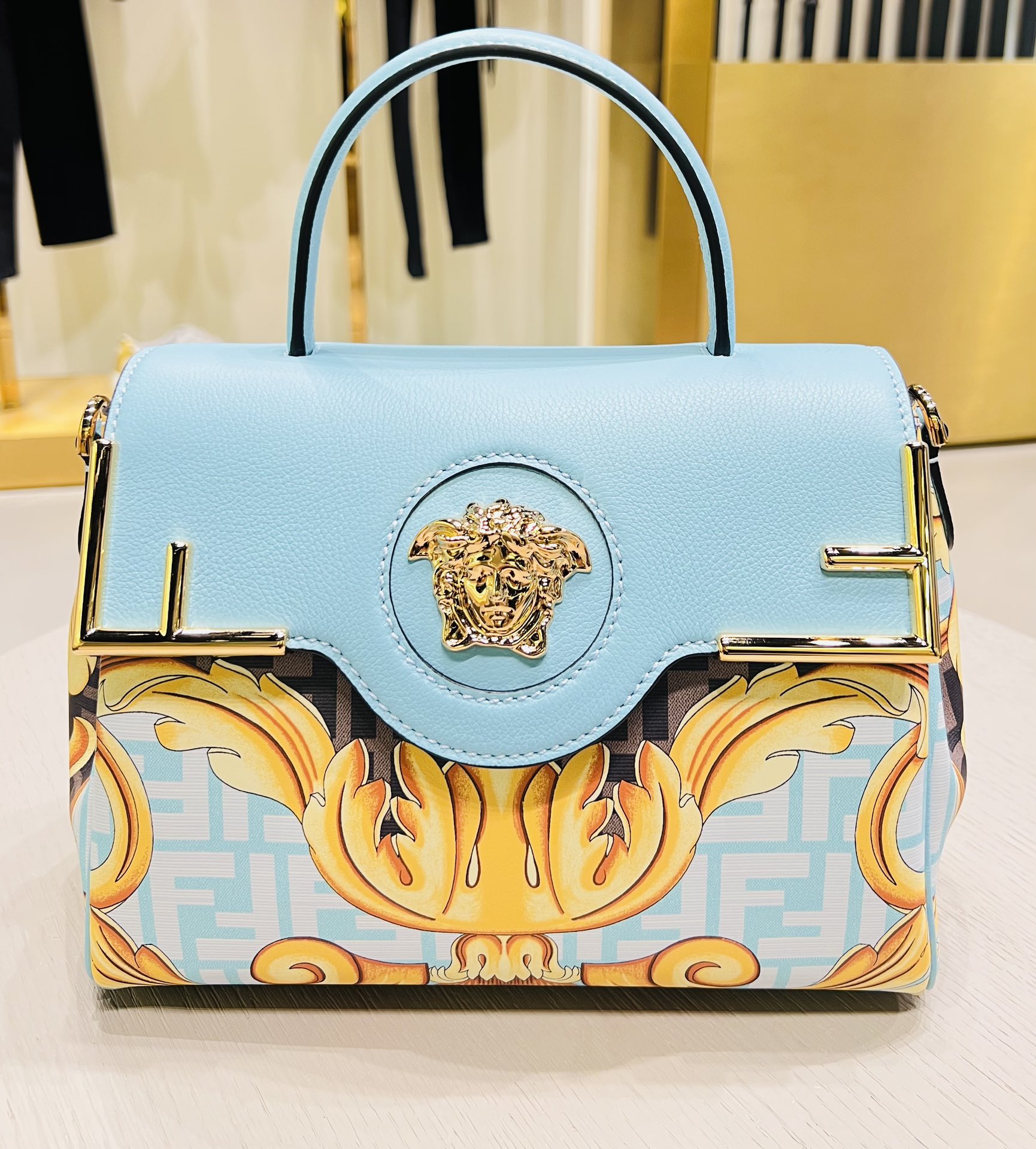 这款包包是AAAAA 1:1 质量 (非常棒). 使用了和原版一模一样的材料. 商标部分也保持了和范思哲/Versace一样. 图片拍摄是实物包包拍摄, 您所收到的实物保证和我们图片一模一样.