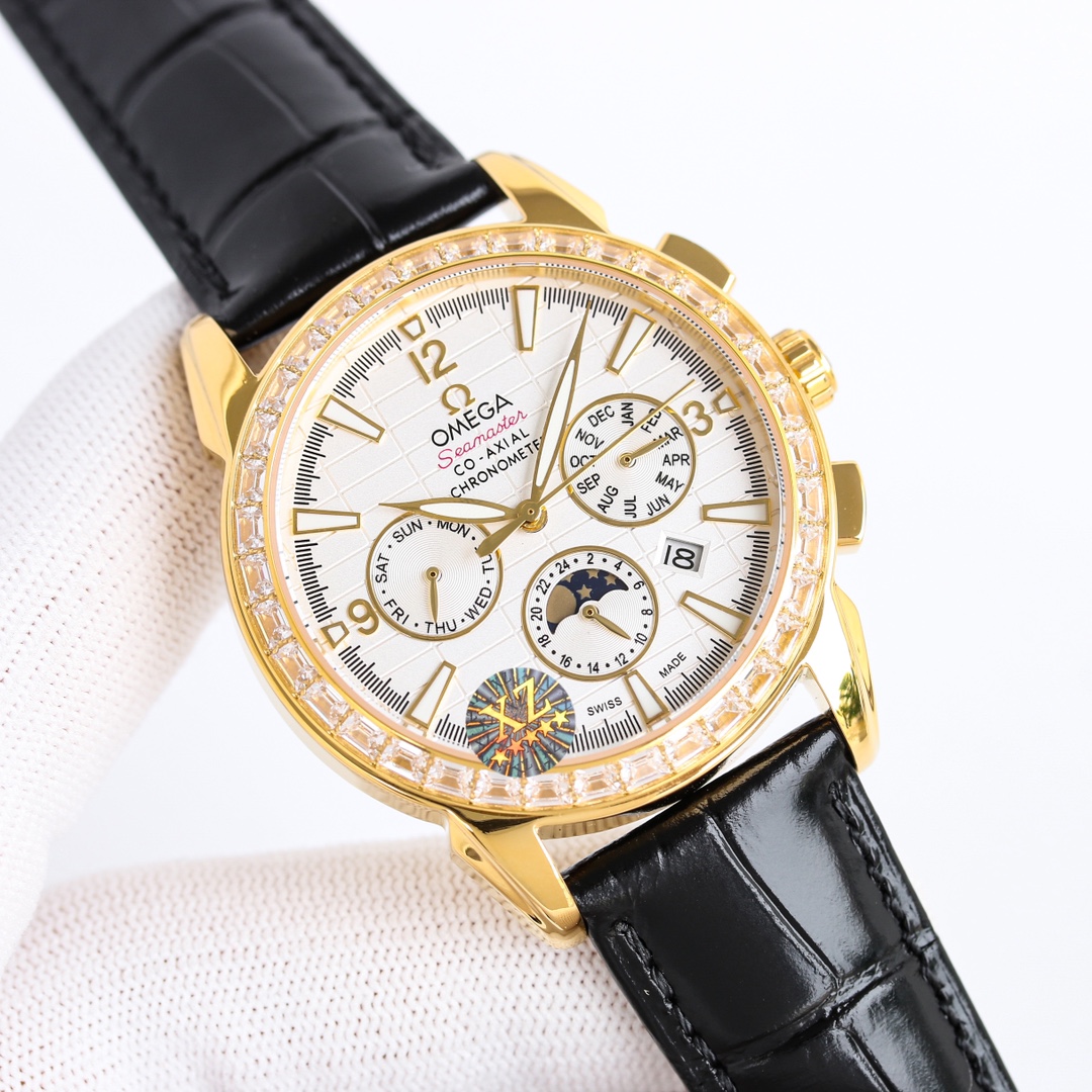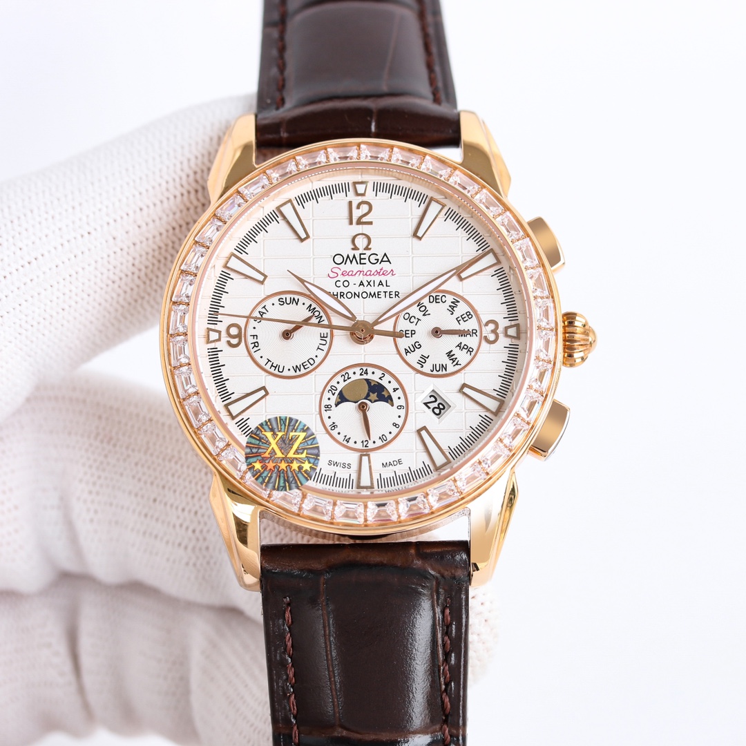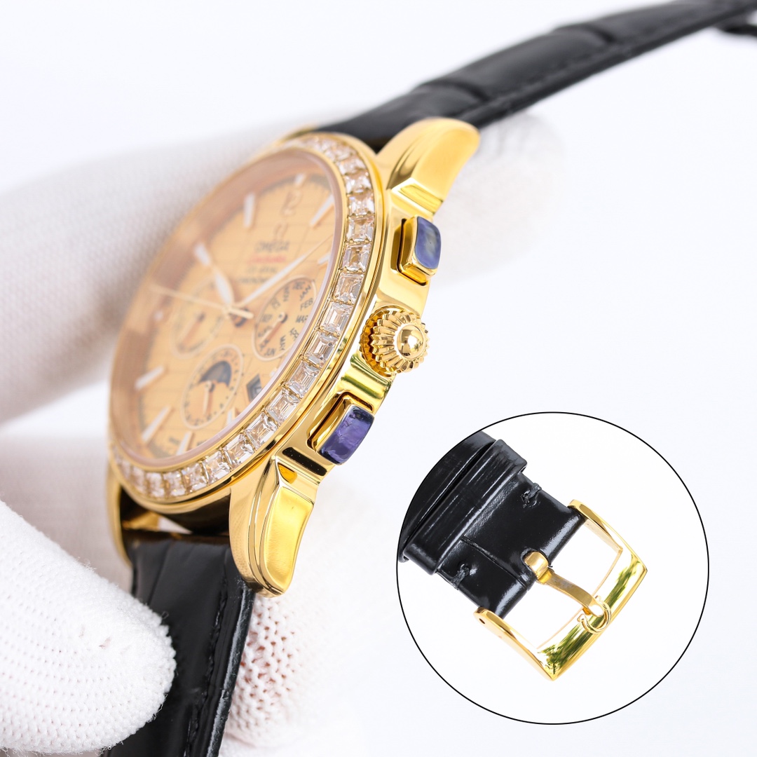 这款手表是AAAAA 1:1 质量 (非常棒). 使用了和原版一模一样的材料. 商标部分也保持了和欧米茄/Omega一样. 图片拍摄是实物手表拍摄, 您所收到的实物保证和我们图片一模一样.