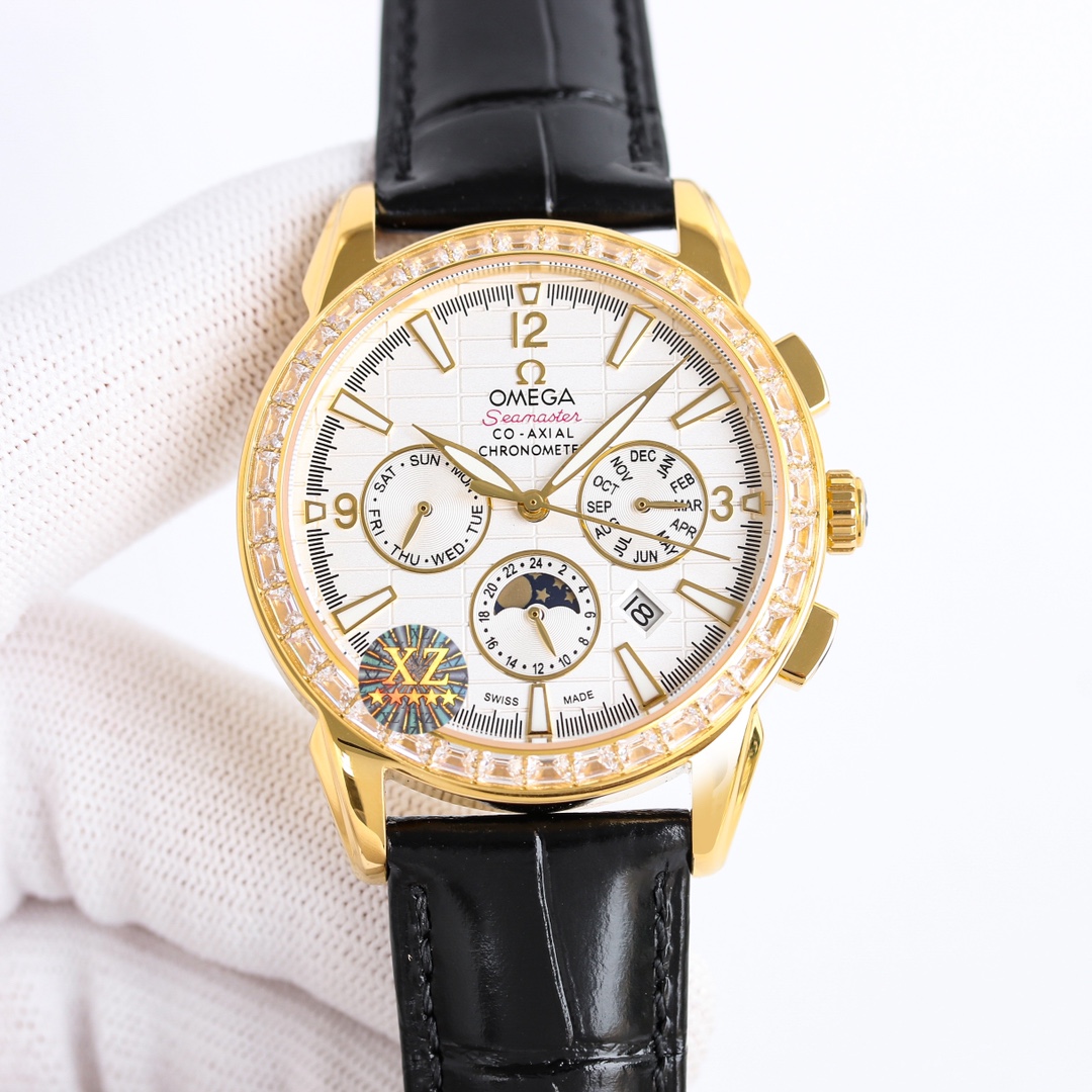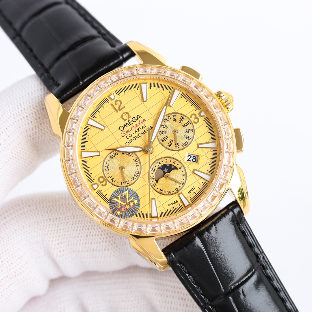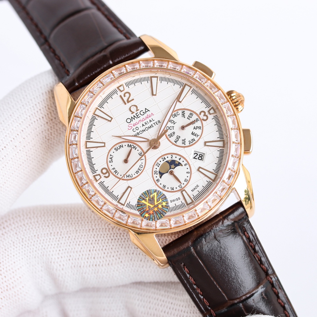 这款手表是AAAAA 1:1 质量 (非常棒). 使用了和原版一模一样的材料. 商标部分也保持了和欧米茄/Omega一样. 图片拍摄是实物手表拍摄, 您所收到的实物保证和我们图片一模一样.