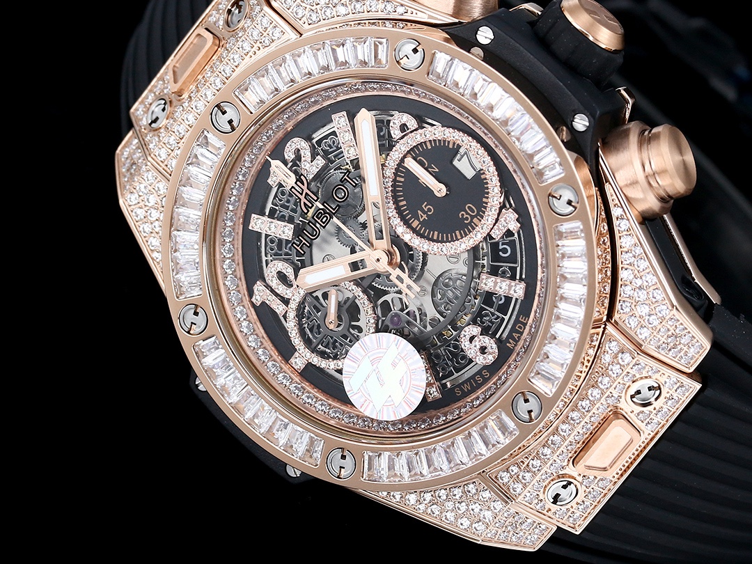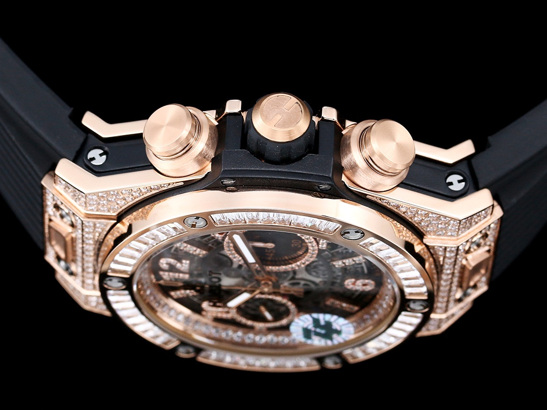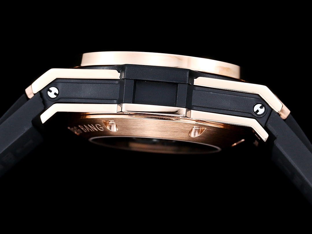 这款手表是AAAAA 1:1 质量 (非常棒). 使用了和原版一模一样的材料. 商标部分也保持了和Hublot一样. 图片拍摄是实物手表拍摄, 您所收到的实物保证和我们图片一模一样.