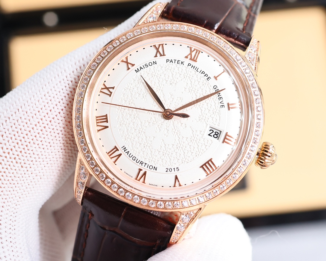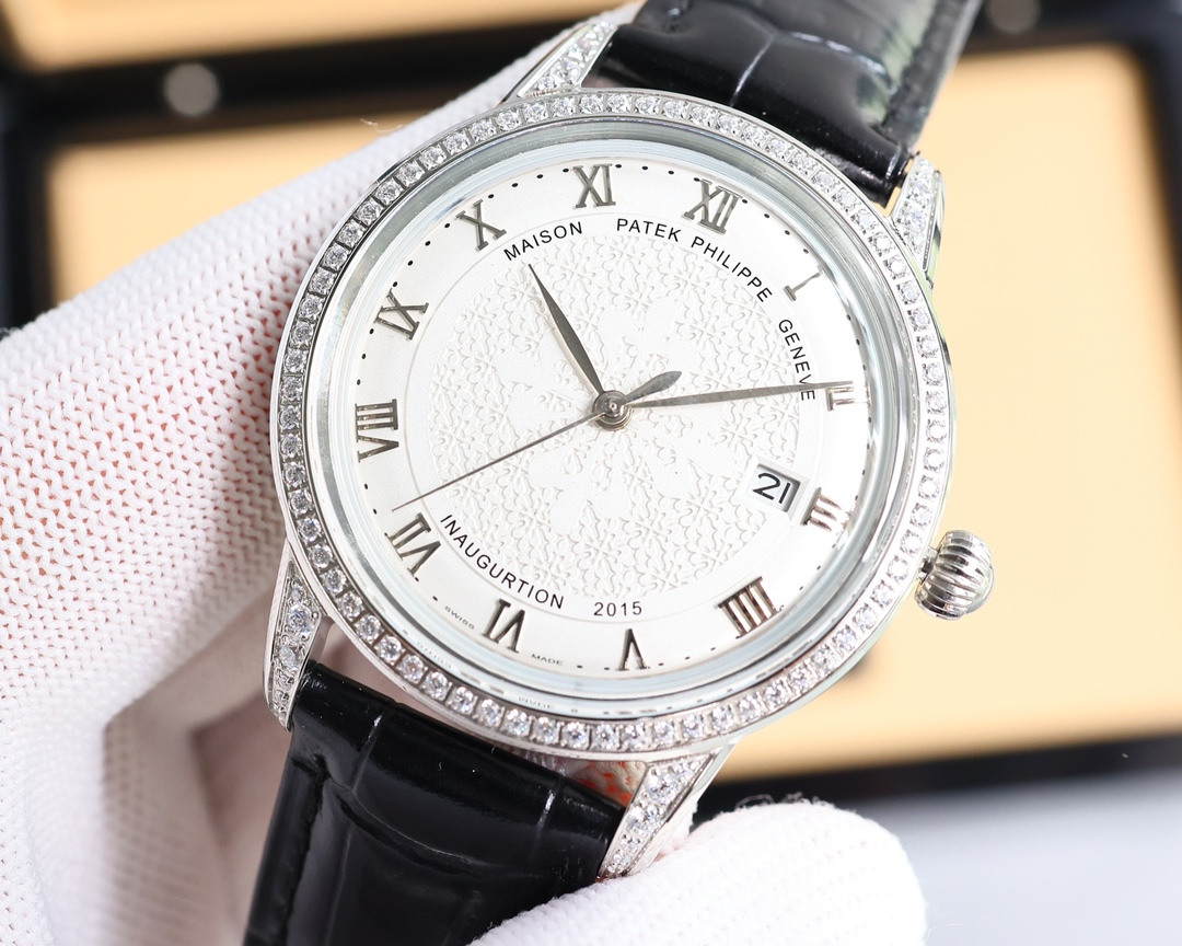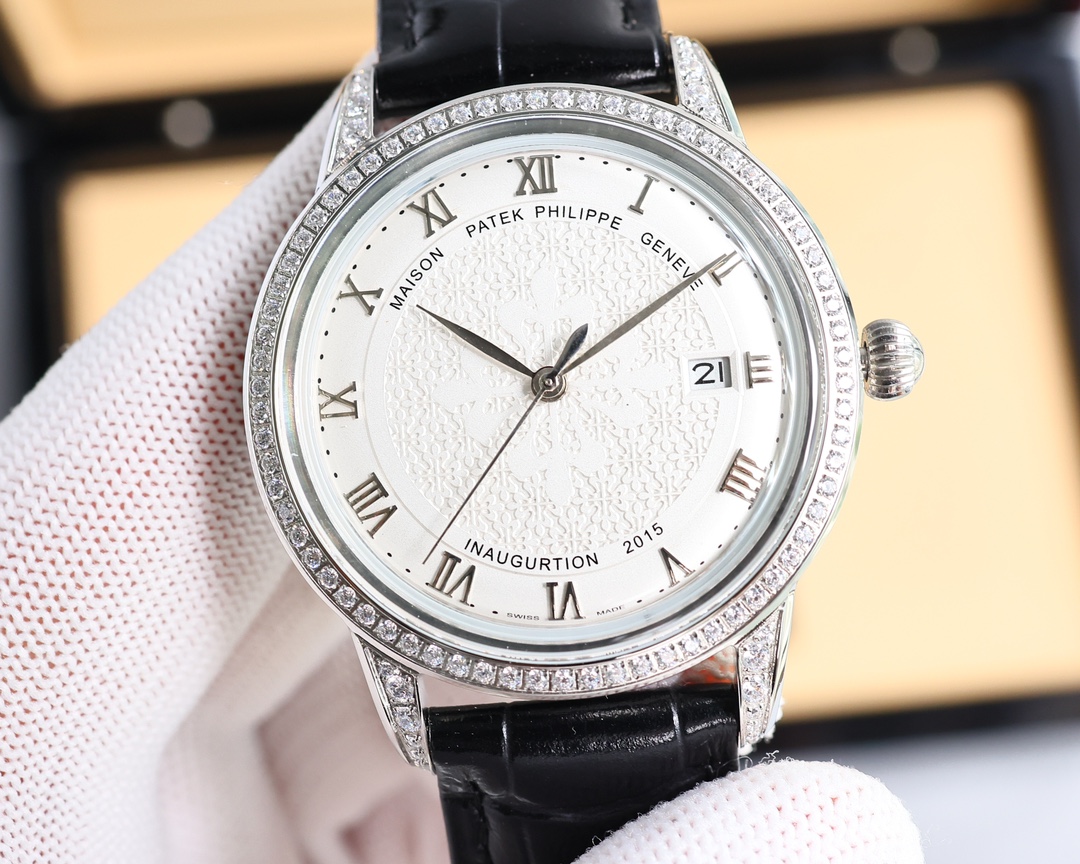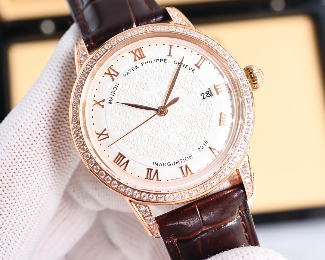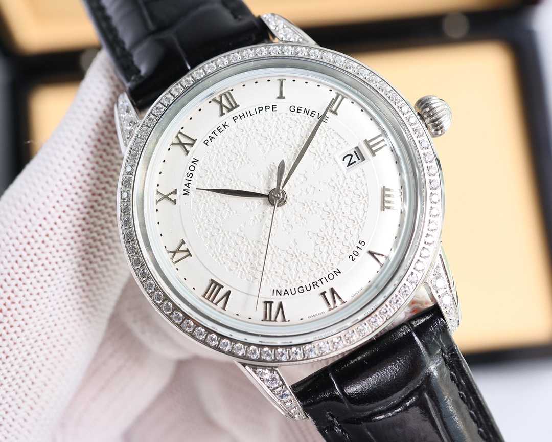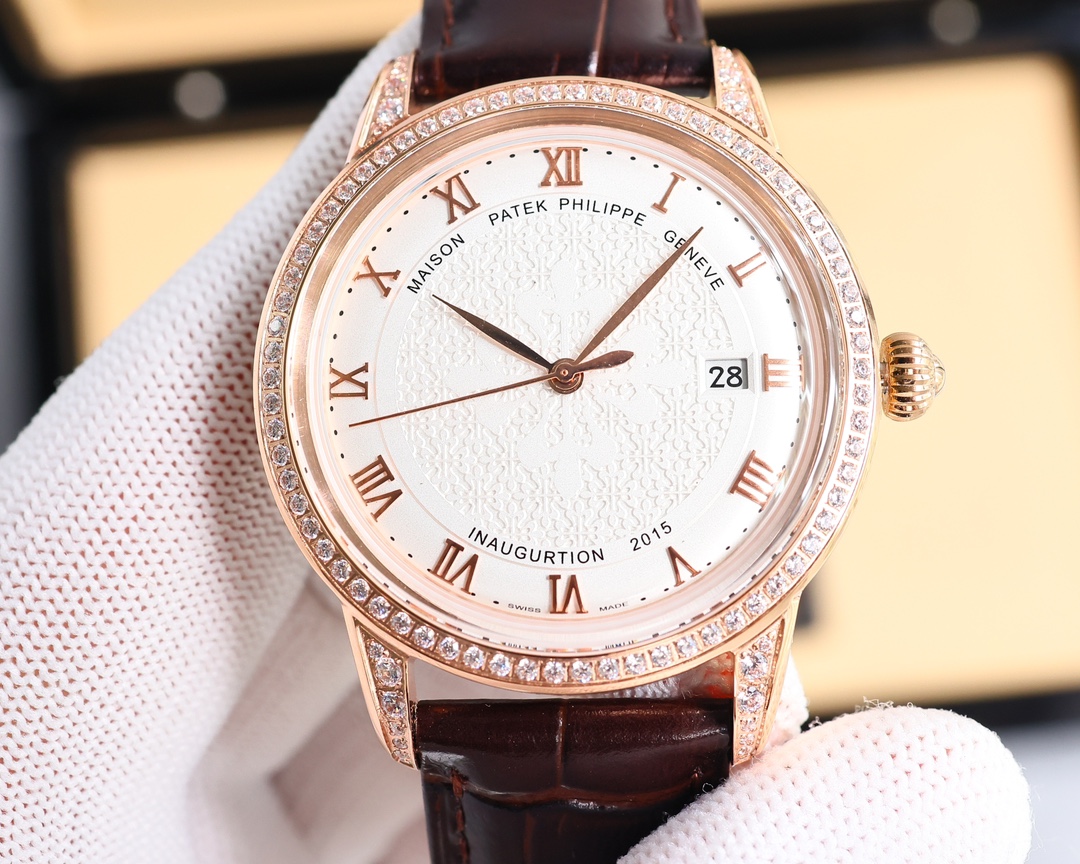 这款手表是AAAAA 1:1 质量 (非常棒). 使用了和原版一模一样的材料. 商标部分也保持了和百达翡丽/Patek Philippe一样. 图片拍摄是实物手表拍摄, 您所收到的实物保证和我们图片一模一样.