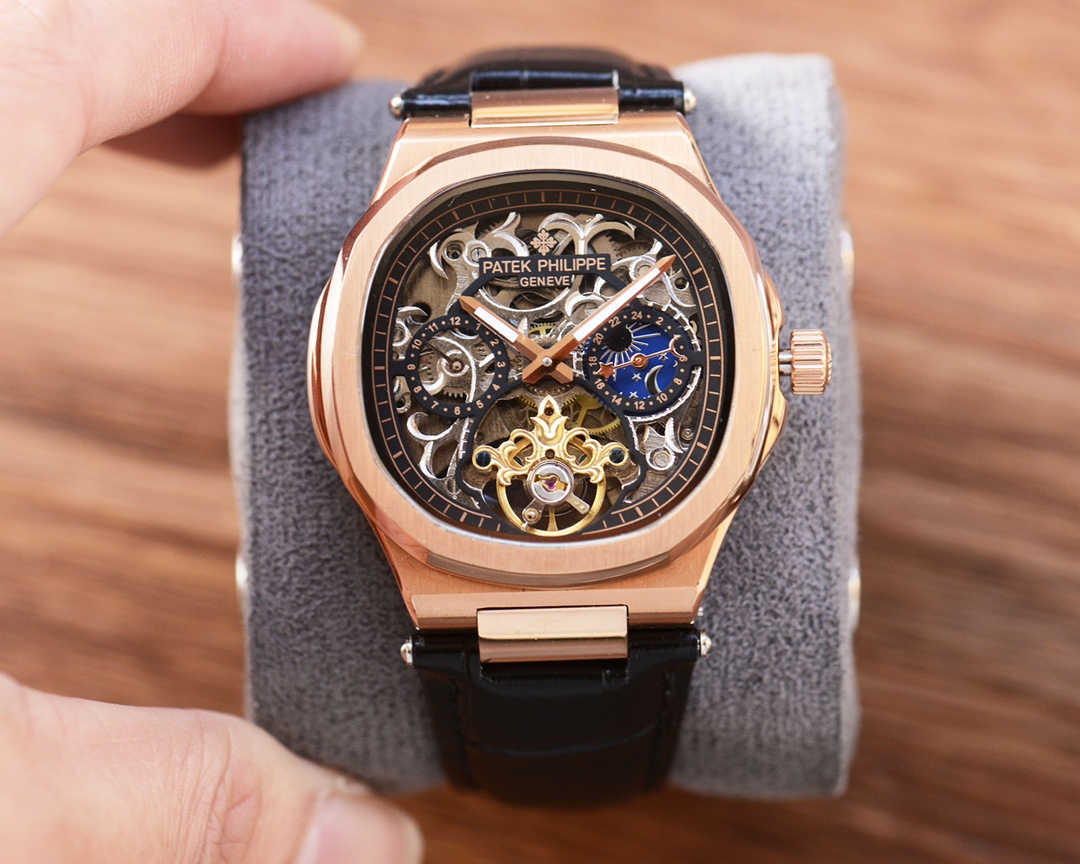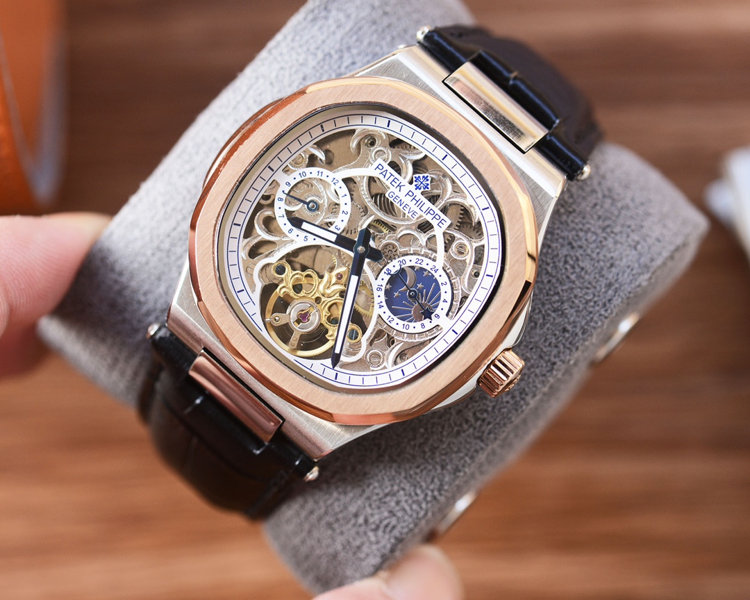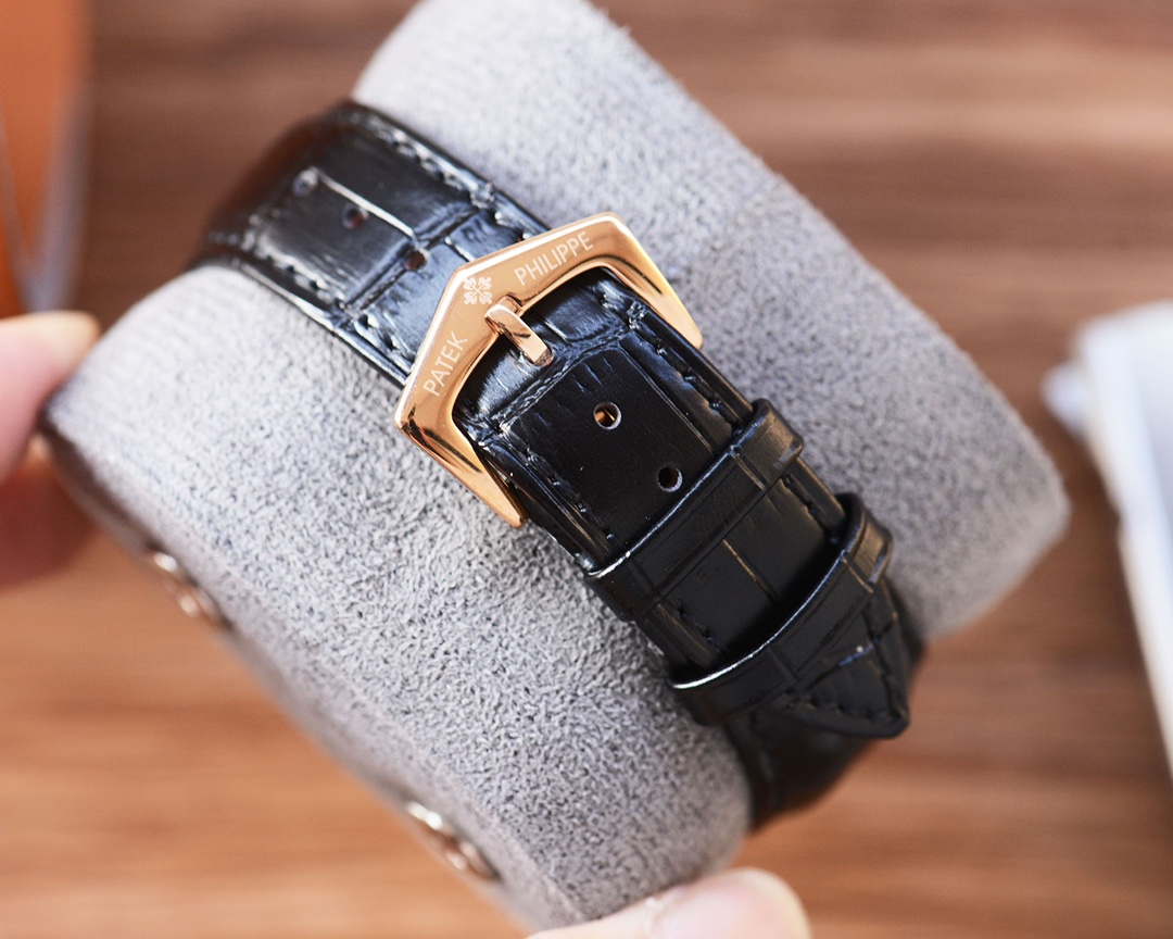 这款手表是AAAAA 1:1 质量 (非常棒). 使用了和原版一模一样的材料. 商标部分也保持了和百达翡丽/Patek Philippe一样. 图片拍摄是实物手表拍摄, 您所收到的实物保证和我们图片一模一样.