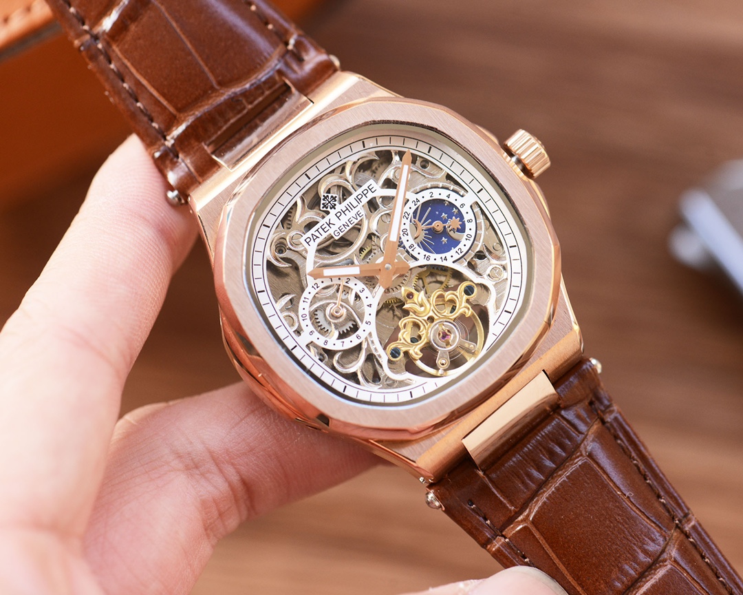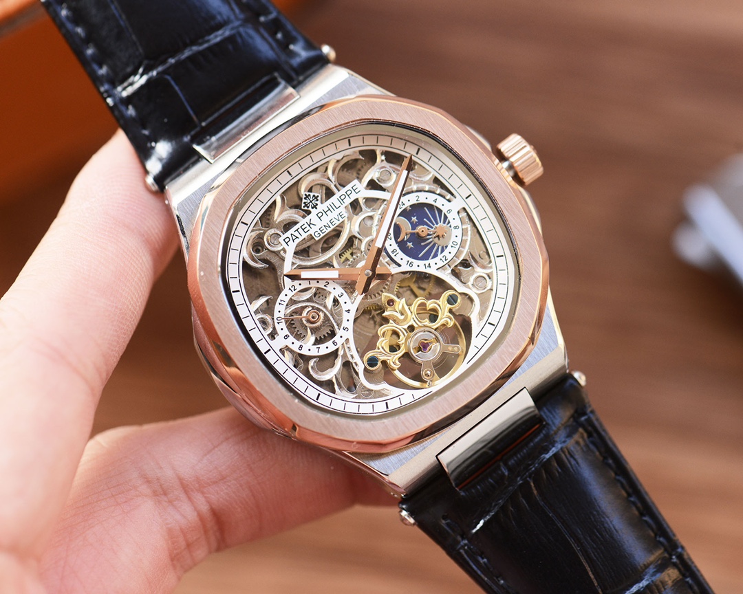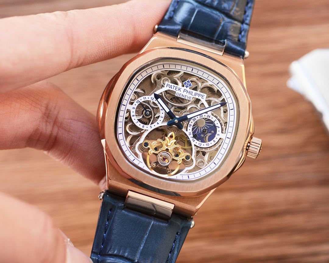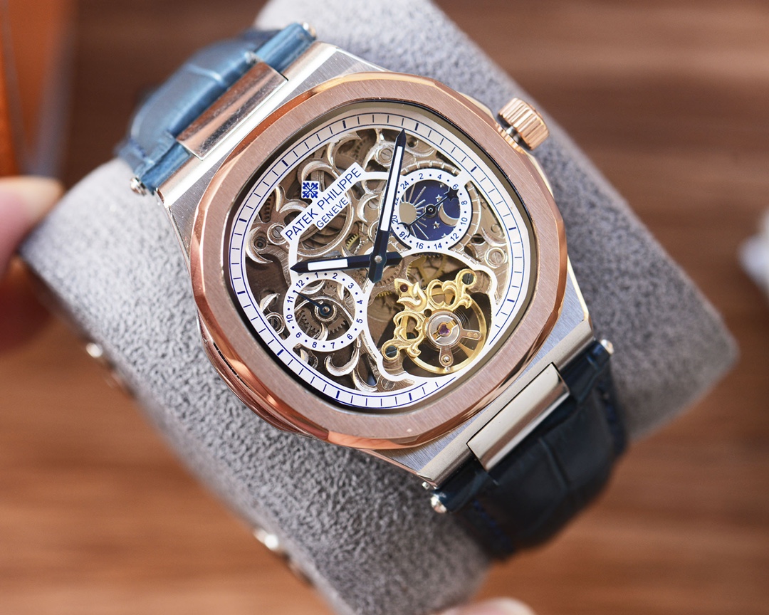这款手表是AAAAA 1:1 质量 (非常棒). 使用了和原版一模一样的材料. 商标部分也保持了和百达翡丽/Patek Philippe一样. 图片拍摄是实物手表拍摄, 您所收到的实物保证和我们图片一模一样.